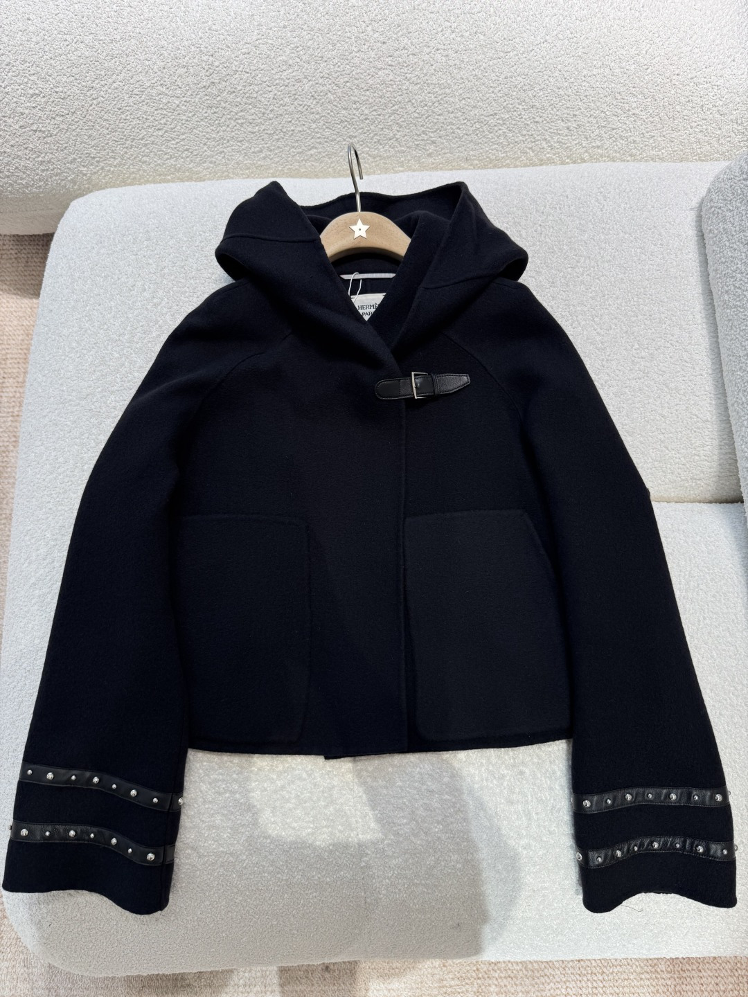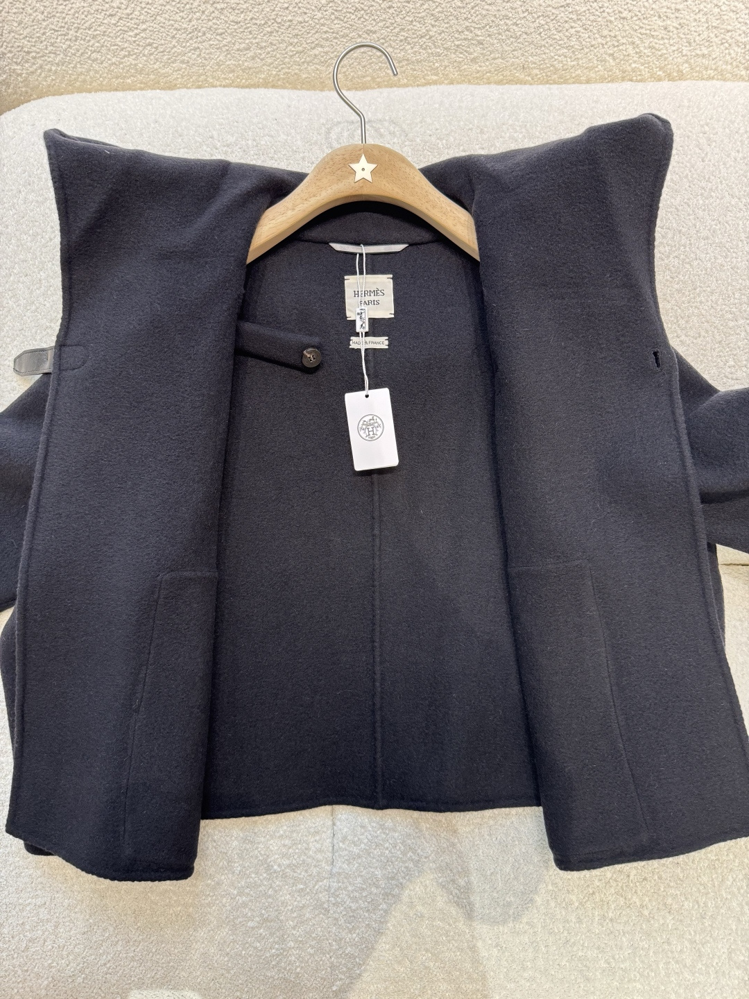 High-quality cashmere blend wool coat details
