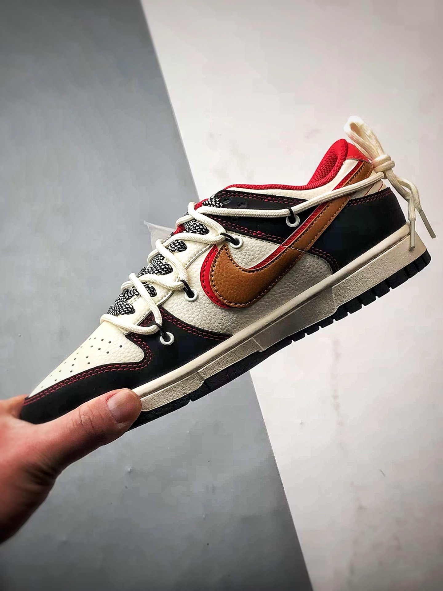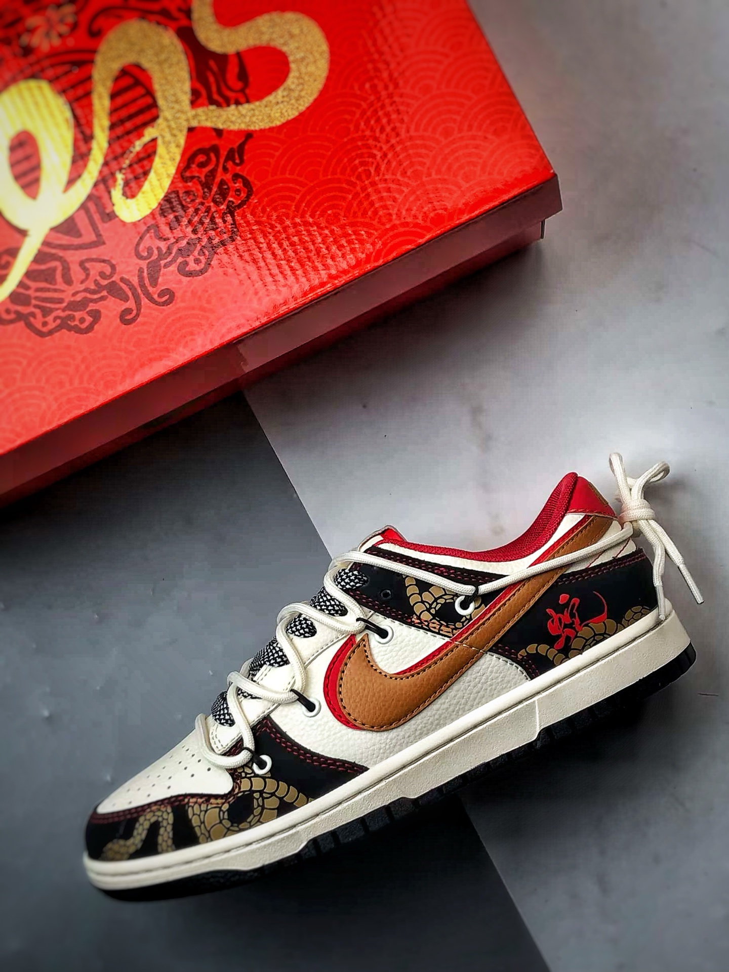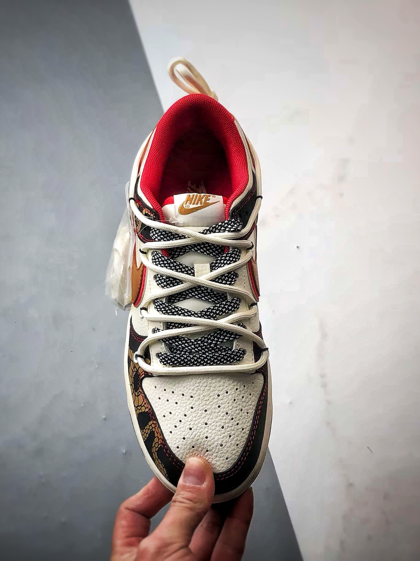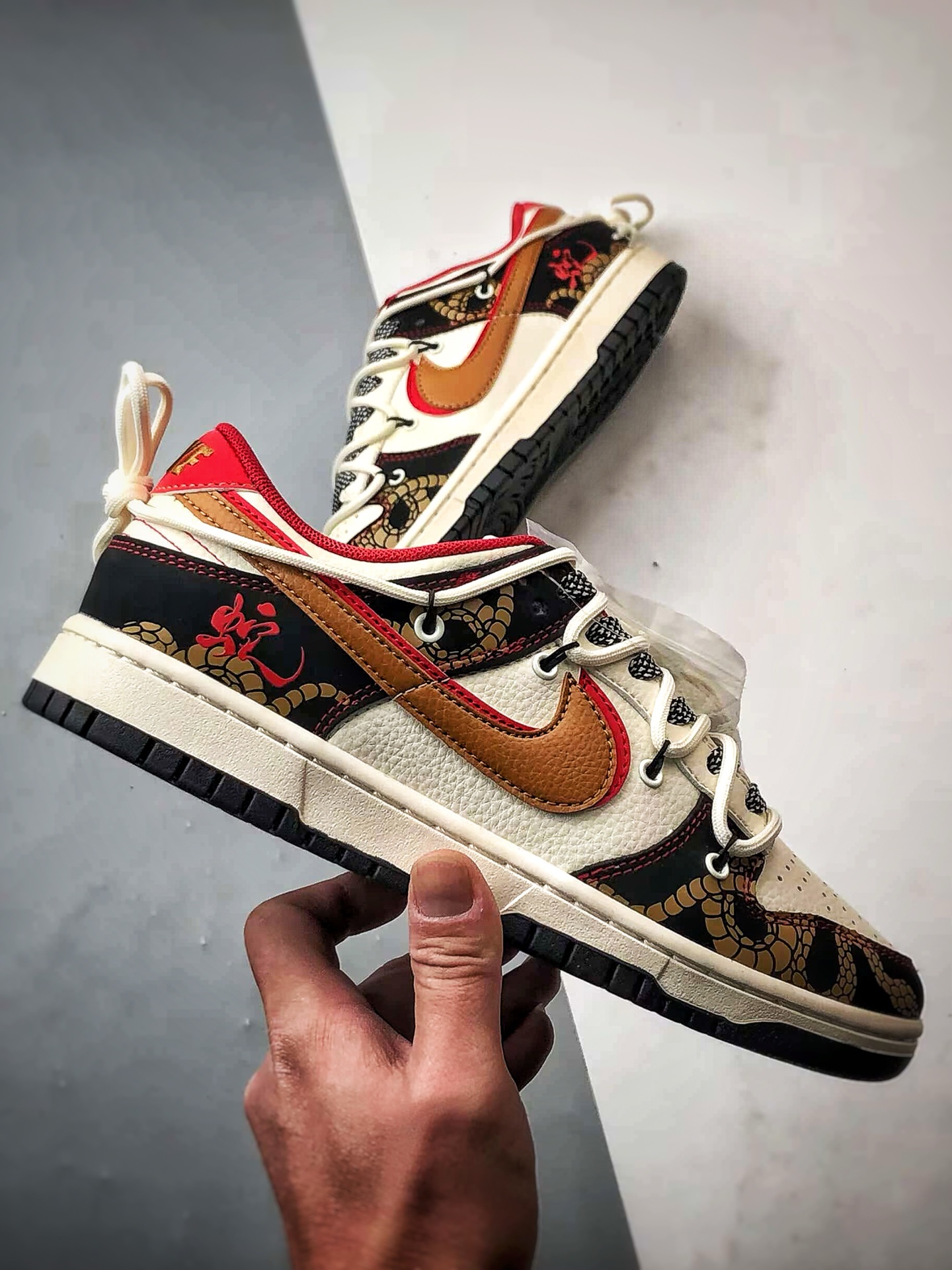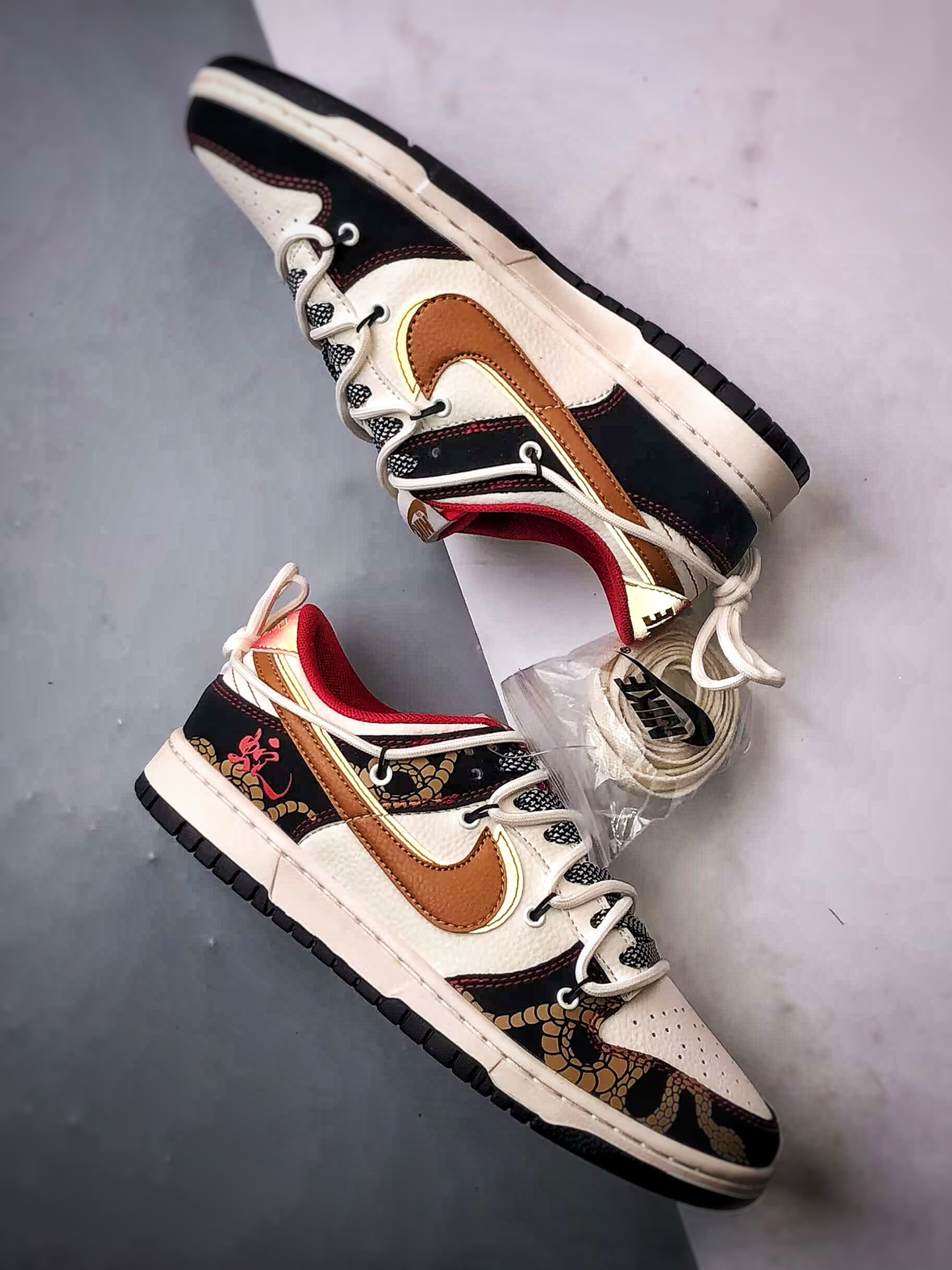 Year of the Snake Brown Red Overlapping Hook Deconstruction Strap Low-Top Casual Sports Sneakers