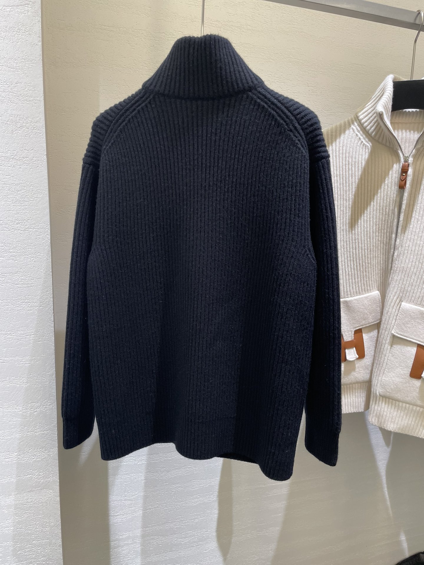 Ralph Lauren classic lapel zip jacket. Unisex. Colors: navy, khaki. Sizes: S, M, L, XL. Measurements provided.