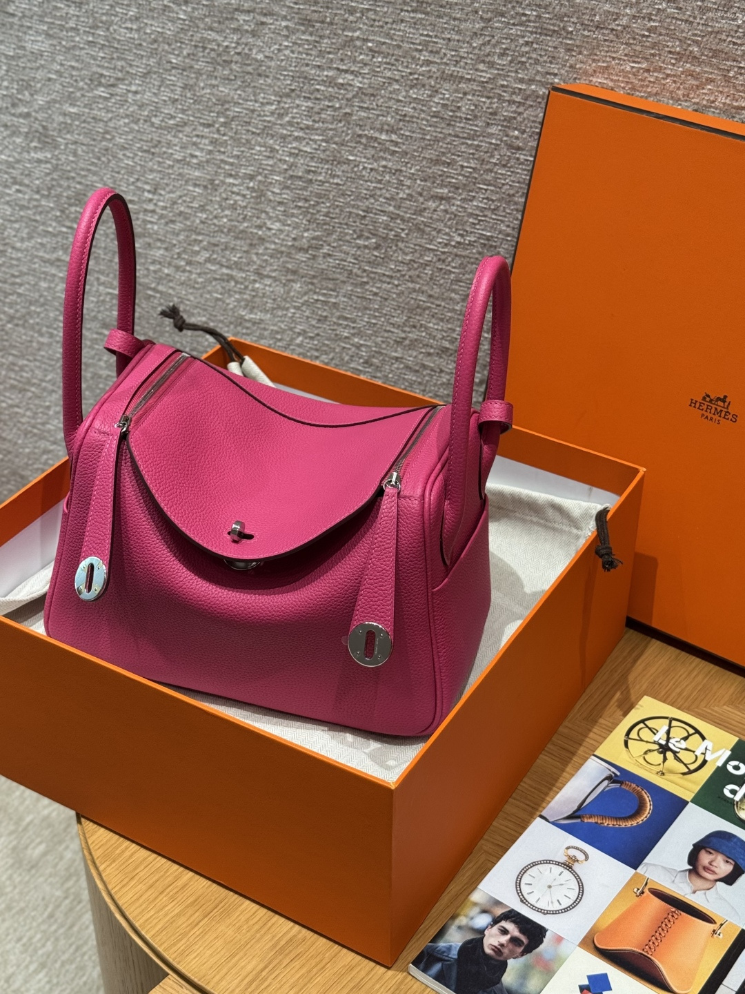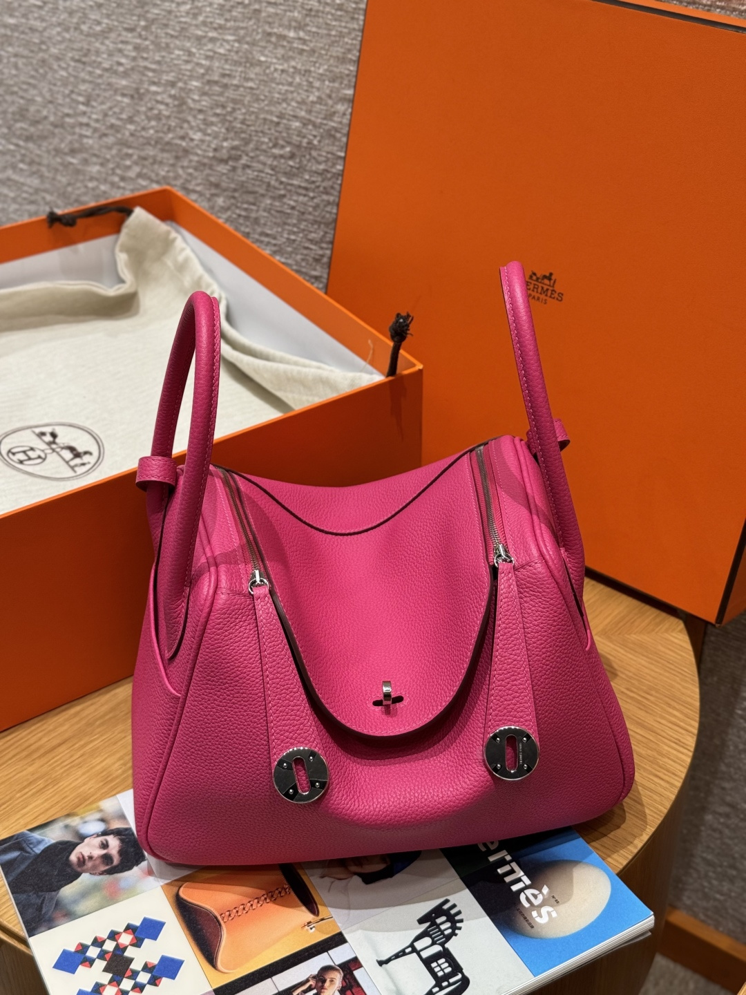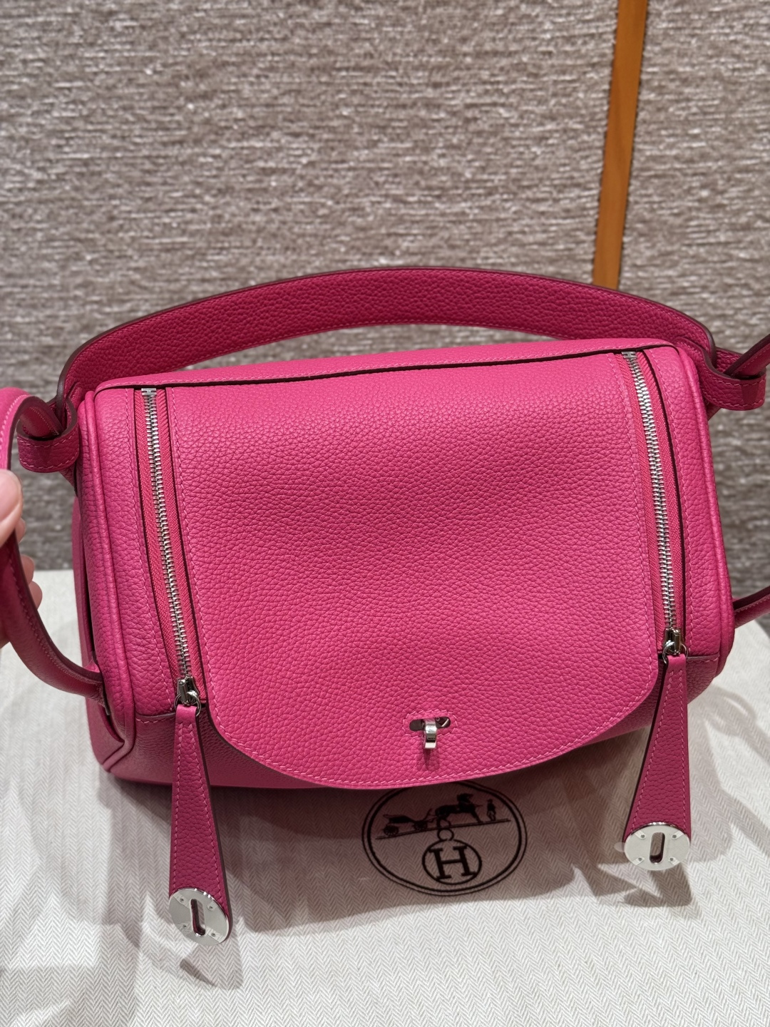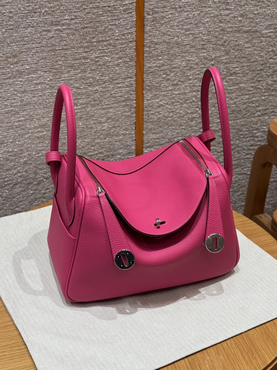 Lindy 26, peach pink, imported cowhide from France, silver buckle, high-end fully handcrafted exclusive customization.