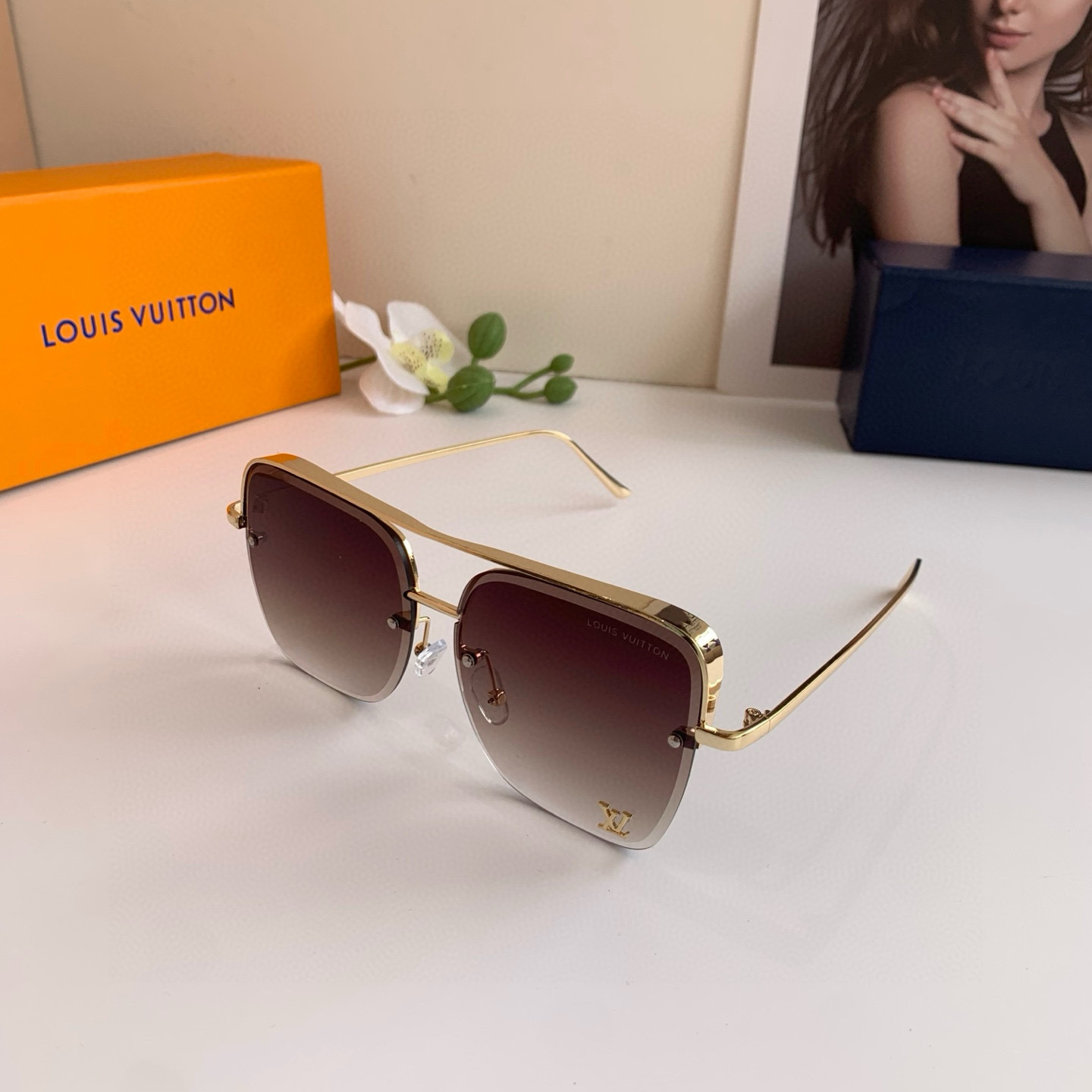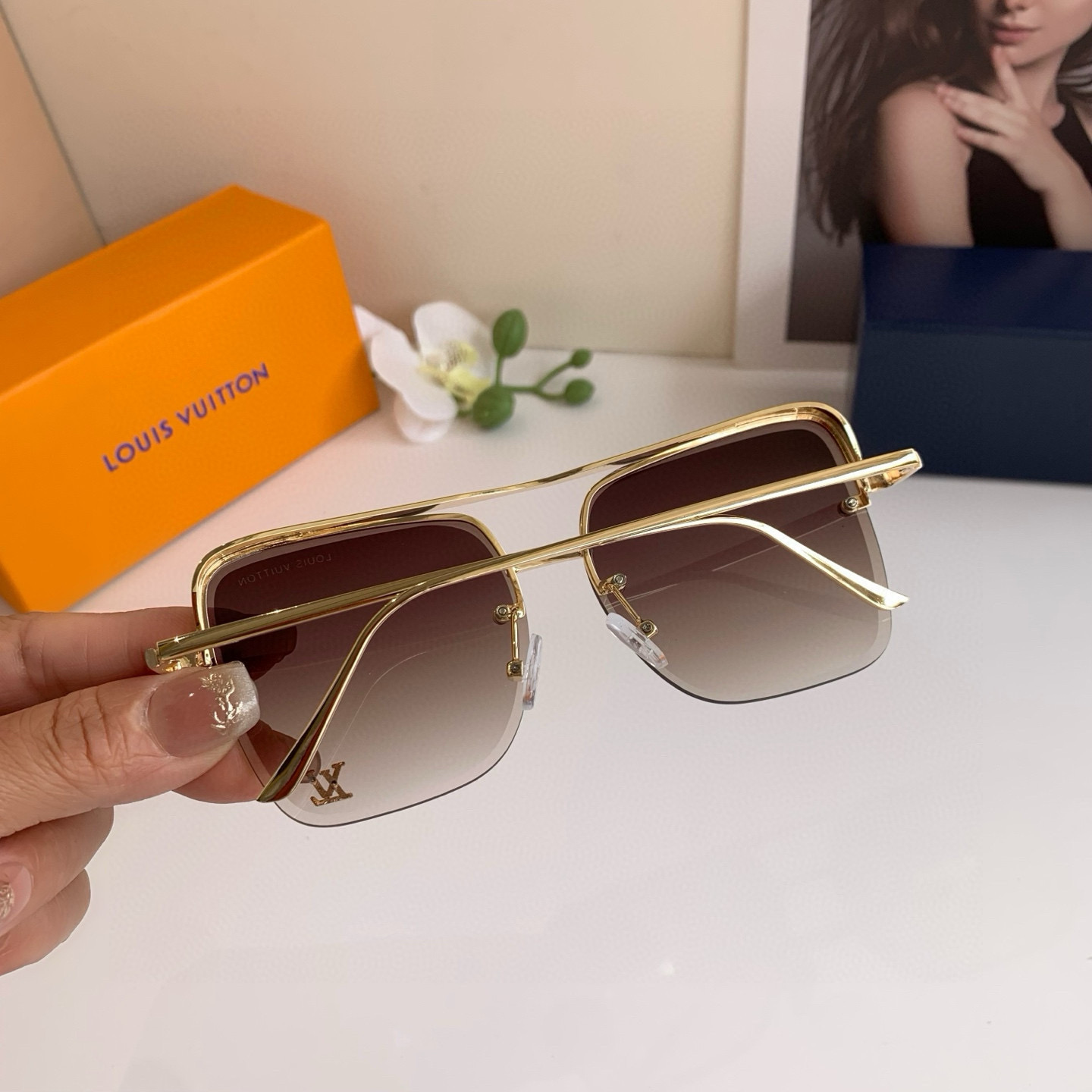 LV Louis Vuitton Classic Square Frame Sunglasses, Super Cool and Stylish for the Street, Good-Looking on the Face, Very Elegant and Slimming, Unisex!