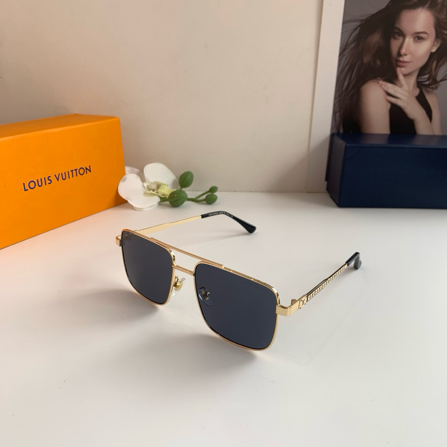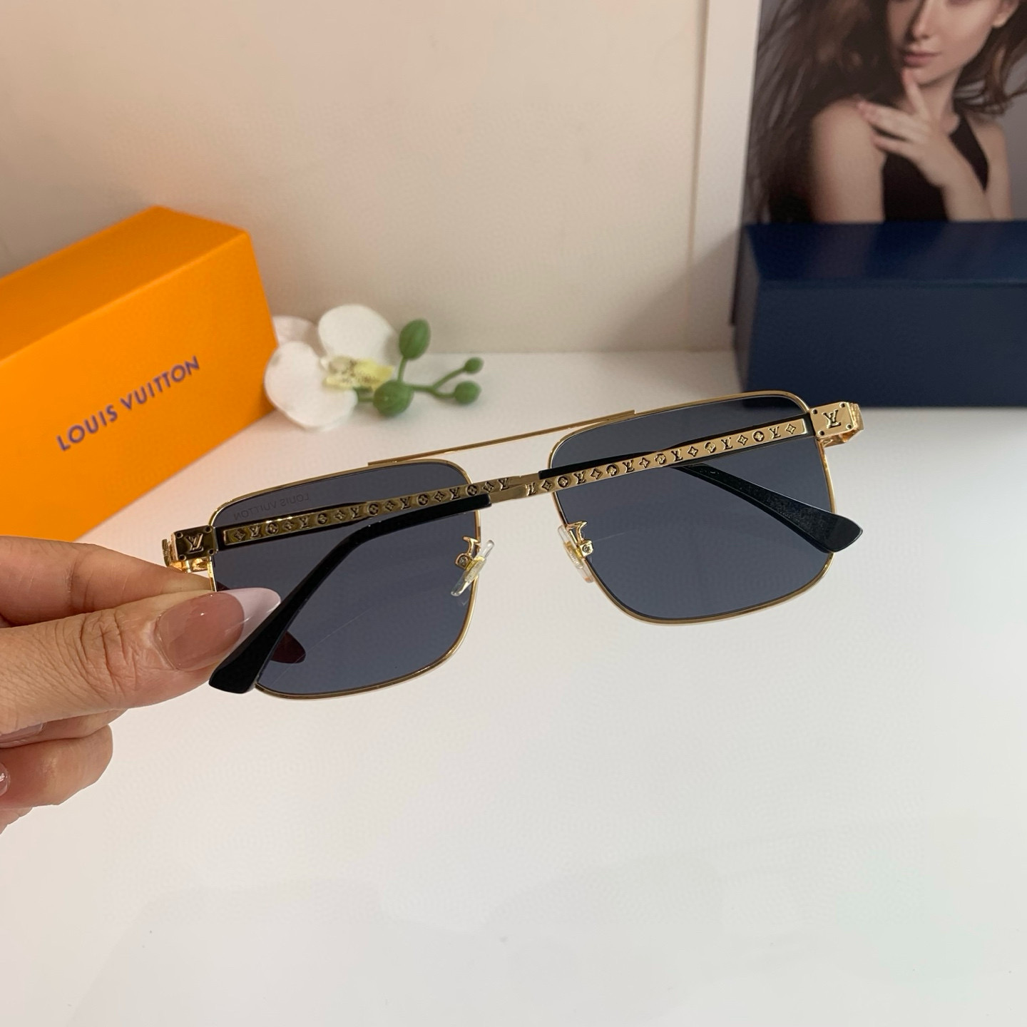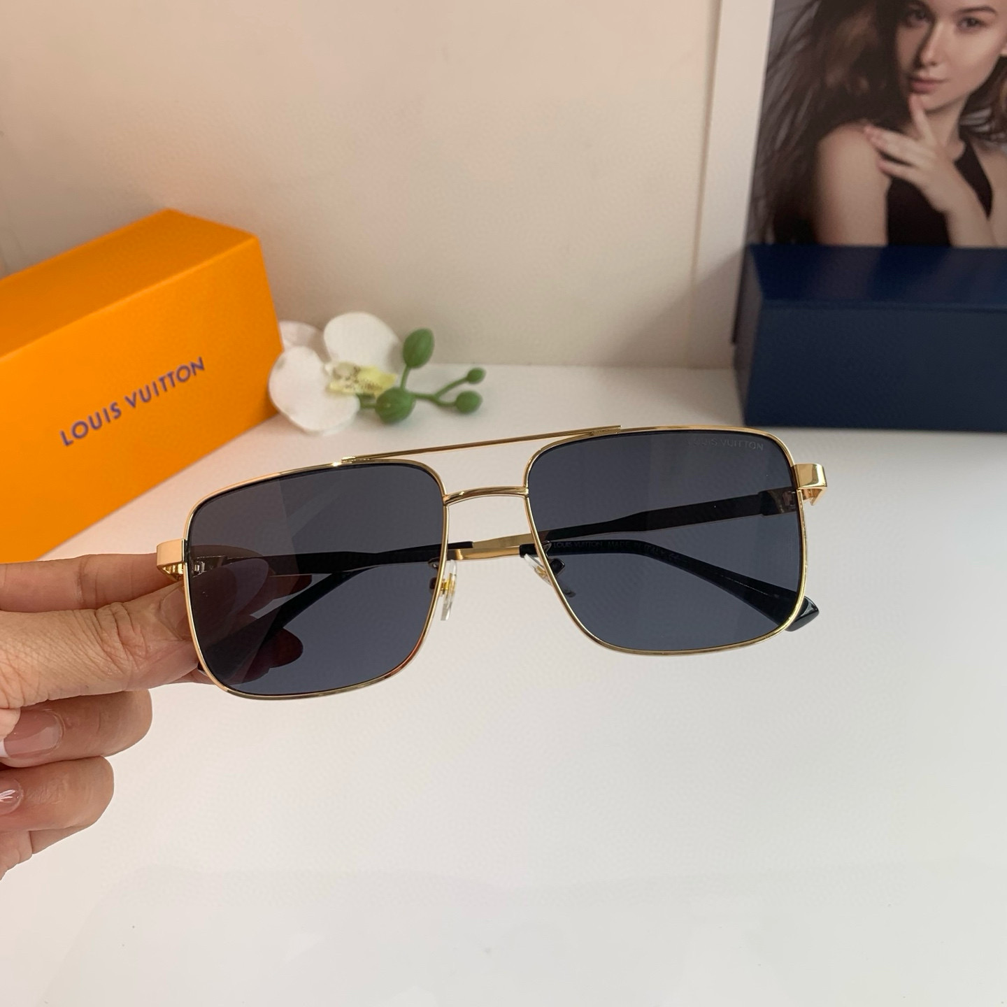 LV Louis Vuitton Classic Metal Square Frame Sunglasses, super cool and stylish on the street, looks great on the face, very elegant and slims the face, unisex design!