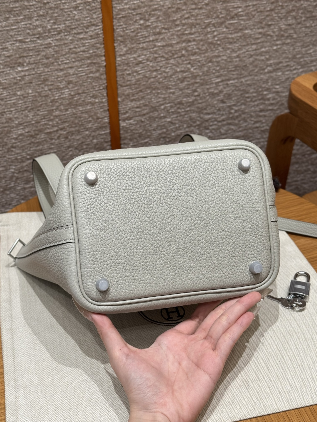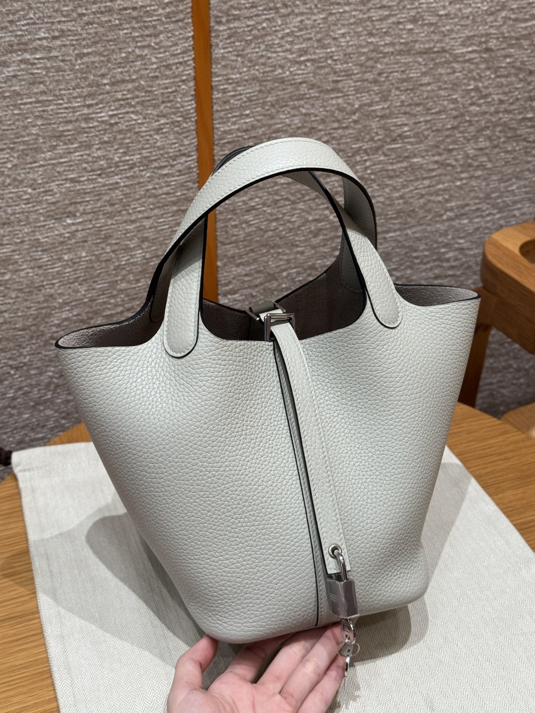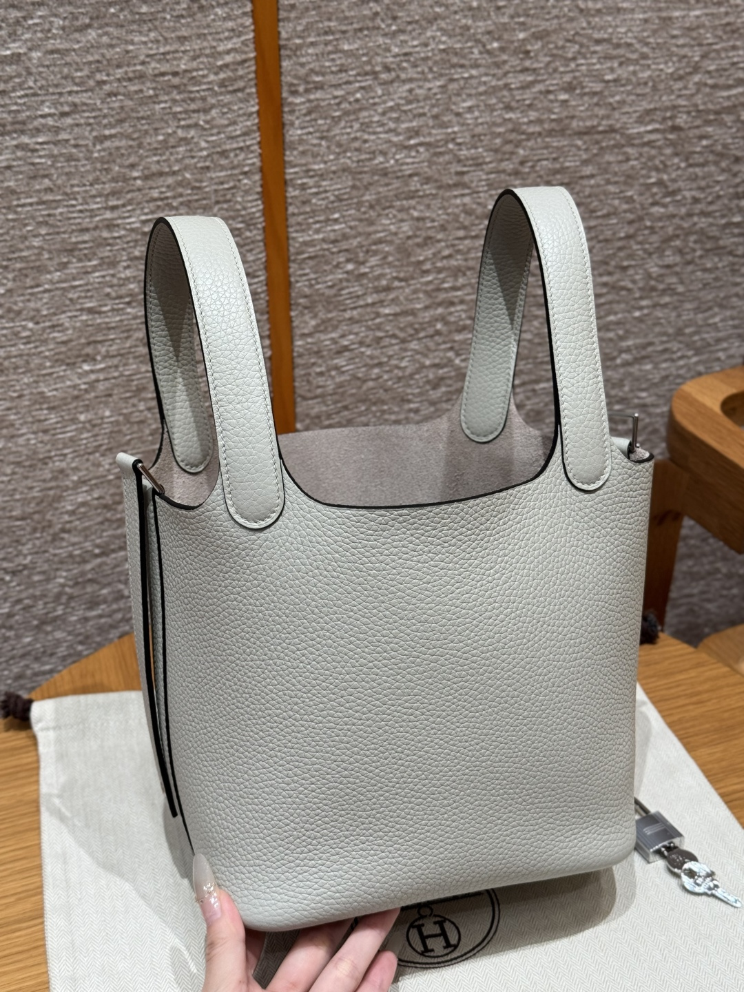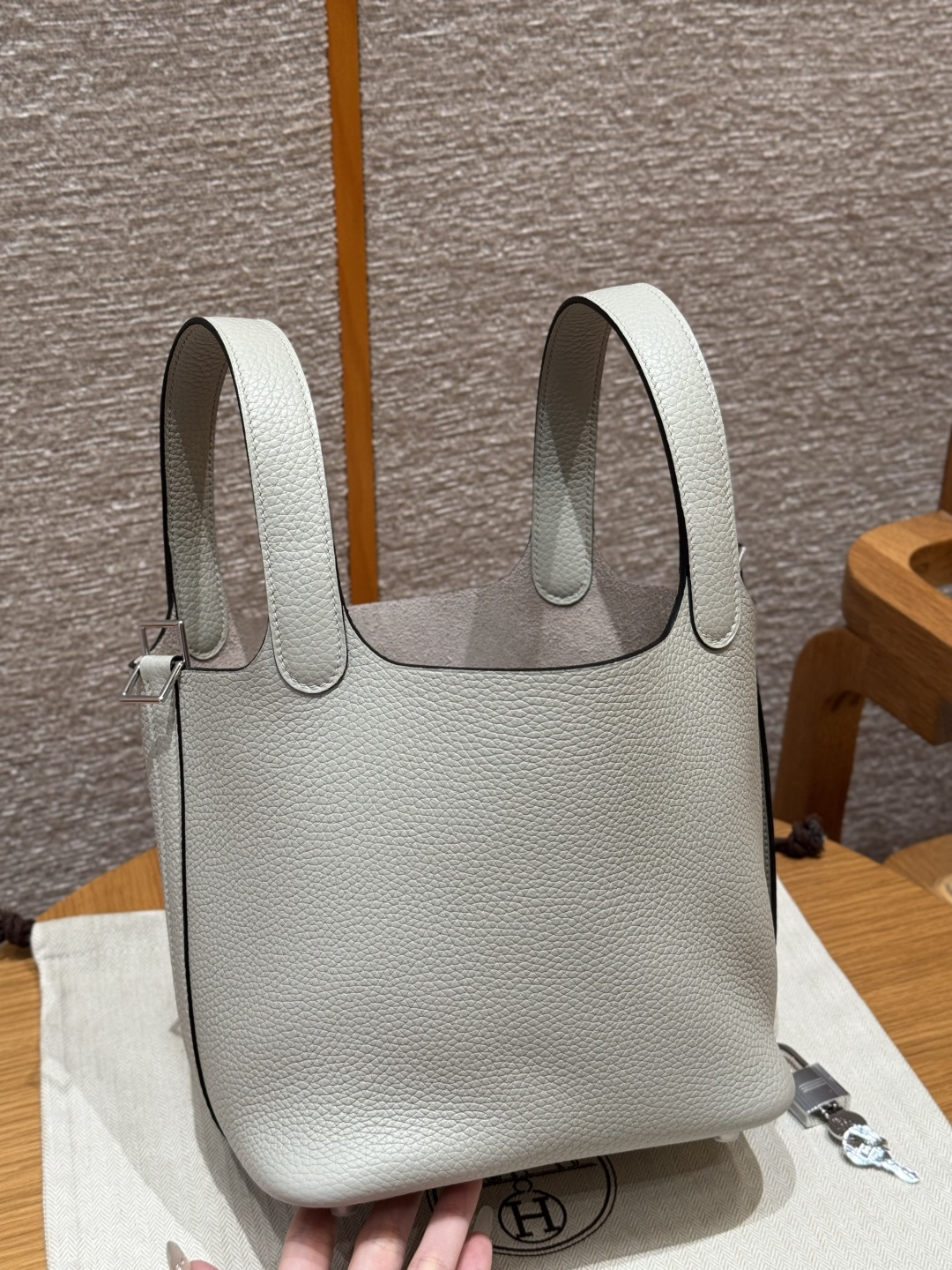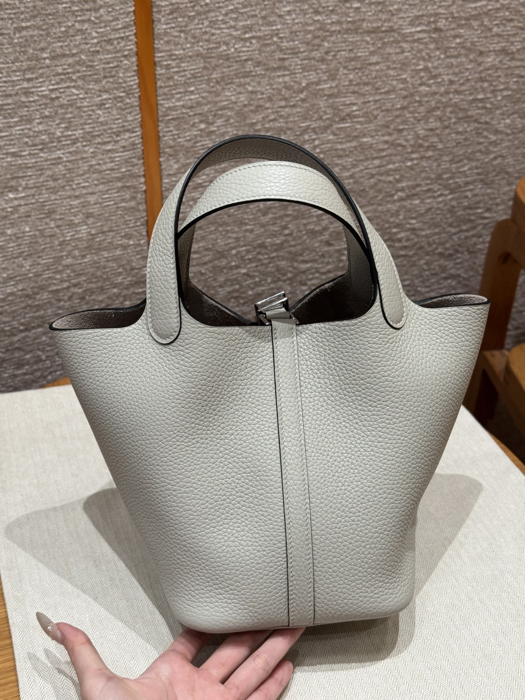 Picotin 18cm, Ice Crystal Gray, TC leather, original French imported cowhide, silver clasp, high-end fully handcrafted exclusive customization.