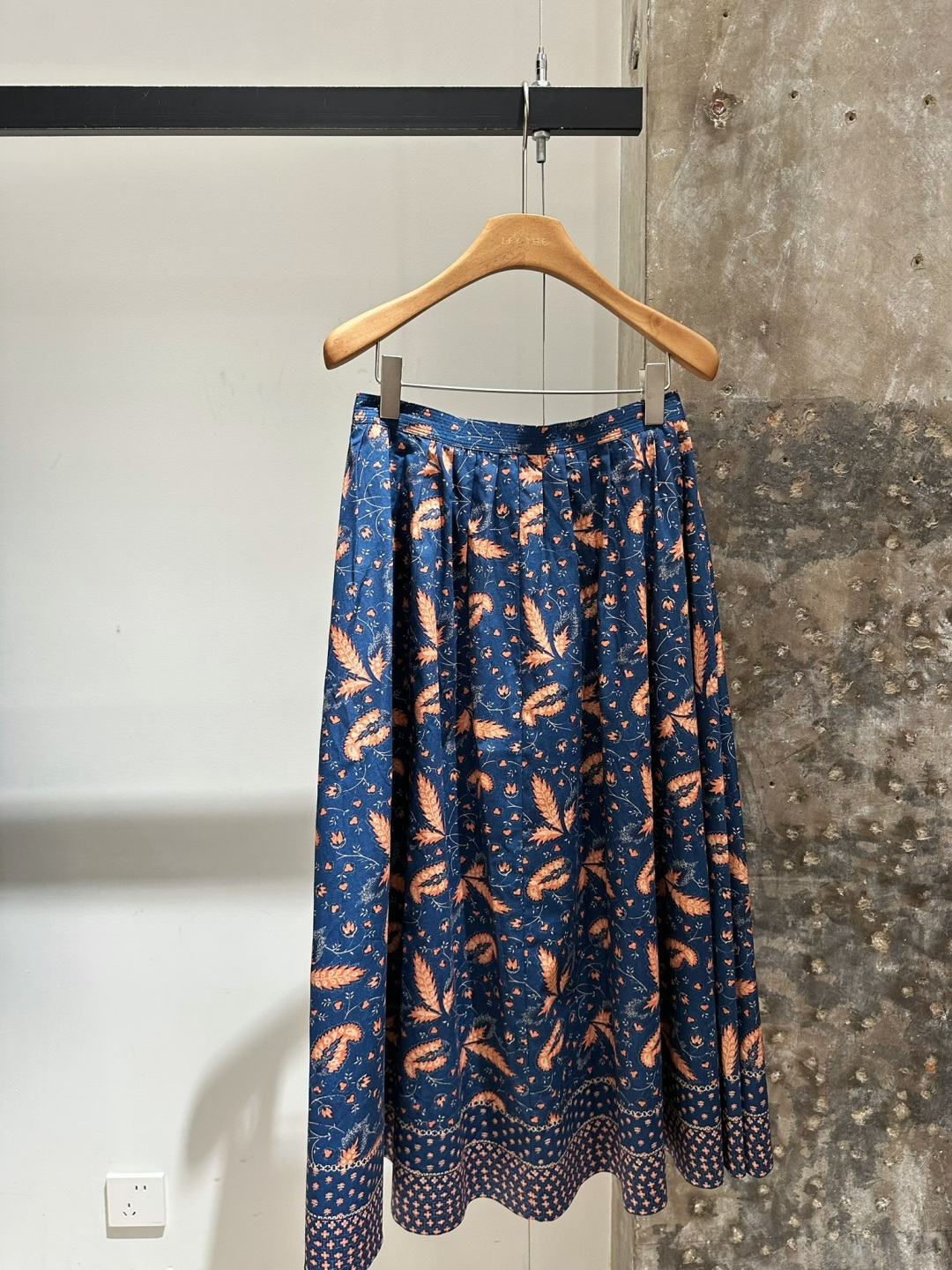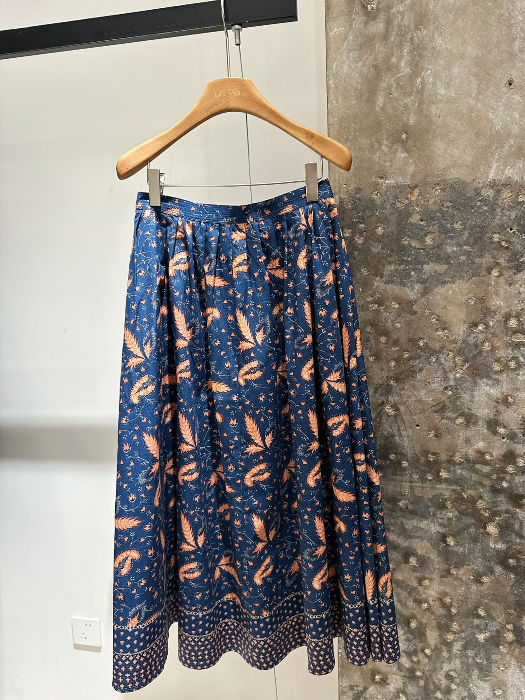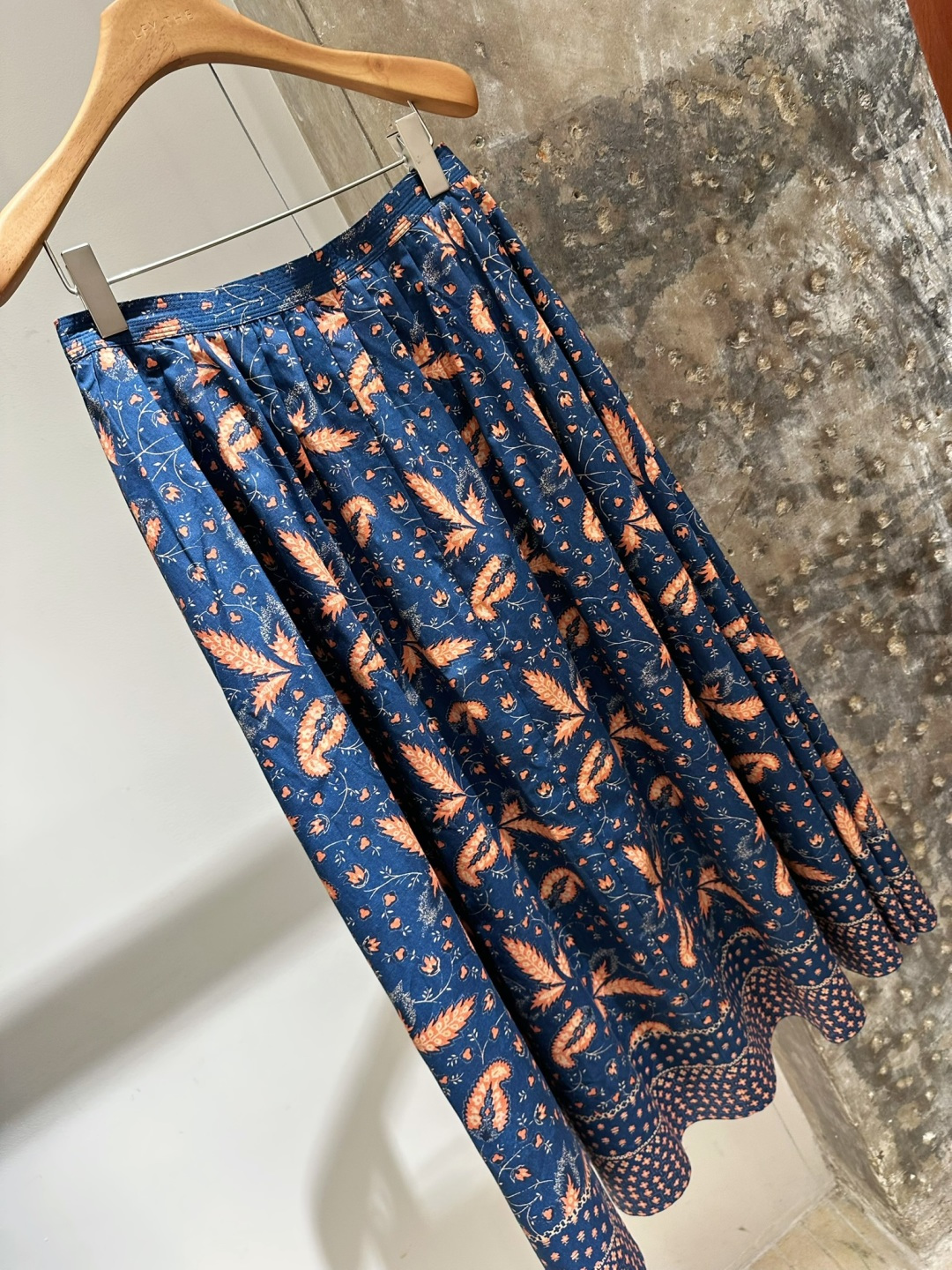 Wear Ralph Lauren's romance and elegance, making every step sway with grace~ This extra-long maxi skirt features a deep navy blue base, like a tranquil midsummer night. The exquisite flowers and lively feather prints blooming on it are a perfect blend of art and fashion, sketching a comfortable picture of strolling through a private garden! 100% cotton fabric offers a soft and breathable wearing experience, allowing you to enjoy lightness and comfort. The classic smocked waist design not only fits the waistline comfortably but also cleverly shapes the figure, outlining elegant curves. Whether paired with a simple white shirt for French elegance or with a knit vest for a casual holiday style, it is an indispensable collector's item in the wardrobe.