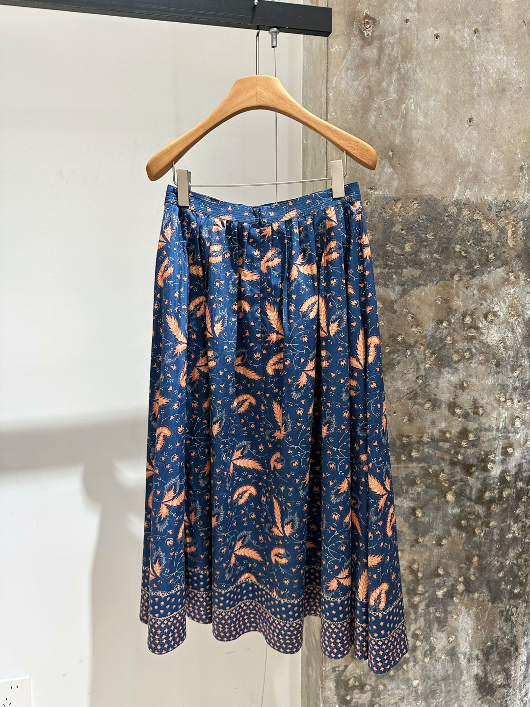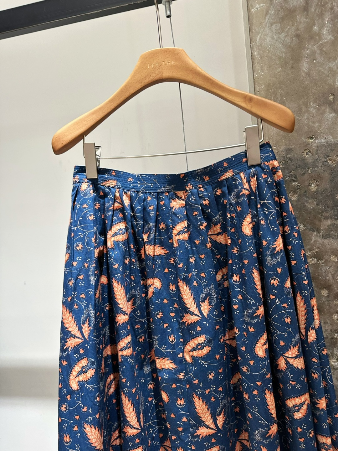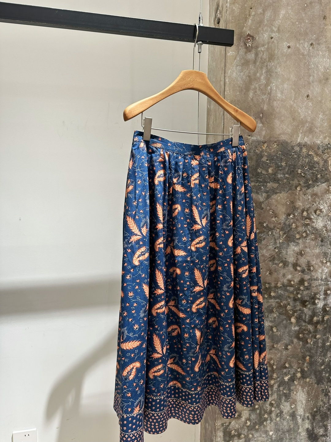 Wear Ralph Lauren's romance and elegance, making every step sway with grace~ This extra-long maxi skirt features a deep navy blue base, like a tranquil midsummer night. The exquisite flowers and lively feather prints blooming on it are a perfect blend of art and fashion, sketching a comfortable picture of strolling through a private garden! 100% cotton fabric offers a soft and breathable wearing experience, allowing you to enjoy lightness and comfort. The classic smocked waist design not only fits the waistline comfortably but also cleverly shapes the figure, outlining elegant curves. Whether paired with a simple white shirt for French elegance or with a knit vest for a casual holiday style, it is an indispensable collector's item in the wardrobe.
