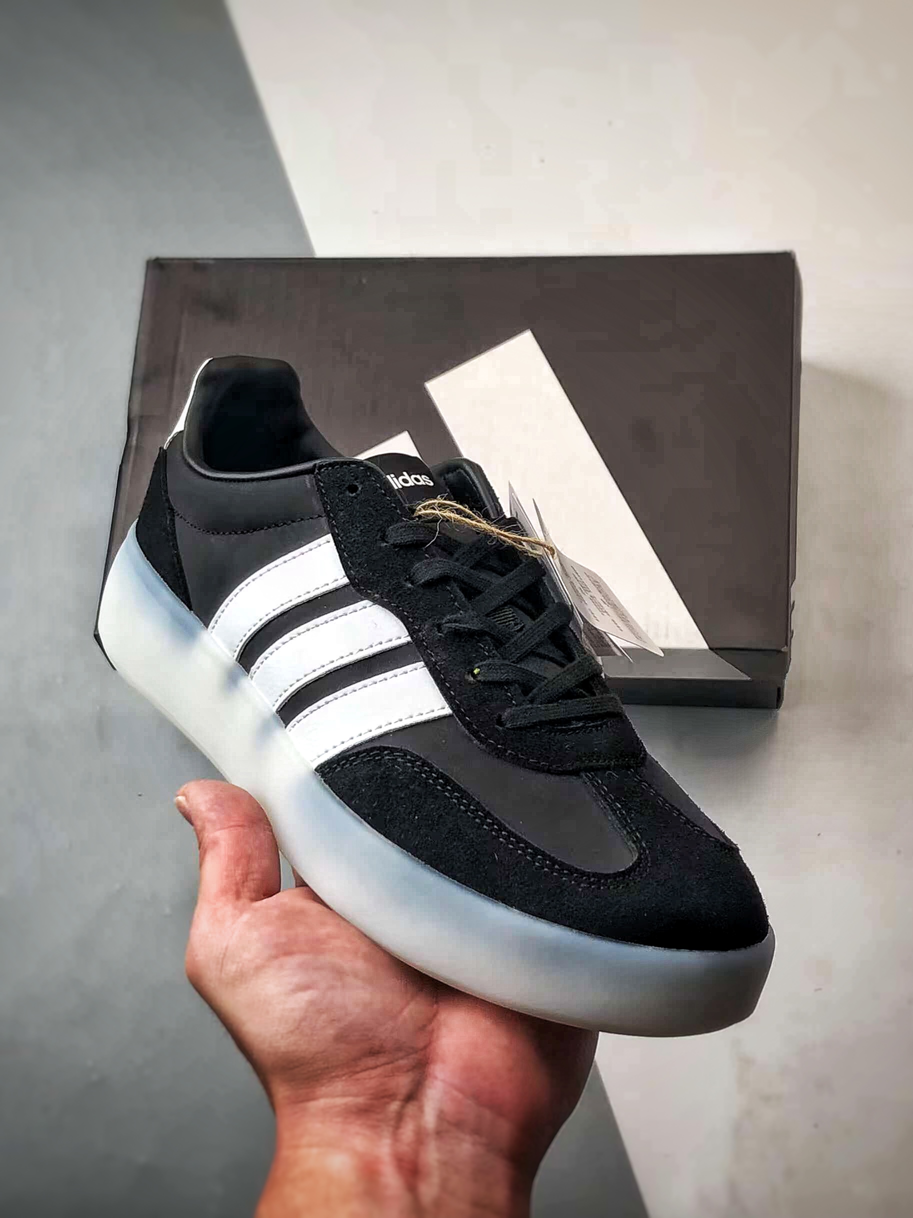 #Original last original paper pattern development Nylon + suede spliced upper, comfortable and breathable. Wide last shape, releases feet,告别束缚. EVA semi-transparent jelly outsole, comfortable feel, anti-slip and wear-resistant.