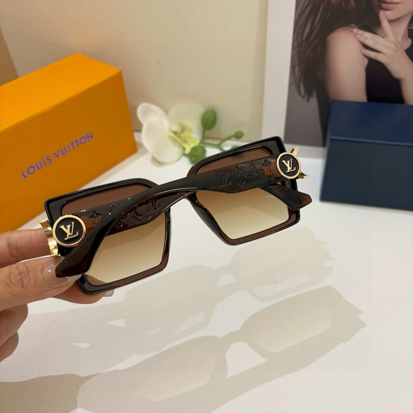 LV Louis Vuitton Korean-style sunglasses, popular internet celebrity same-style sunglasses, large frame fashionable and versatile trendy glasses! A must-have for travel!