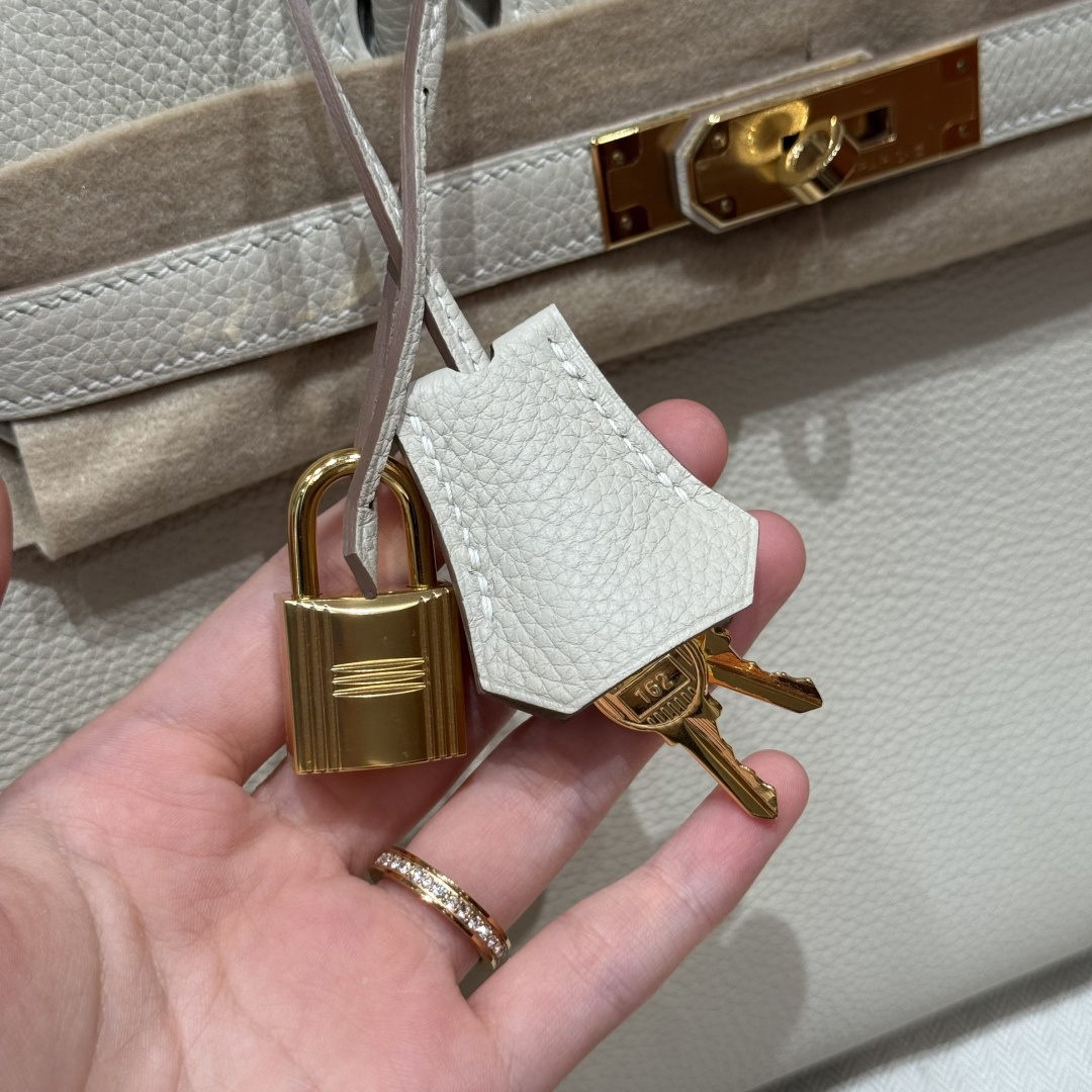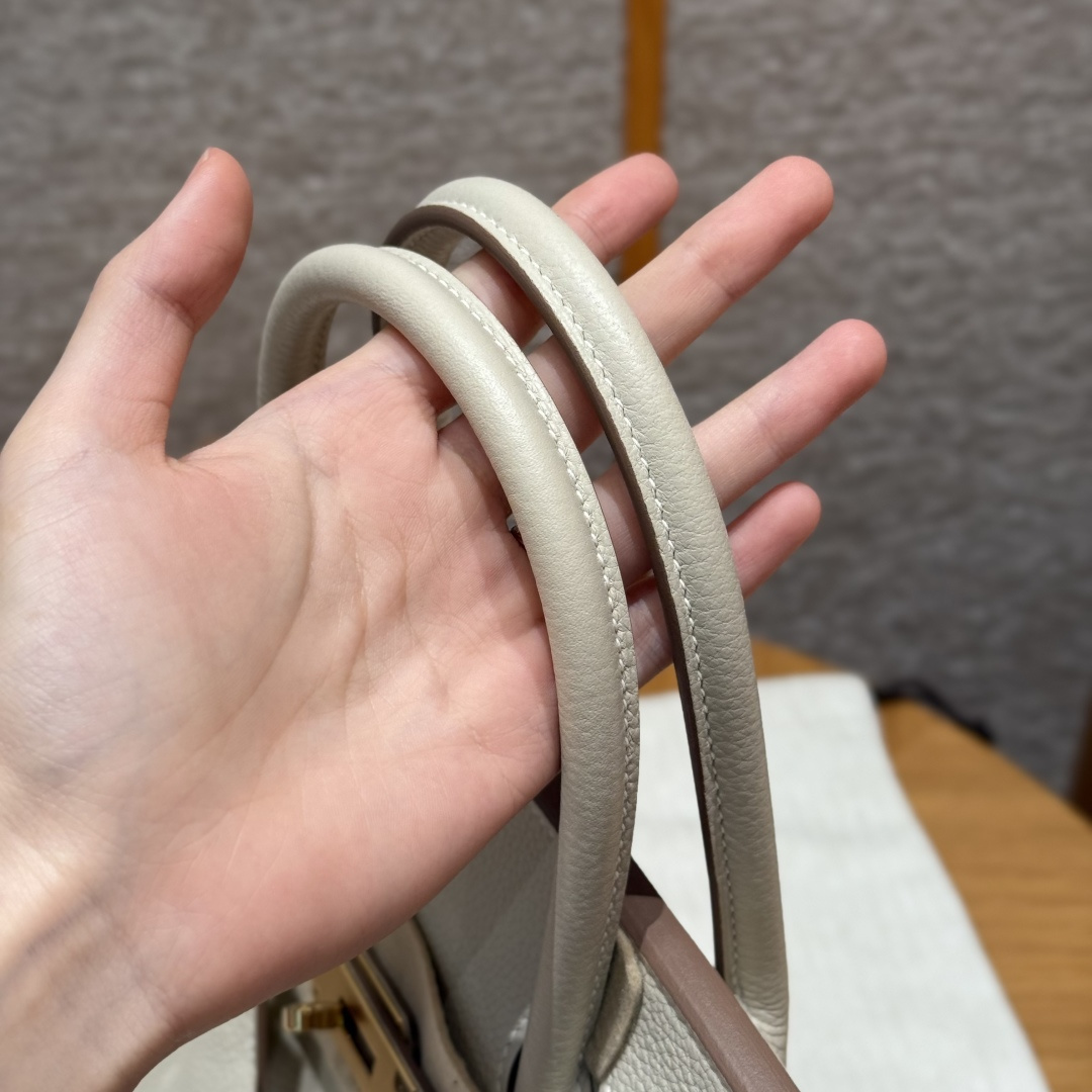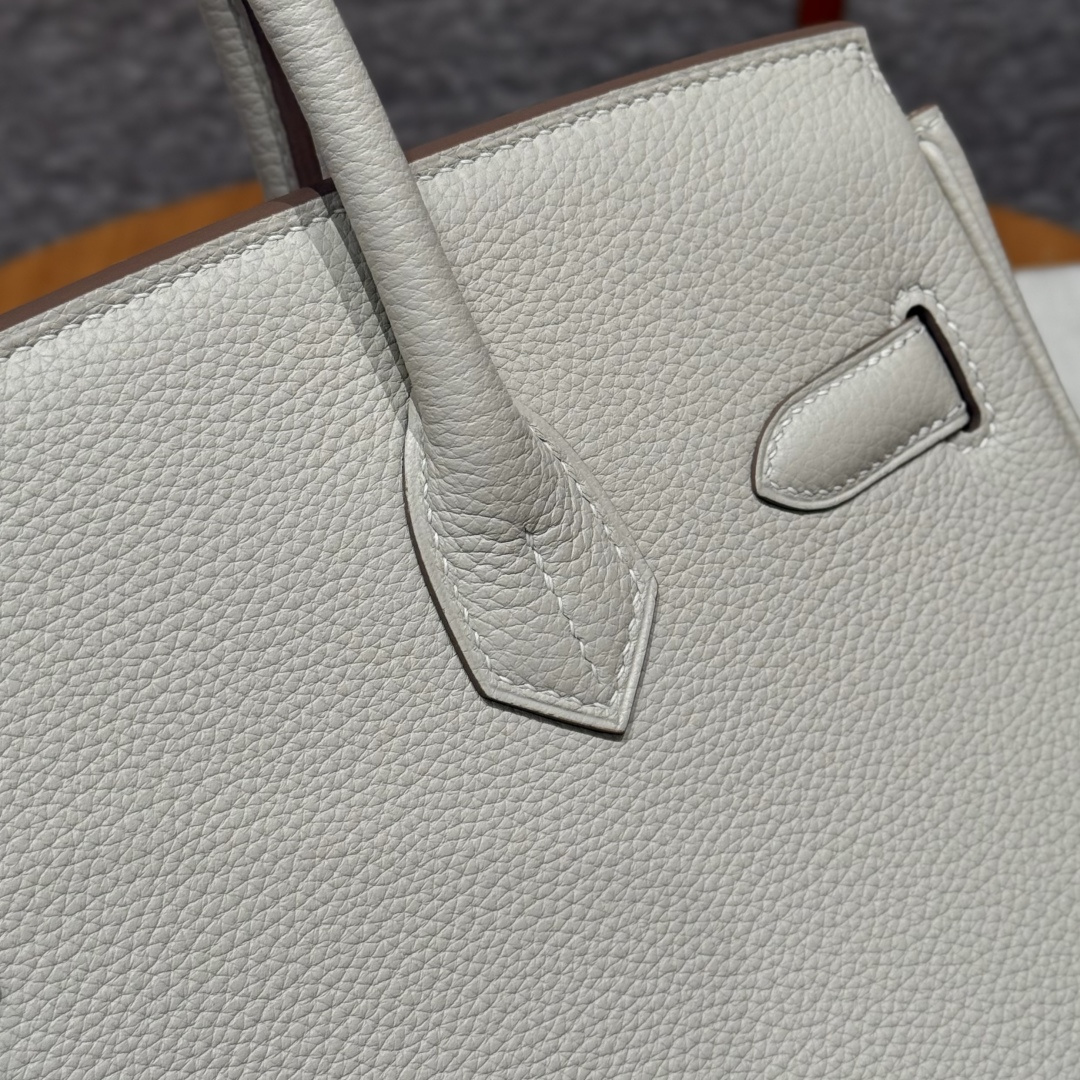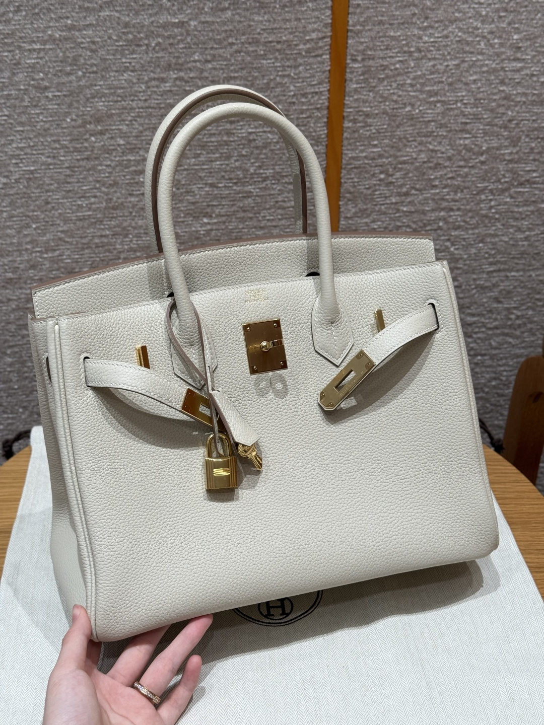Platinum 30, milkshake white - inner seam, imported French Togo cowhide, gold buckle, advanced fully handmade exclusive customization.
