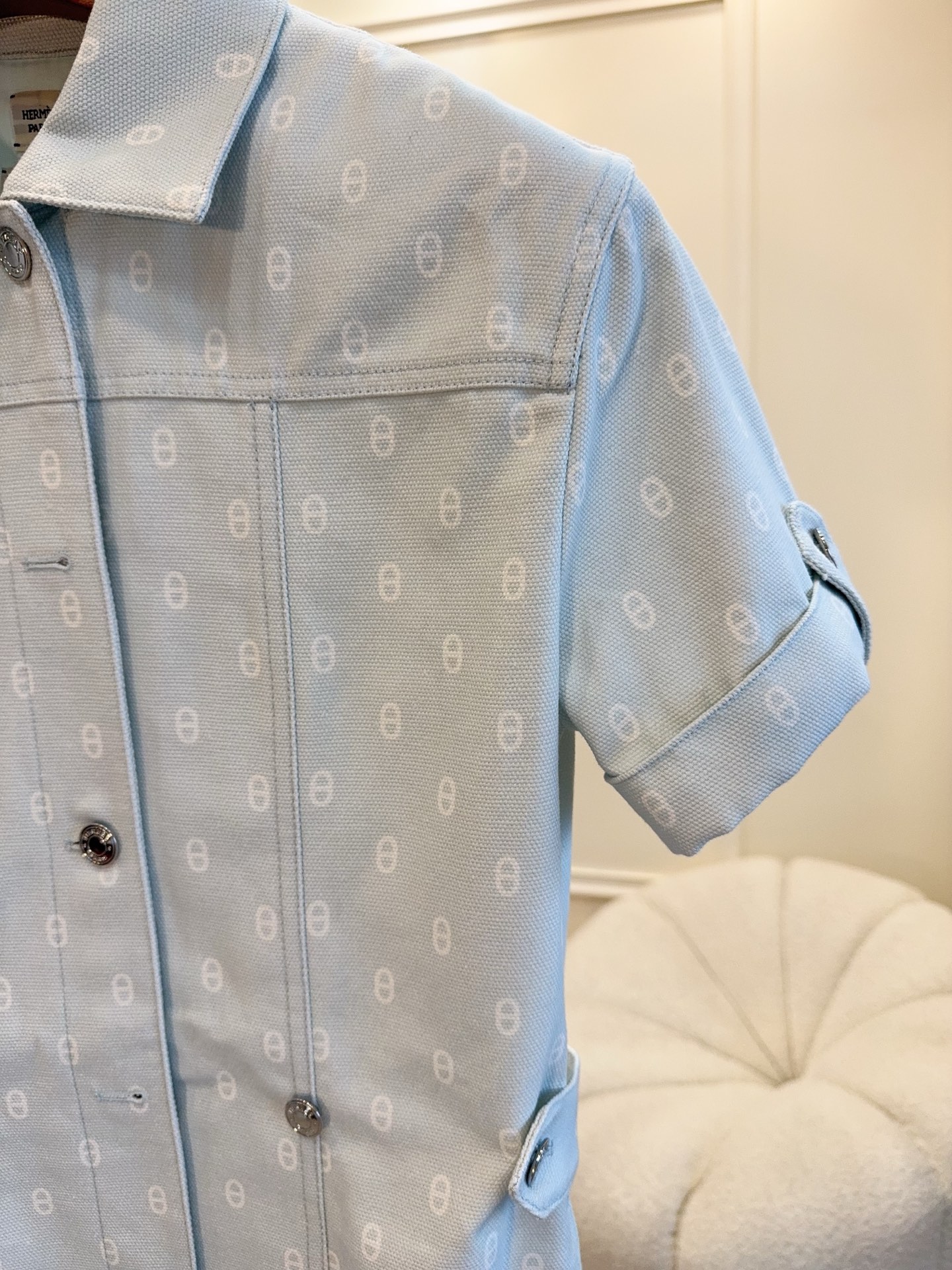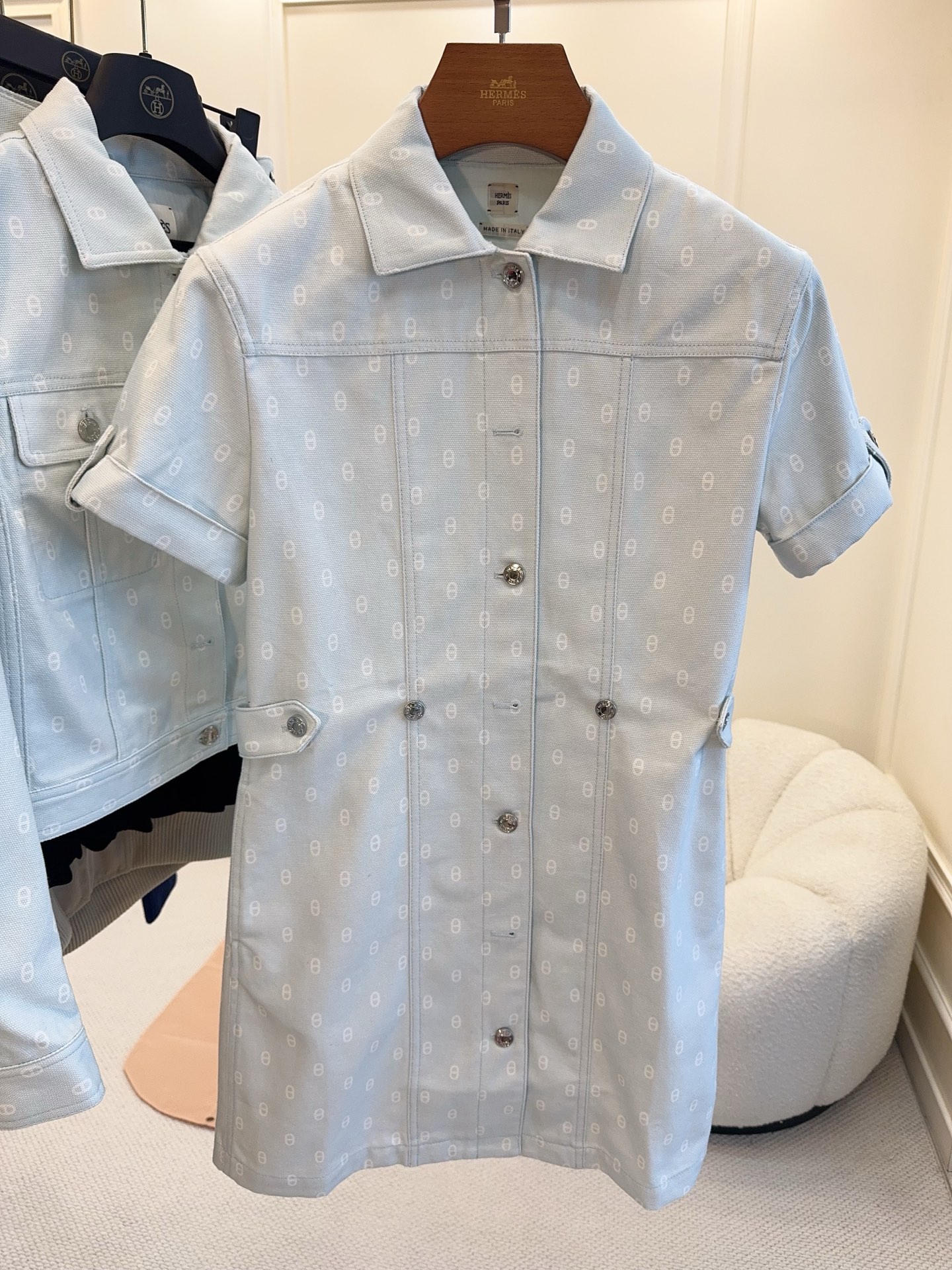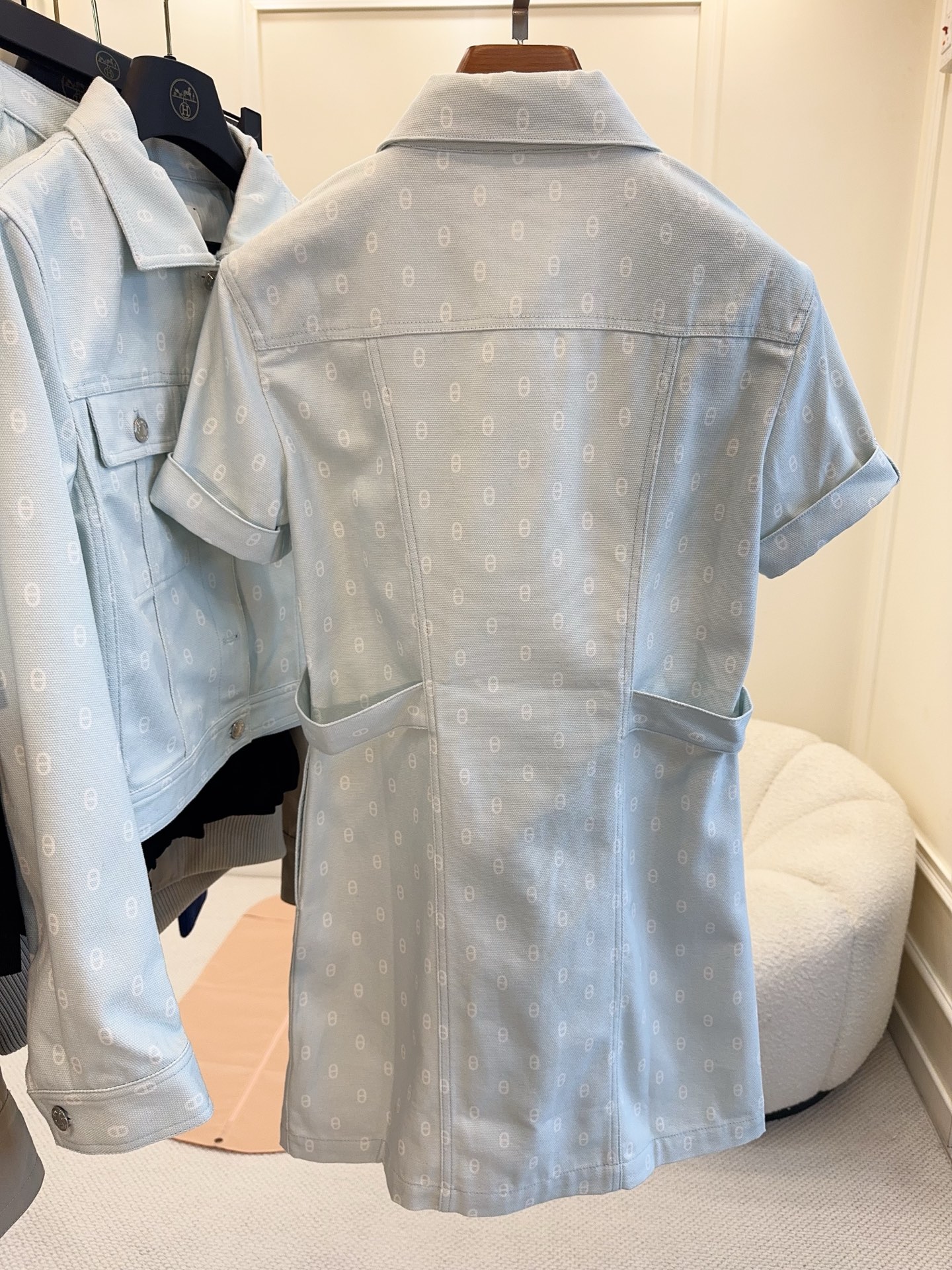 Hermes 2025 early autumn new product pig nose print short sleeve denim dress, custom twill cotton denim fabric, texture crisp, light green fresh and elegant, H version versatile and not picky, highly practical denim skirt, solve your commuting or daily street wear, custom logo hardware, high-end texture!