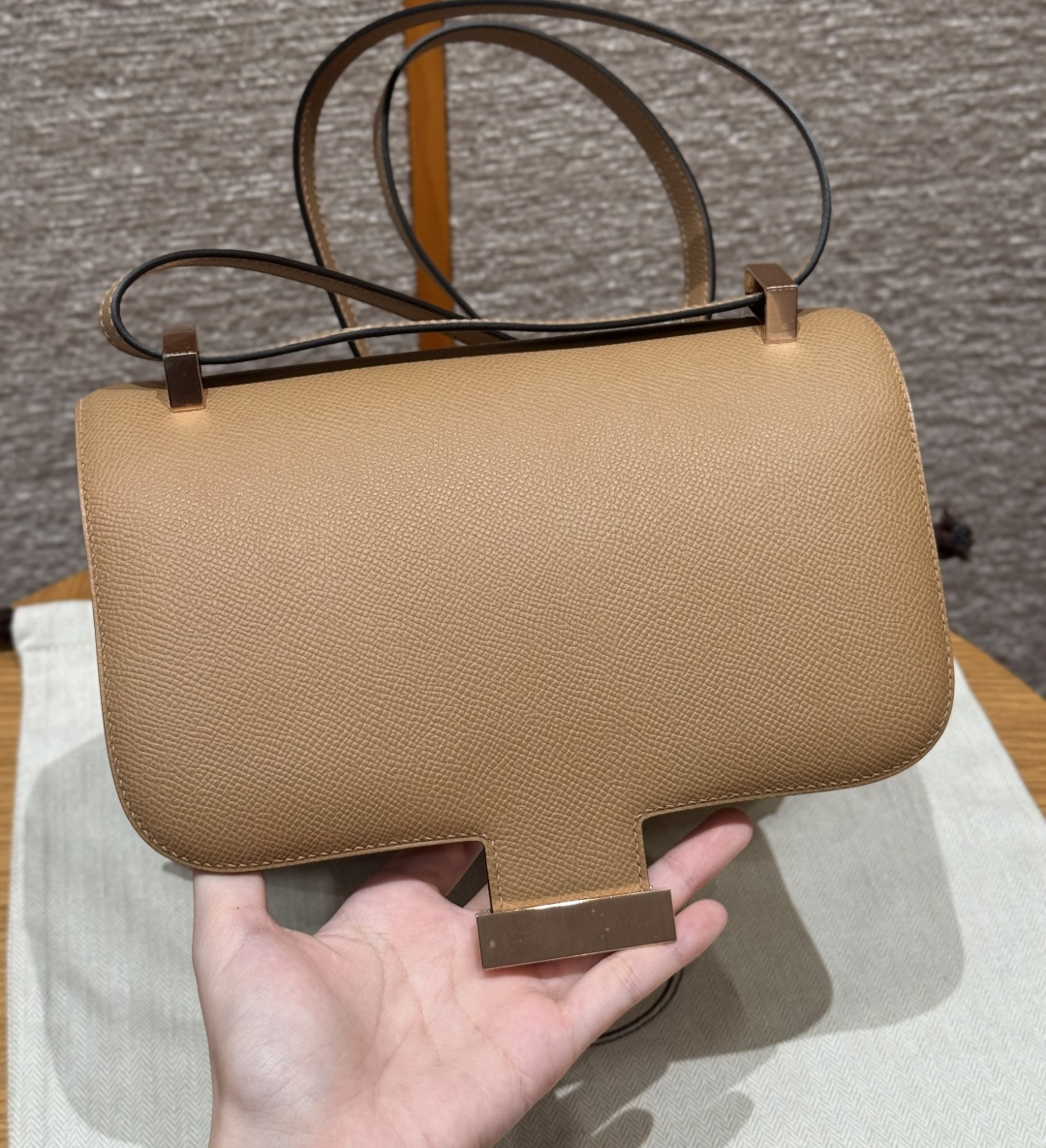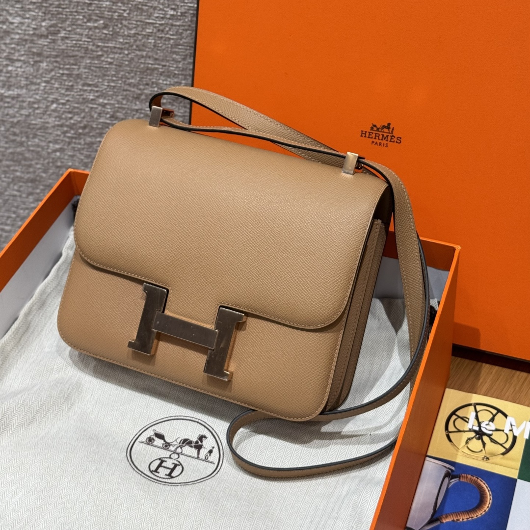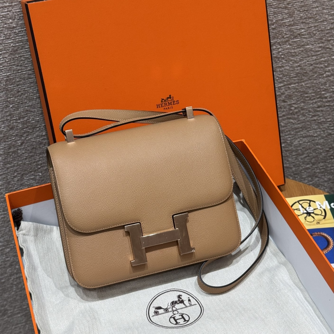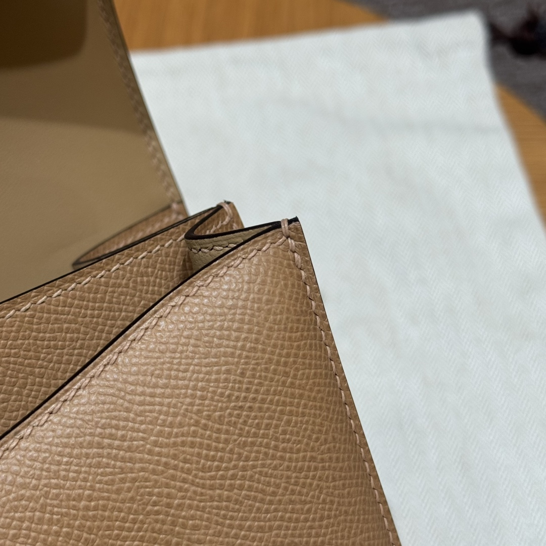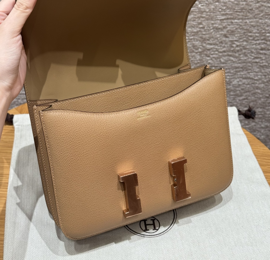 Constance 24cm, chai color, French imported original factory veal leather, rose gold buckle, high-end fully handcrafted exclusive custom.