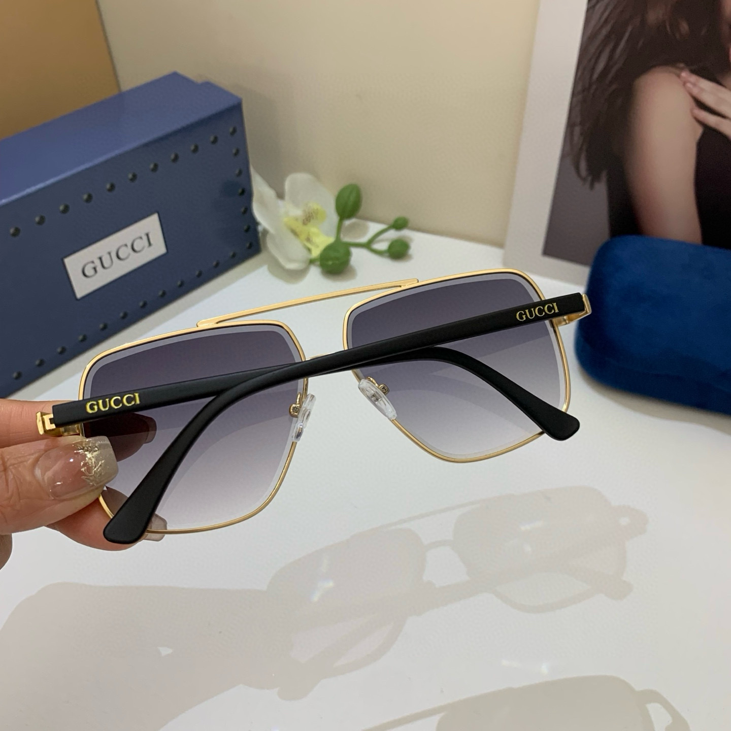 Gucci new square frame fashion sunglasses European and American street style网红versatile sunglasses must-have sunglasses for travel!