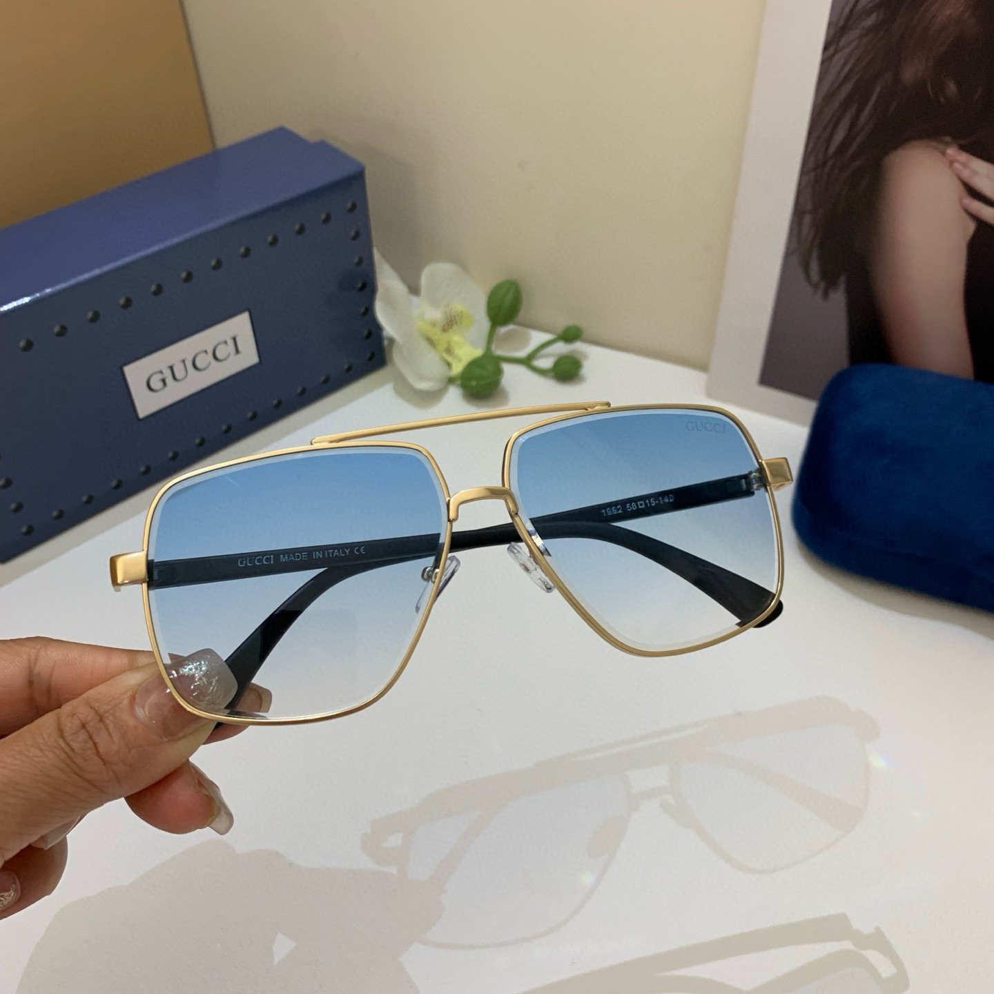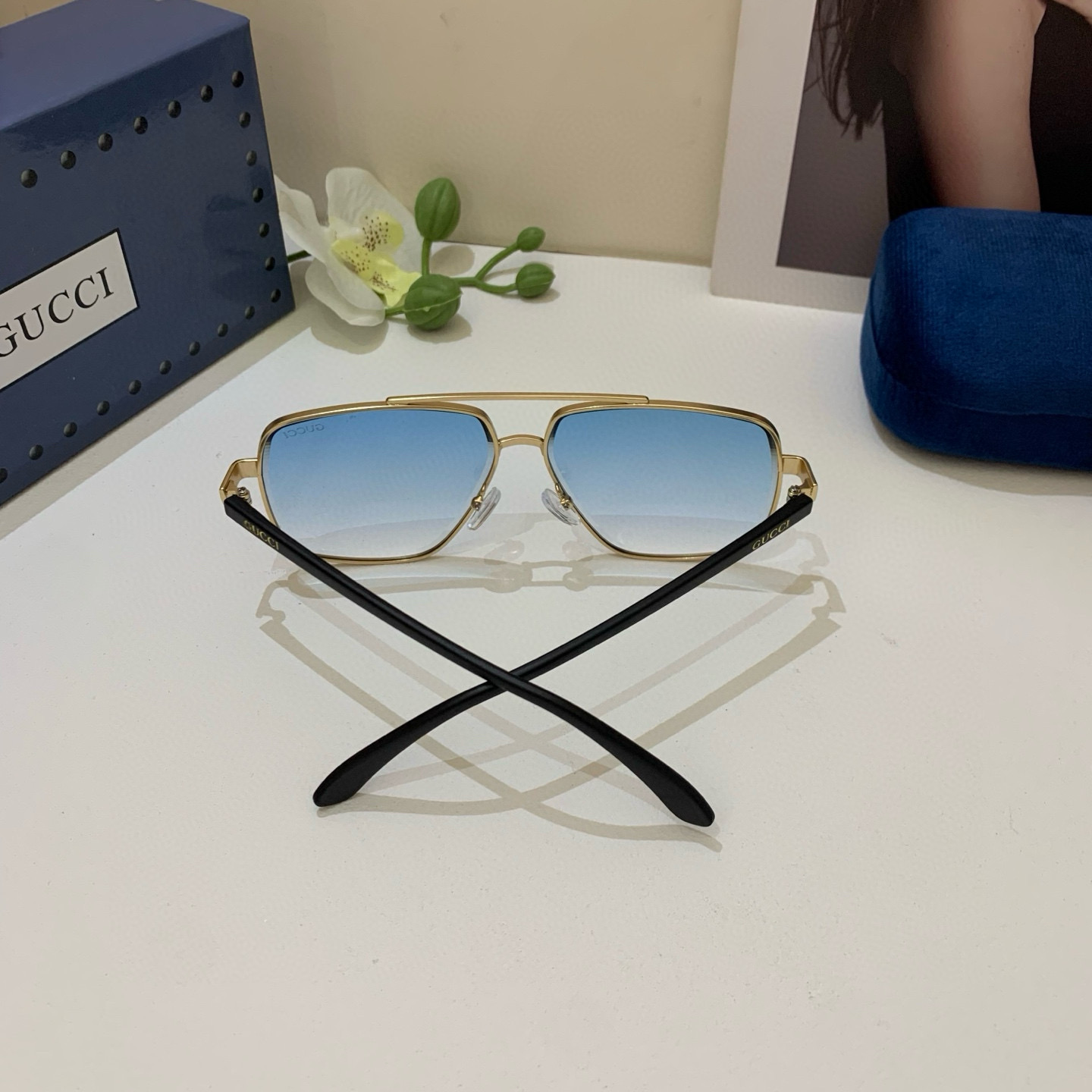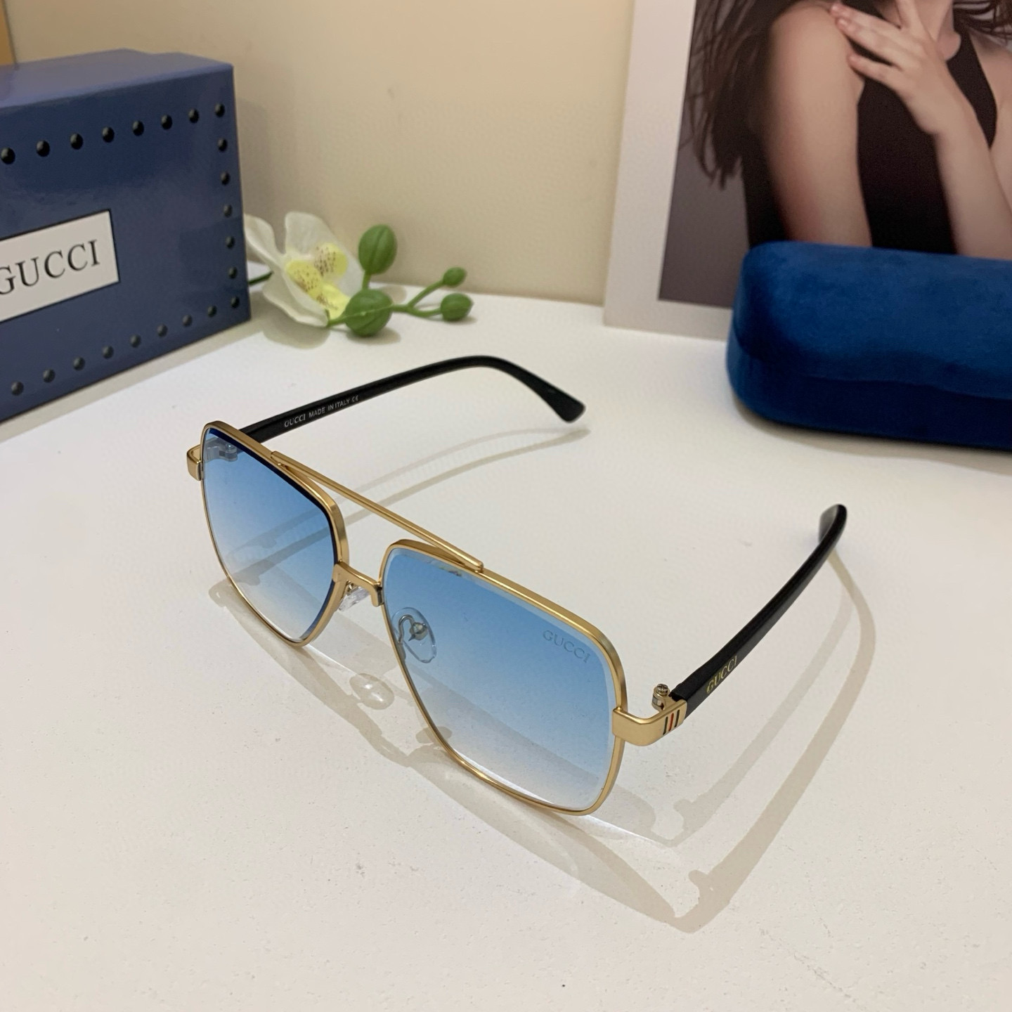 Gucci new square frame fashion sunglasses European and American street style网红 versatile sunglasses must-have travel sunglasses