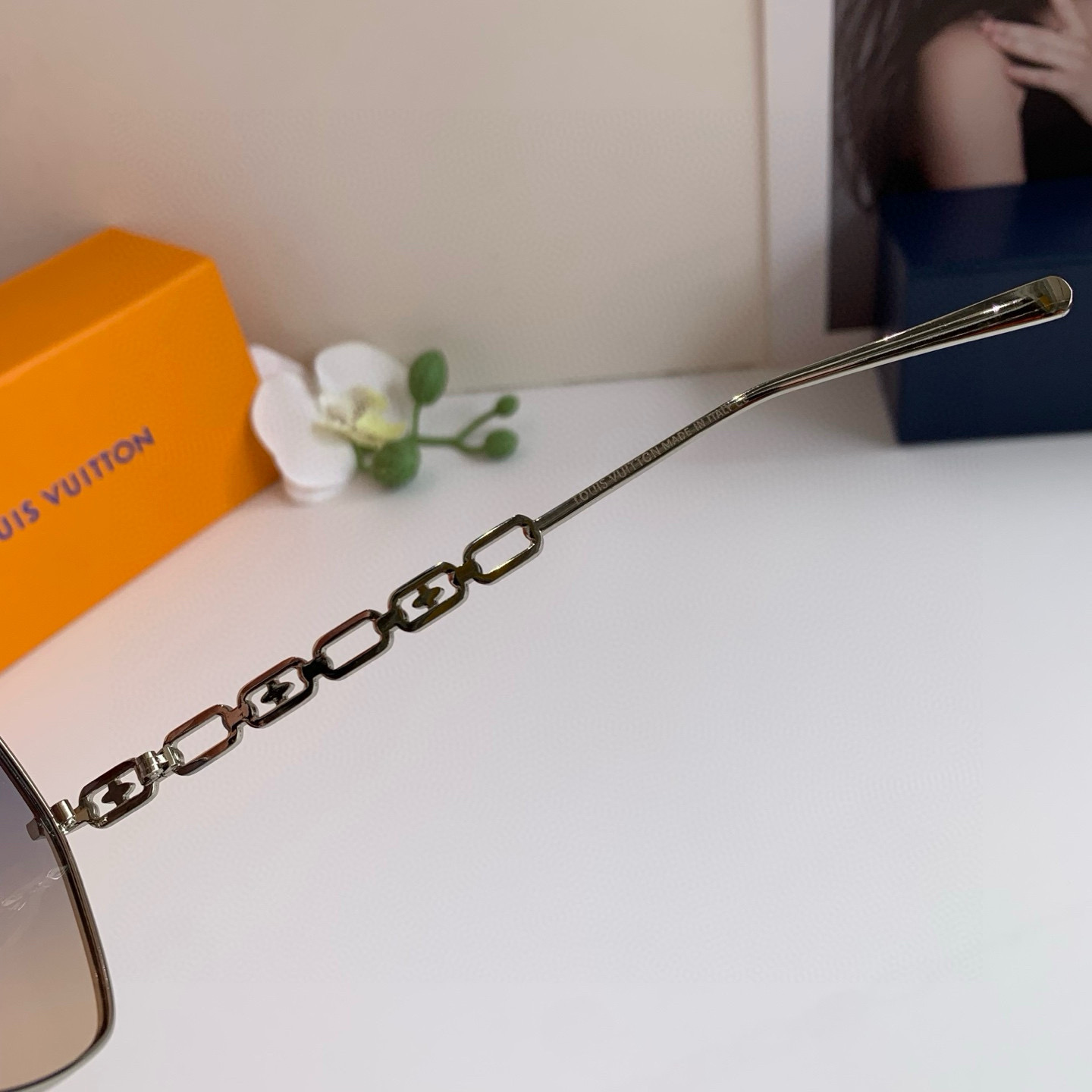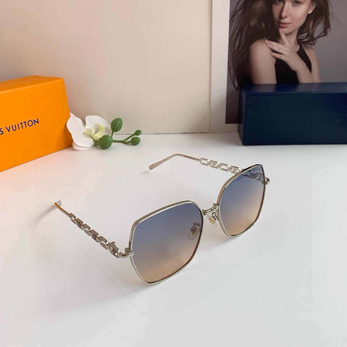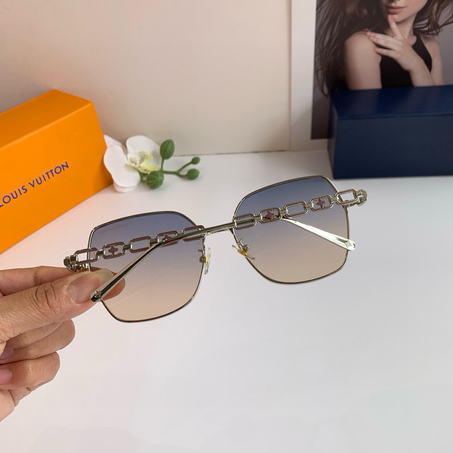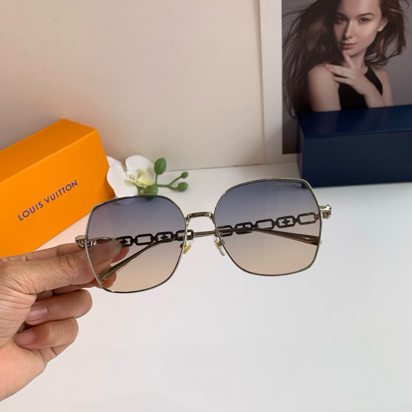 LV Louis Vuitton Korean version new chain temple rectangular frame sunglasses, internet-famous same-style sunglasses, fashionable, personalized, versatile trendy glasses!