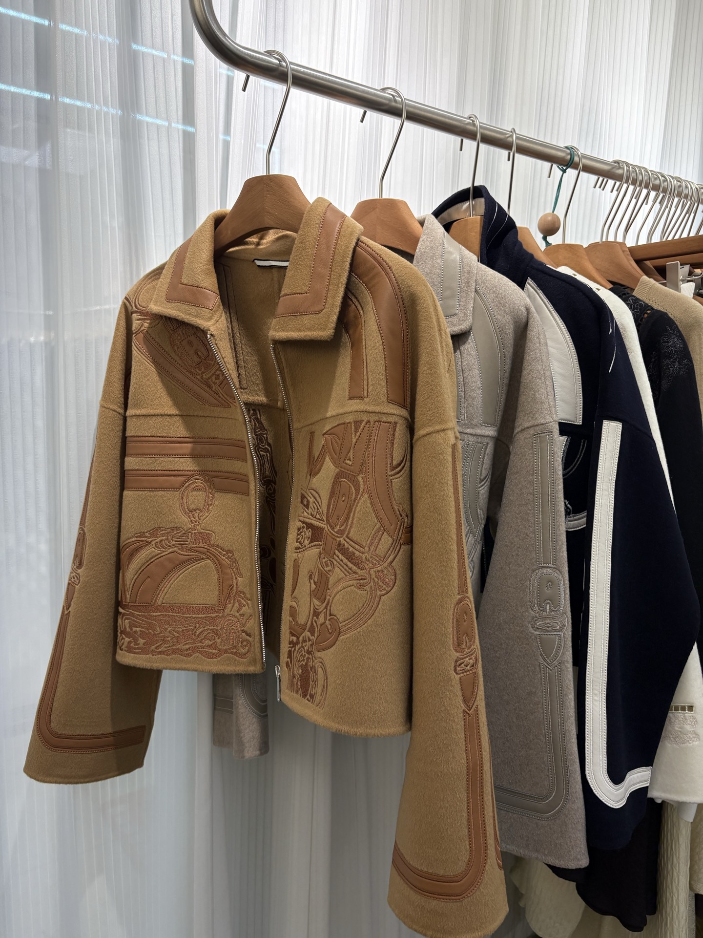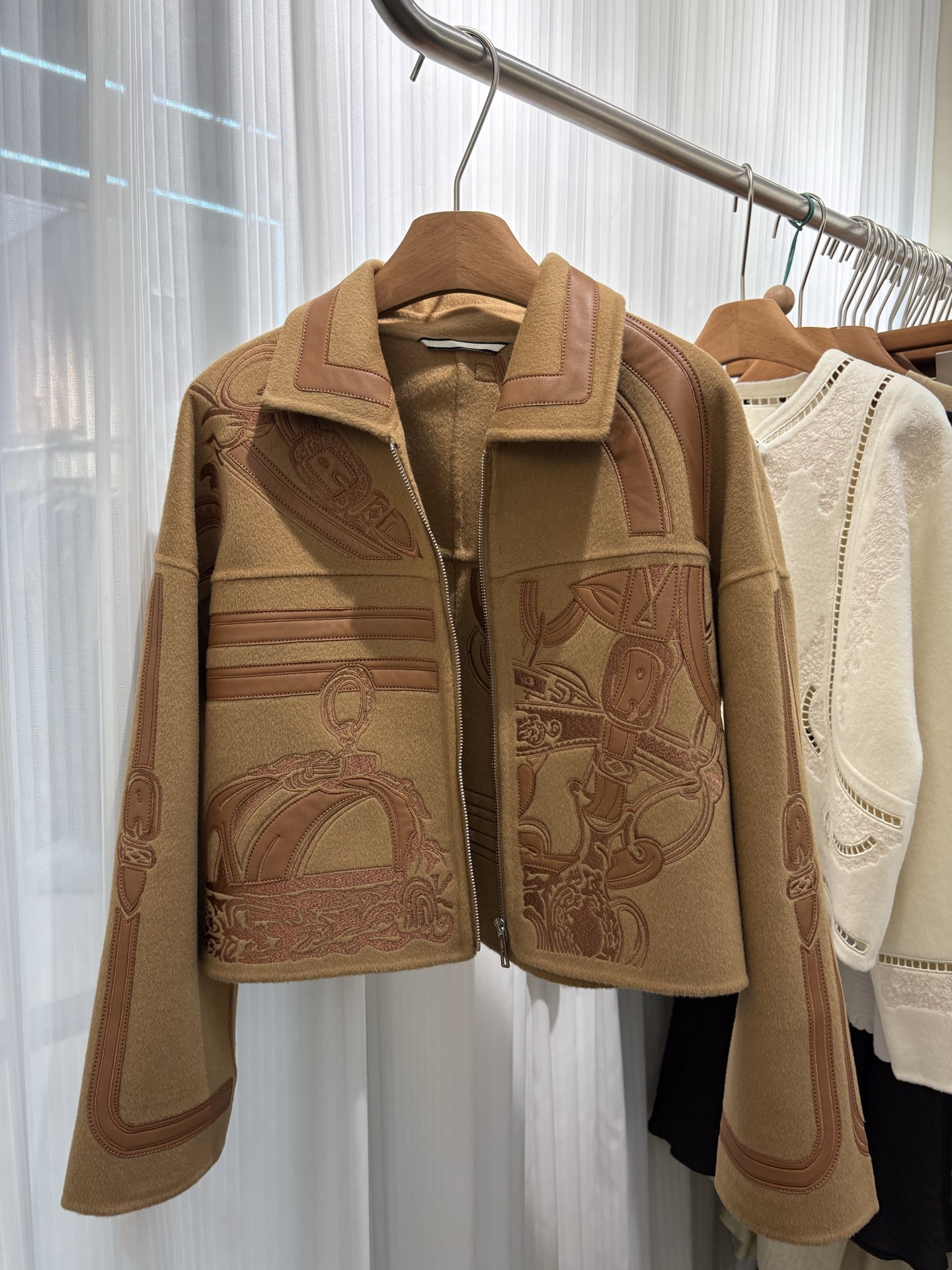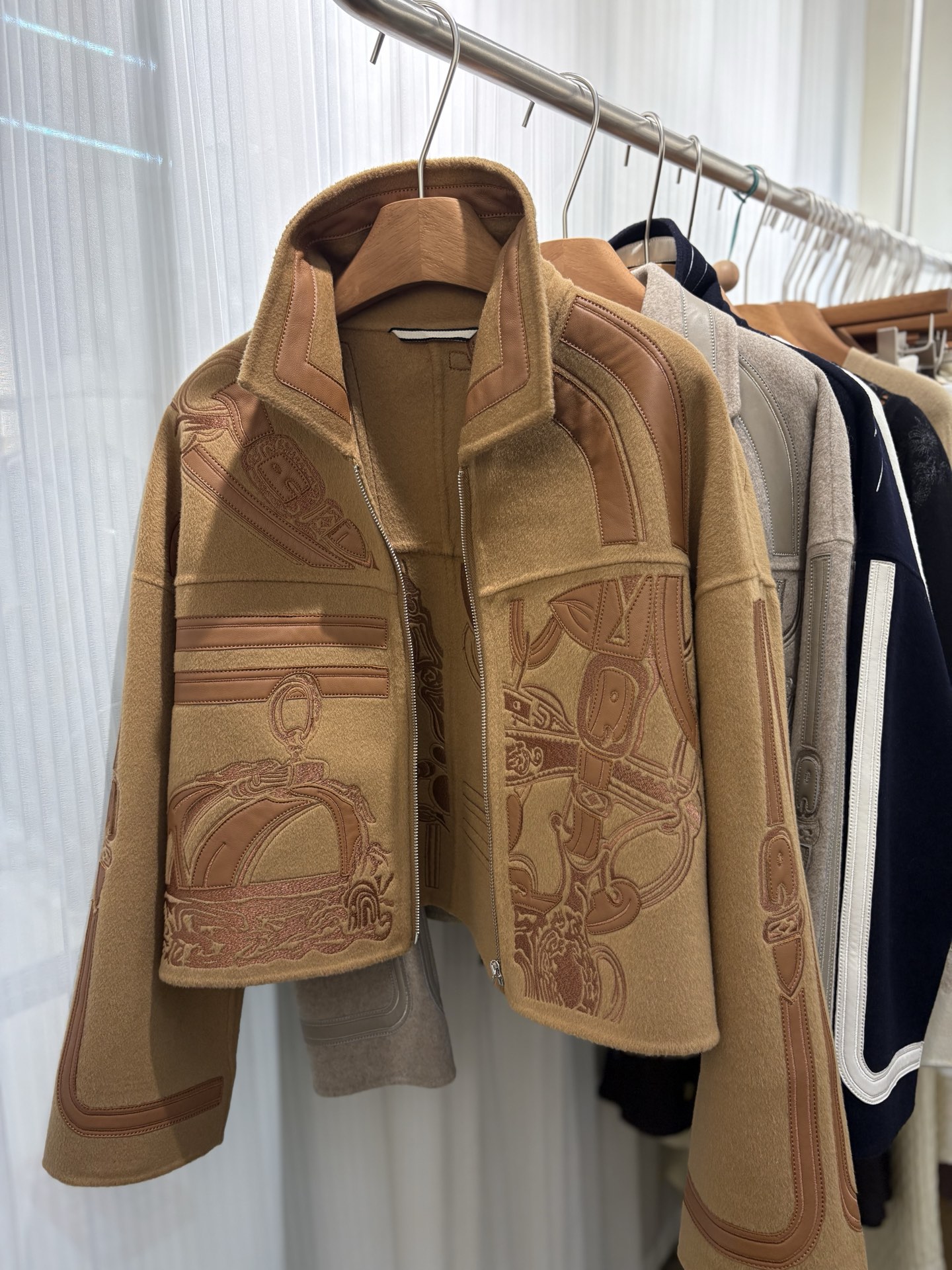 Heavyweight arrival H family autumn winter cashmere coat embroidered cashmere mixed leather jacket full of detail texture sizes 36 38 40