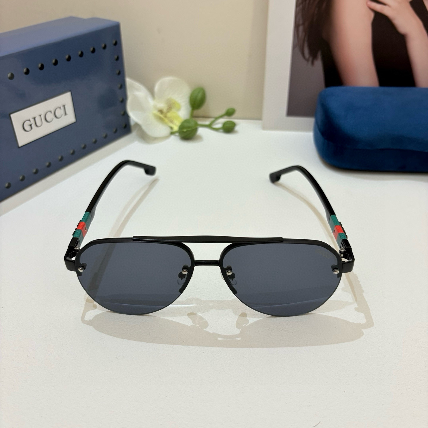 【GUCCI】Gucci 2025 Early Spring New Fashion Polarized Sunglasses High Quality Comfortable to Wear Internet Celebrity Trendy Sunglasses Aviator Sunglasses!