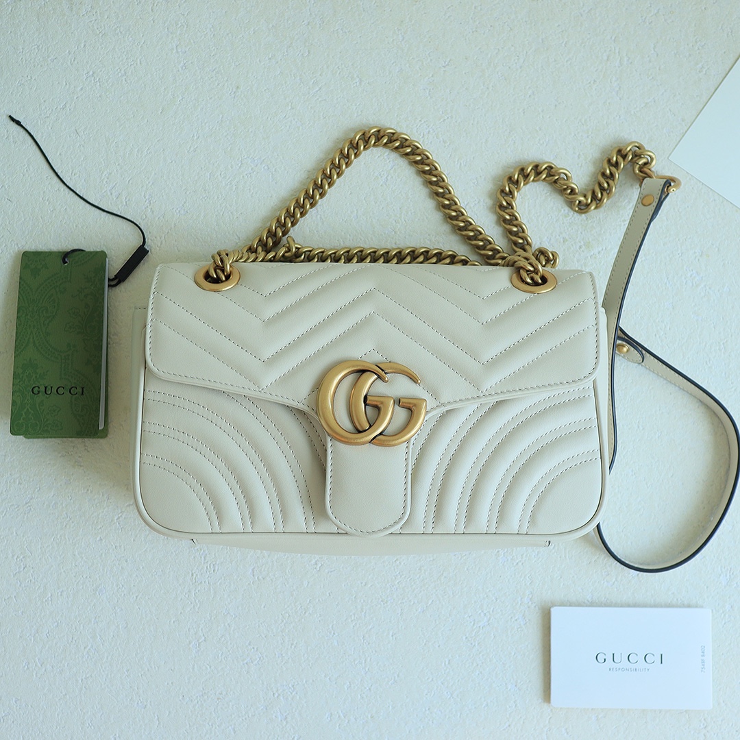 Exclusive quality, recommended for comparison. Inspection level! 26cm GG Marmont wave-pattern chain bag, imported calfskin with identical texture, feel, and gloss. Authentic silhouette, impeccable detail work! Dimensions: 26*15*7cm