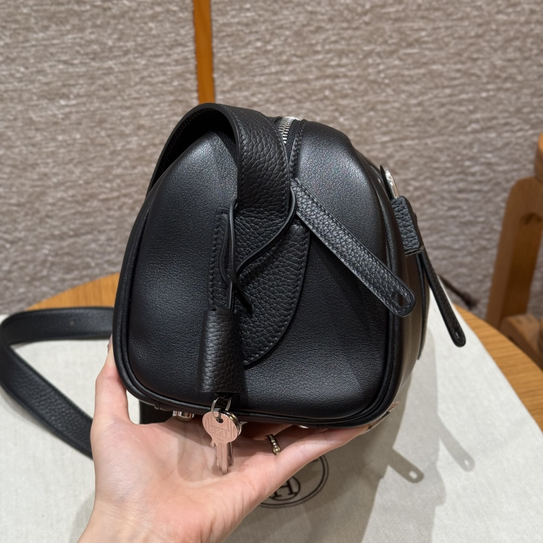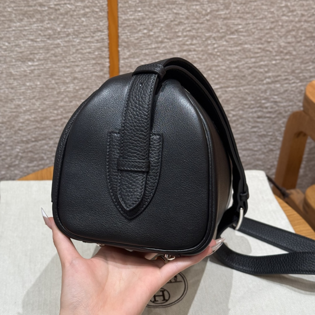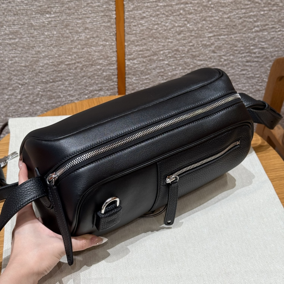 Shoulder bag 29, black, plain grain combined with Togo leather, original French imported cowhide, silver clasp, high-end fully handcrafted exclusive customization.