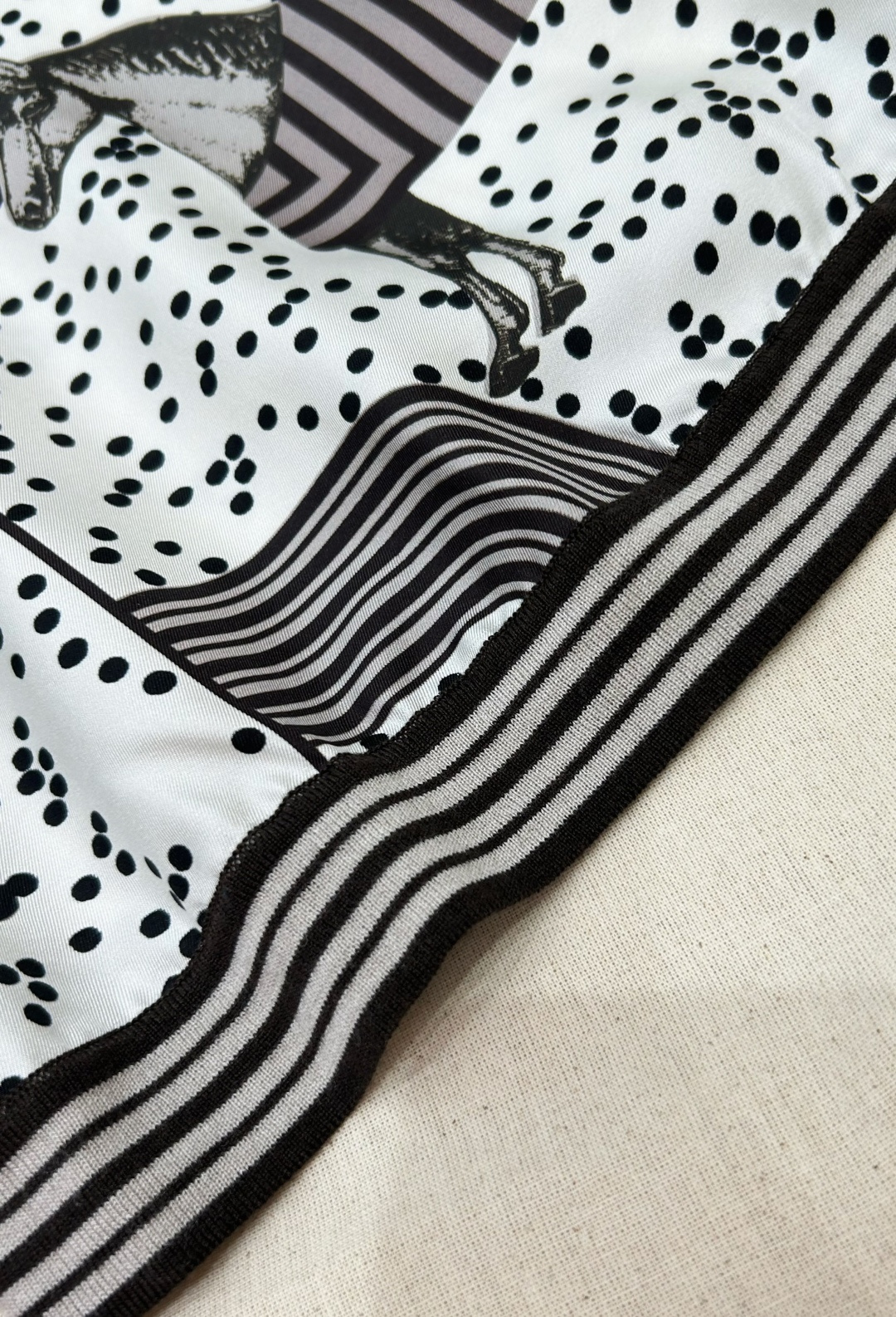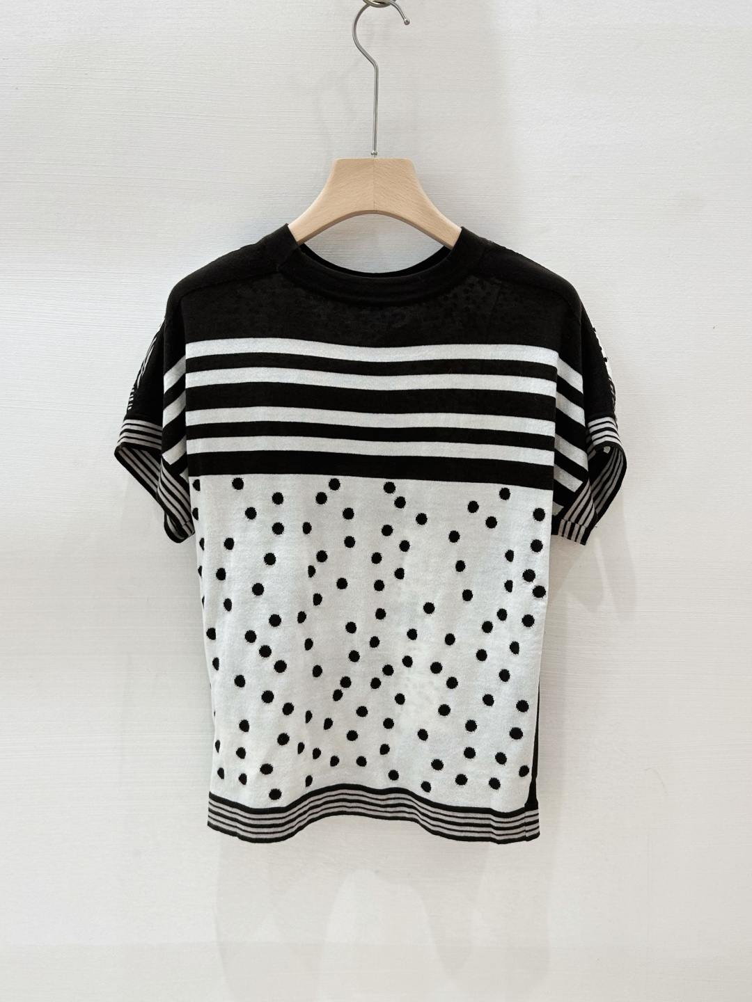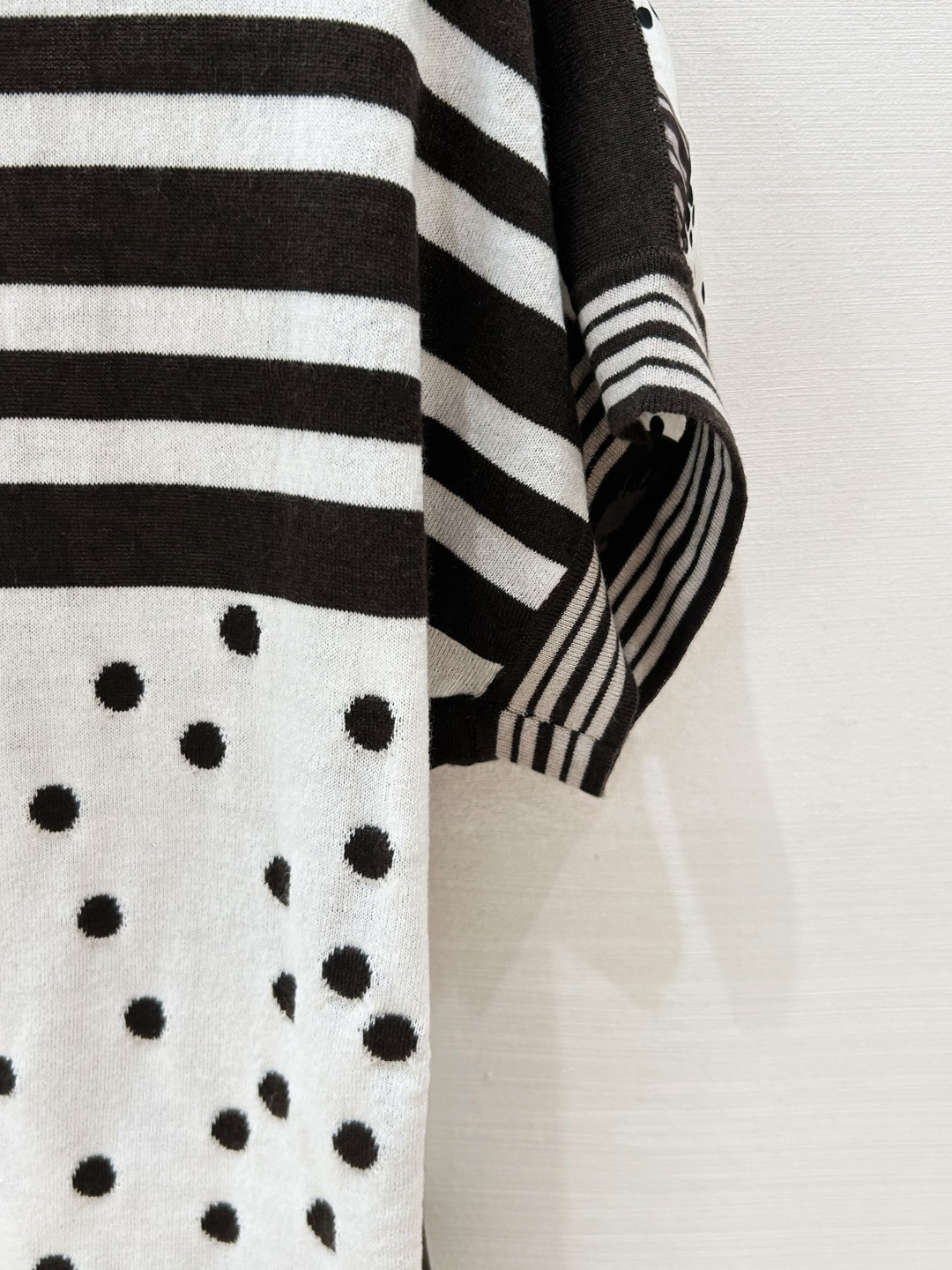 The back is made of stripe + polka dot jacquard,