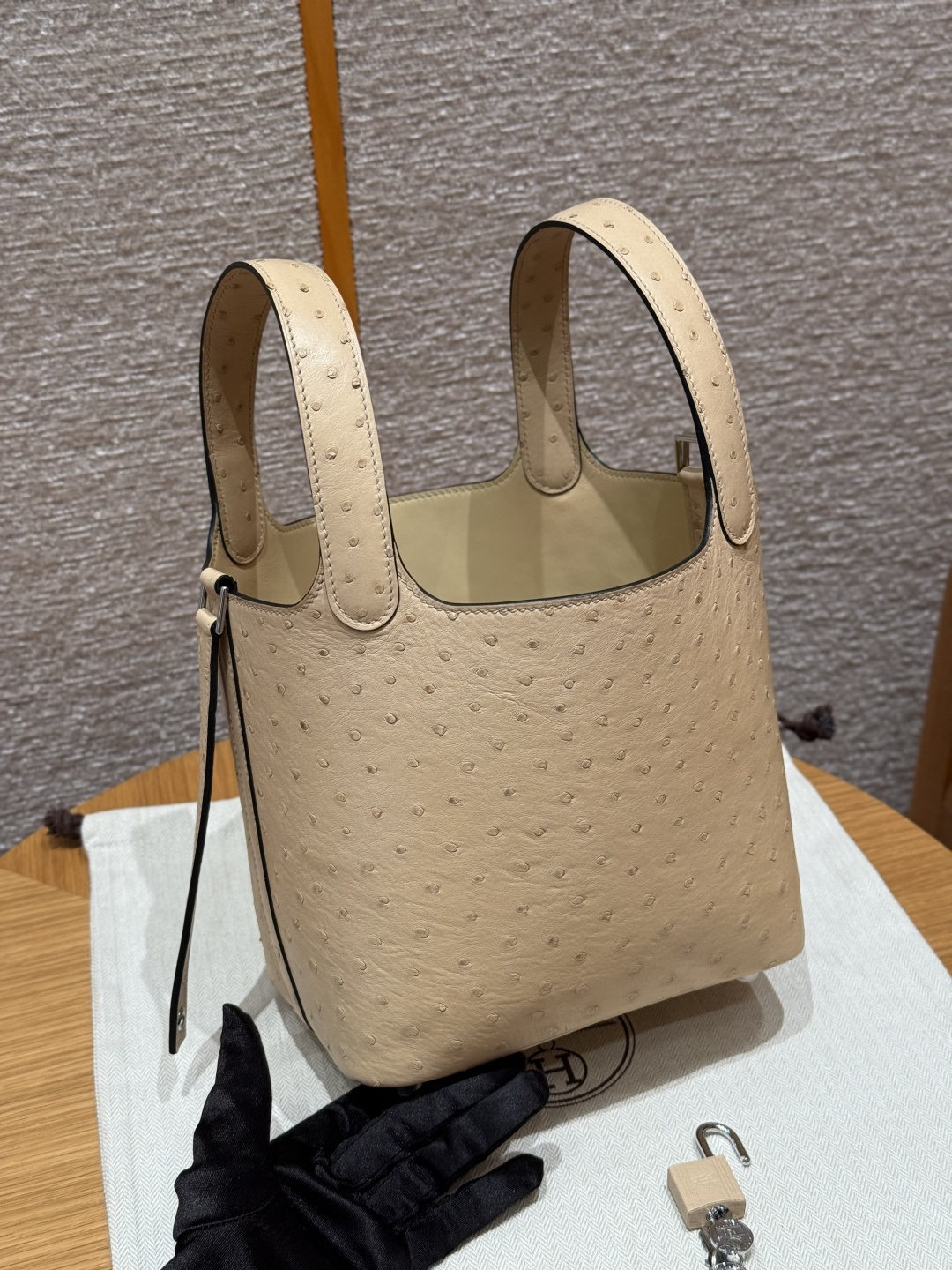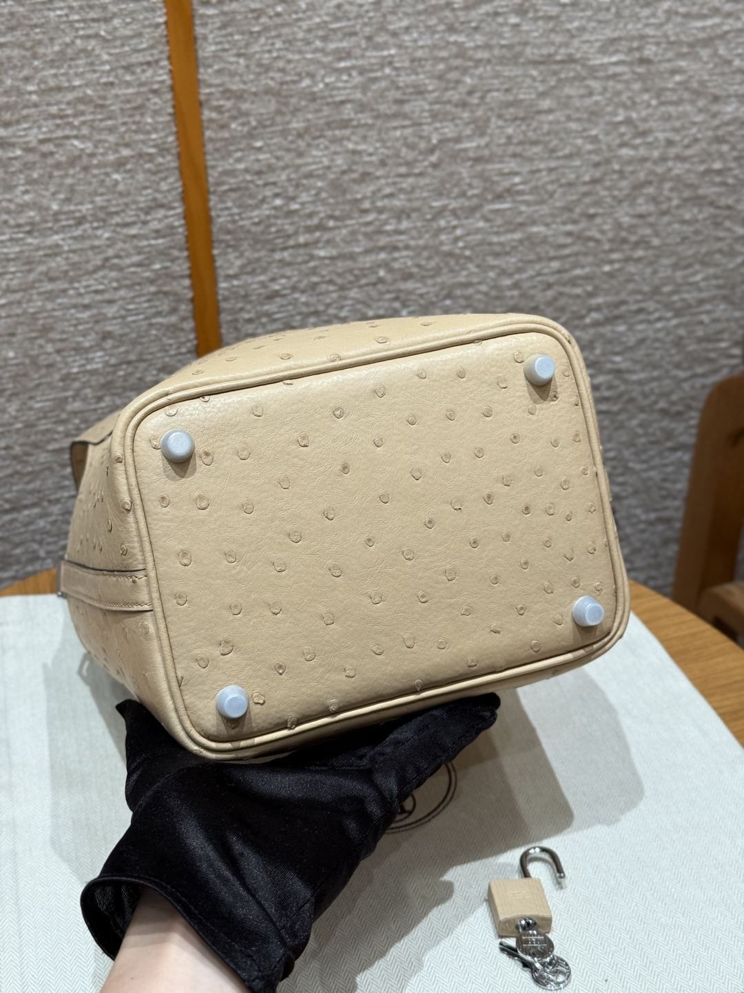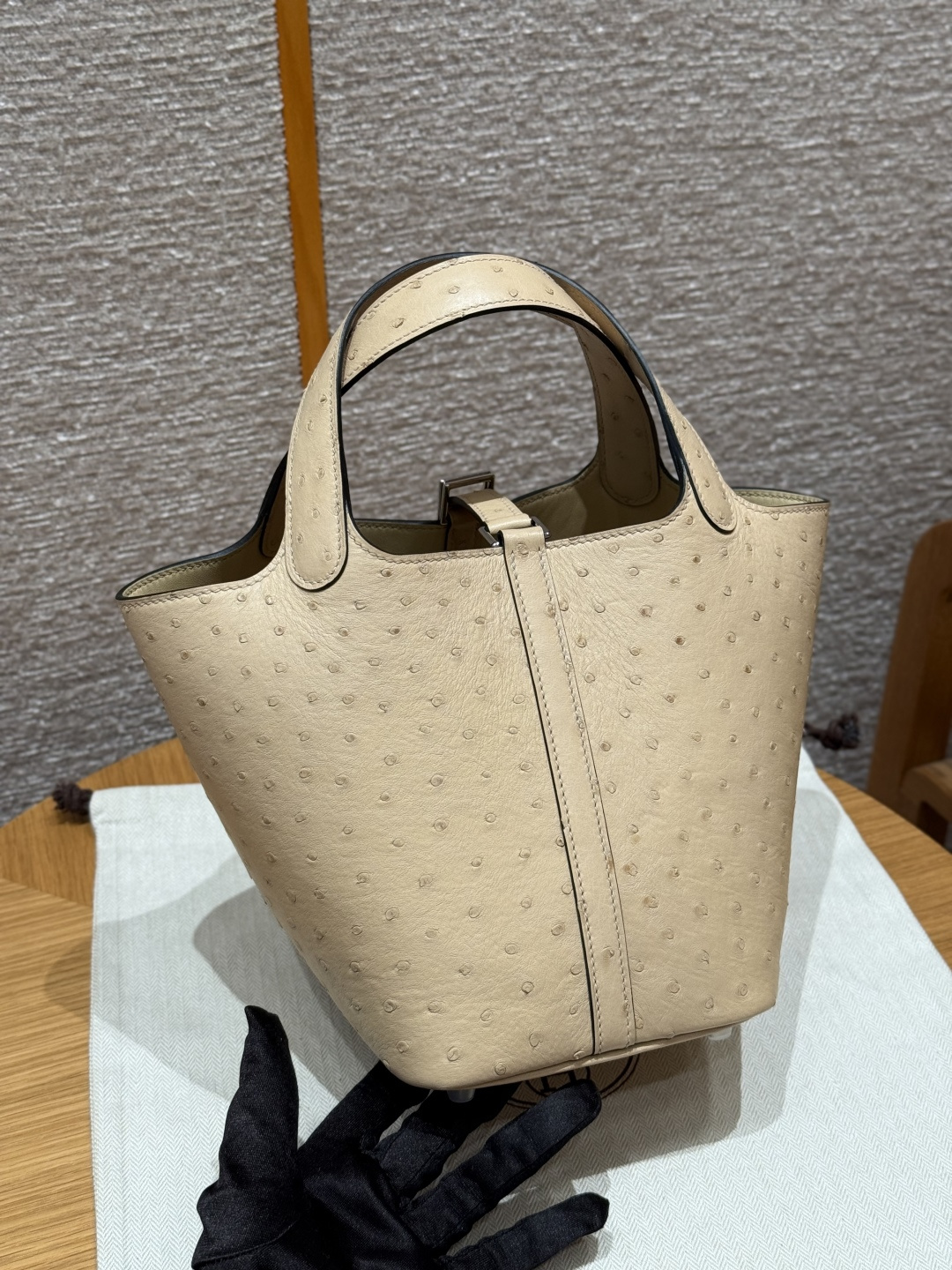 Picotin 18cm, Trench Grey, French imported KK ostrich leather, originally from South Africa, silver hardware, premium fully handcrafted exclusive customisation.