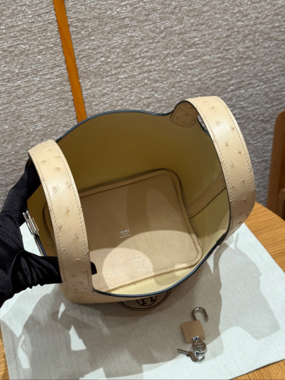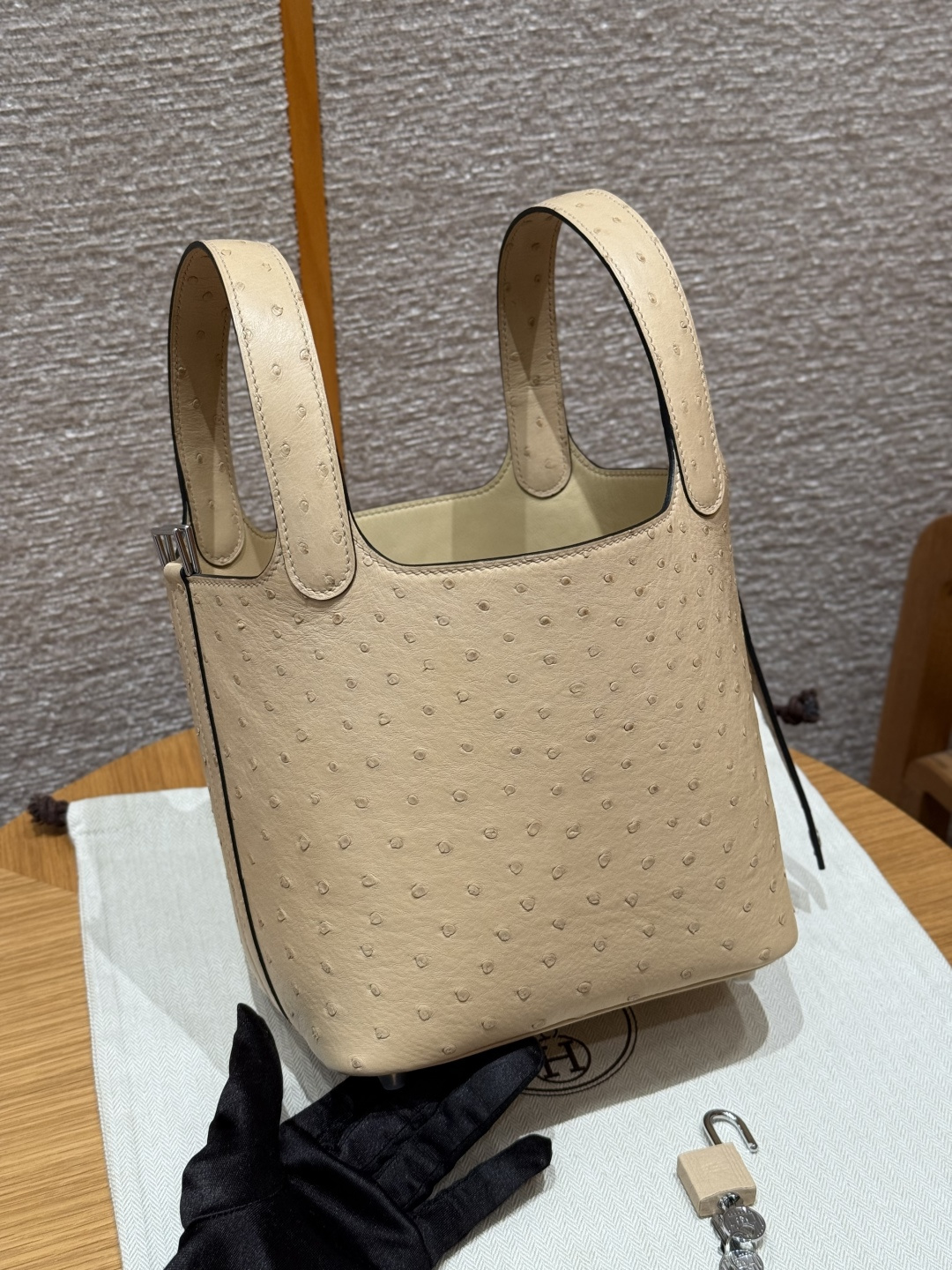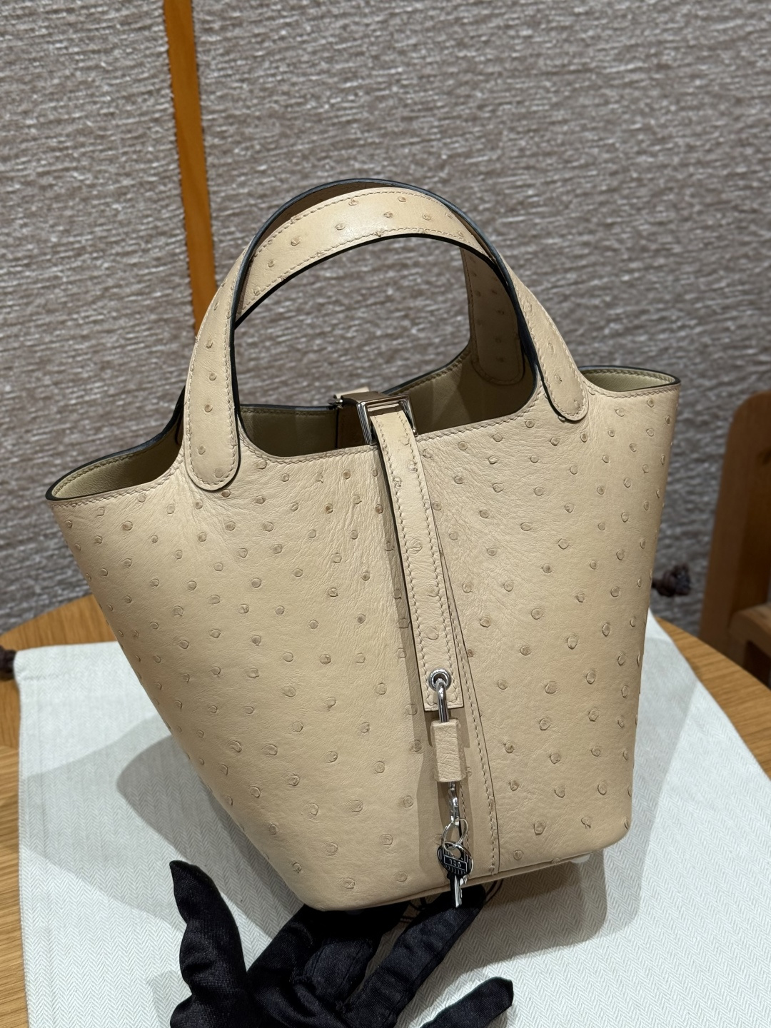 Picotin 18cm, Trench Grey, French imported KK ostrich leather, originally from South Africa, silver hardware, premium fully handcrafted exclusive customisation.