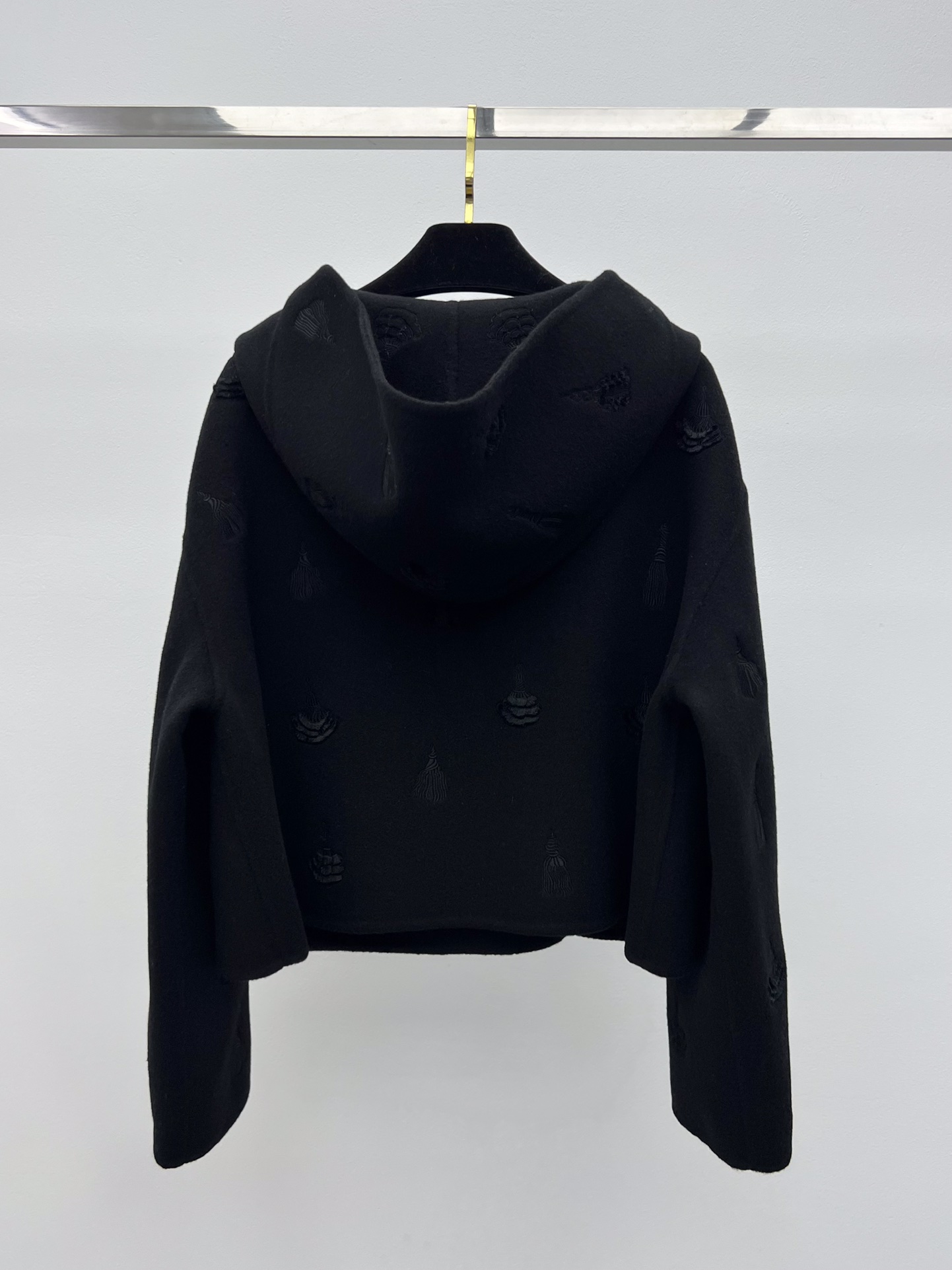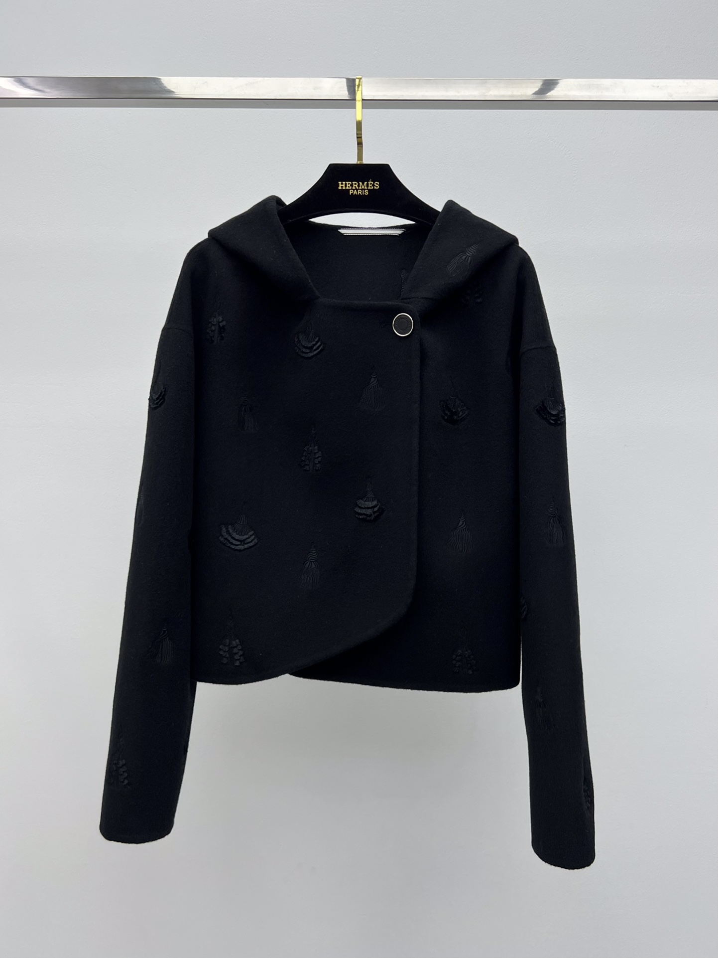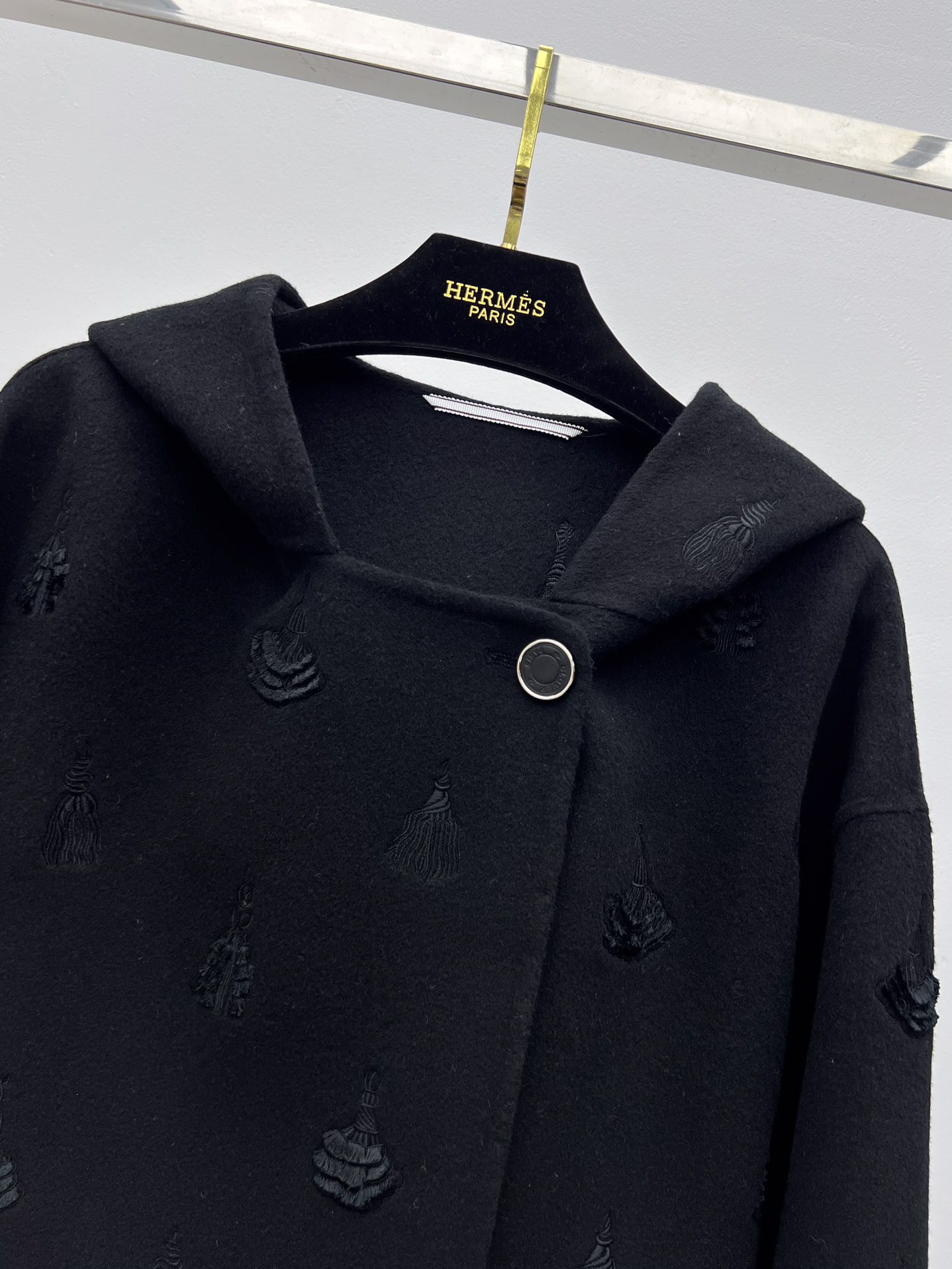 Original Title: Herme* Embroidered Hooded Cashmere Coat