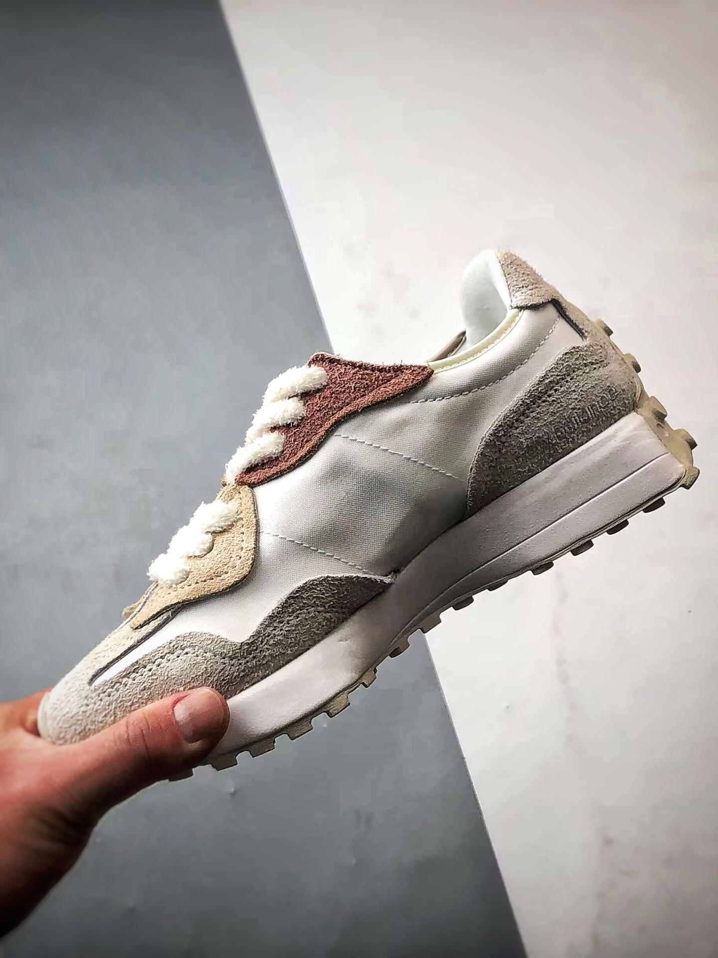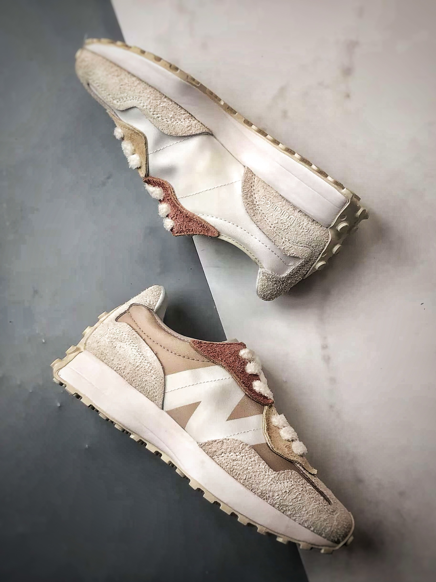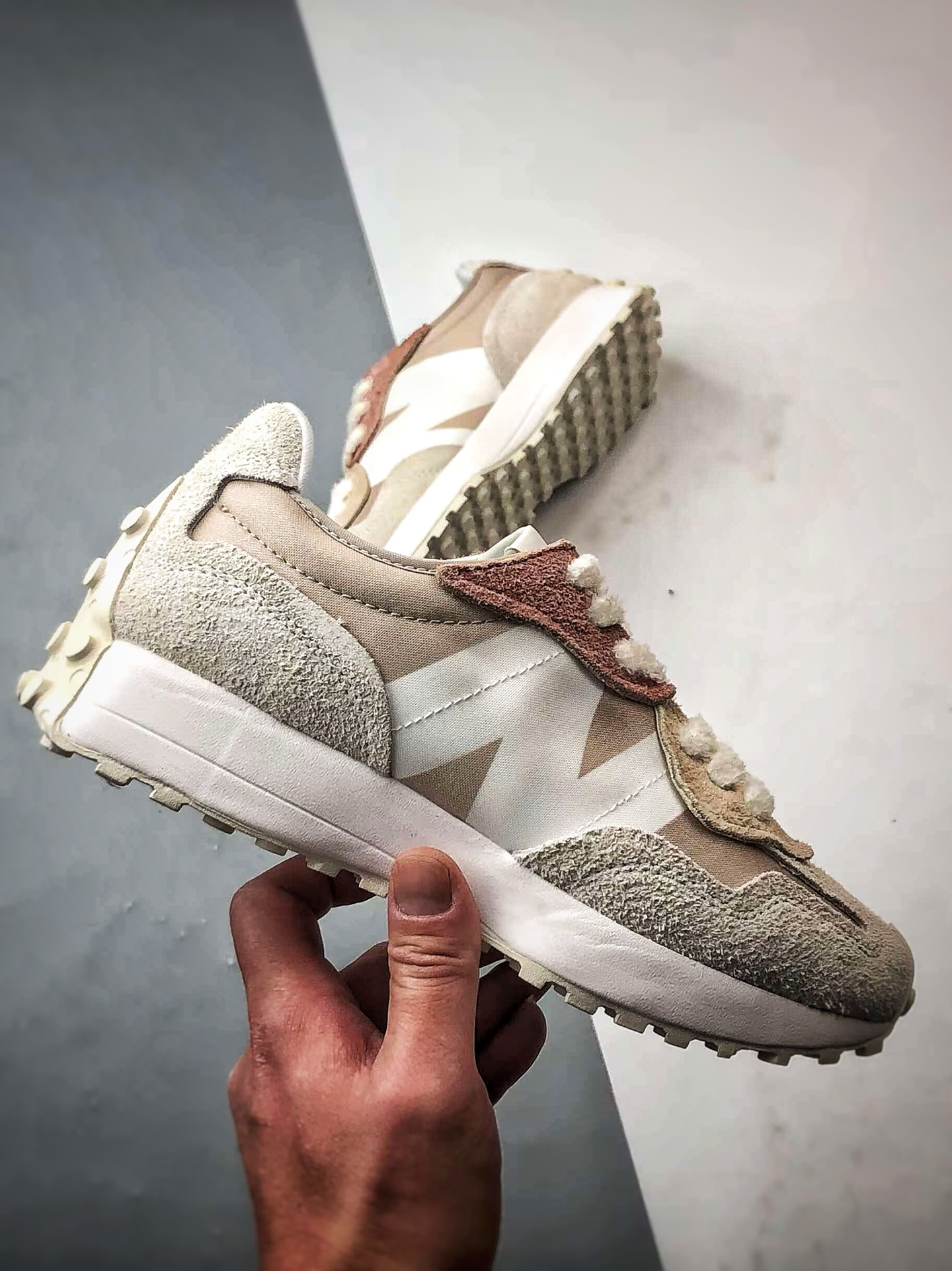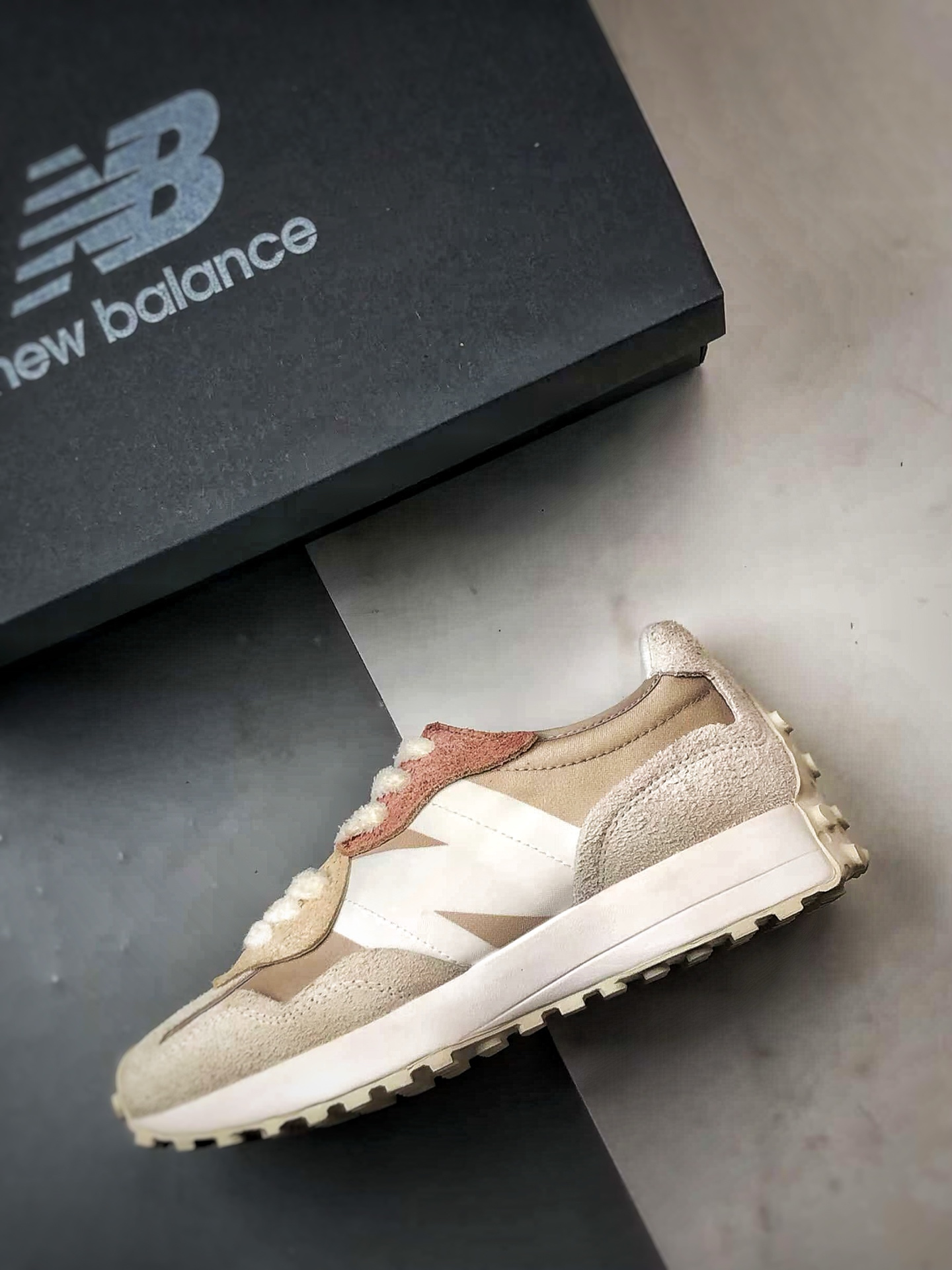 Retro casual sports running shoes, original shoe pattern, perfect details, made with nylon and suede pigskin material拼接构成#Midsole high-elastic PU material and full-spike anti-slip rubber outsole❗Italian street style from the 1970s❗NB New Balance's全新 New Balance 327 series, crafted with a purer retro design for a全新 look. The side features a deconstructed design with the N logo presented in a distressed embossed style, giving it a unique and innovative appearance. The use of suede and perforated leather creates a high-end nostalgic气质, balancing the shoe between luxurious fashion style and sporty atmosphere.