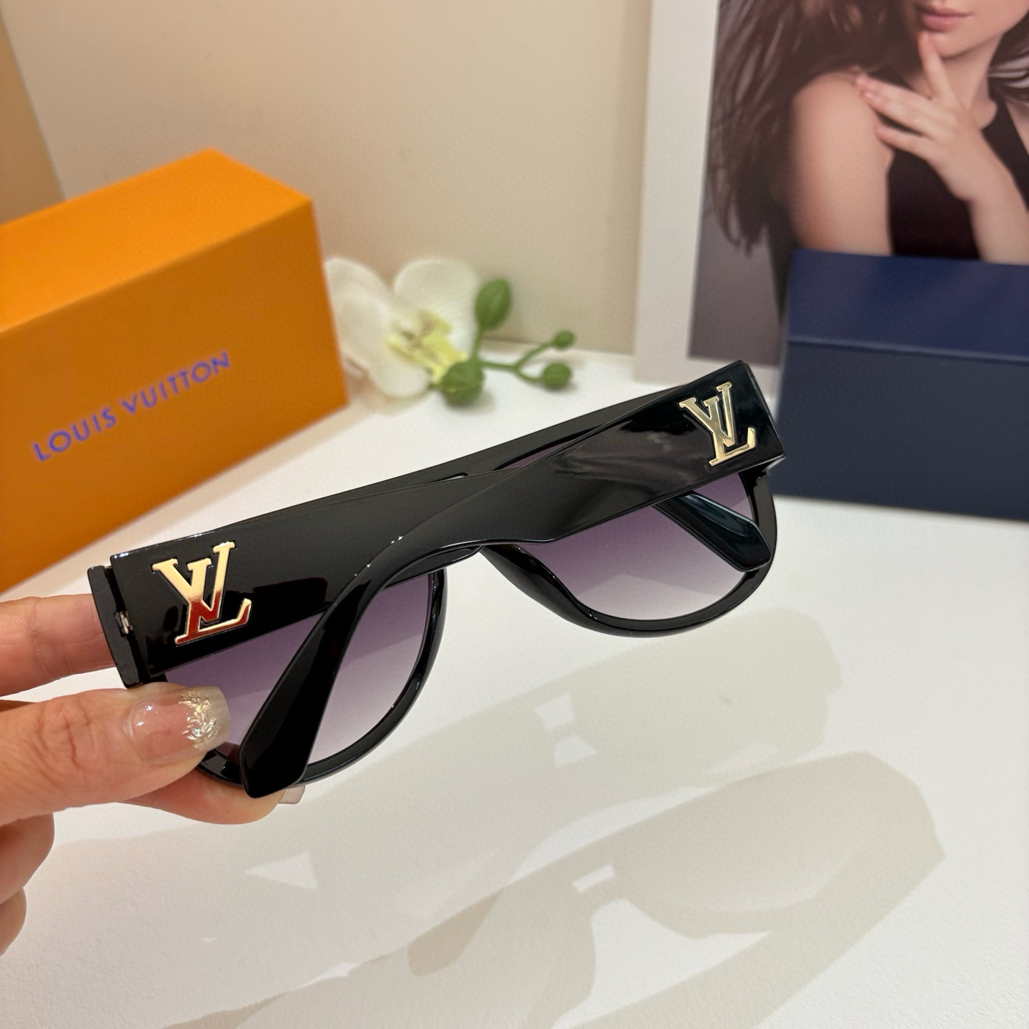 Louis Vuitton Korean-style sunglasses, trendy and versatile large-frame sunglasses.