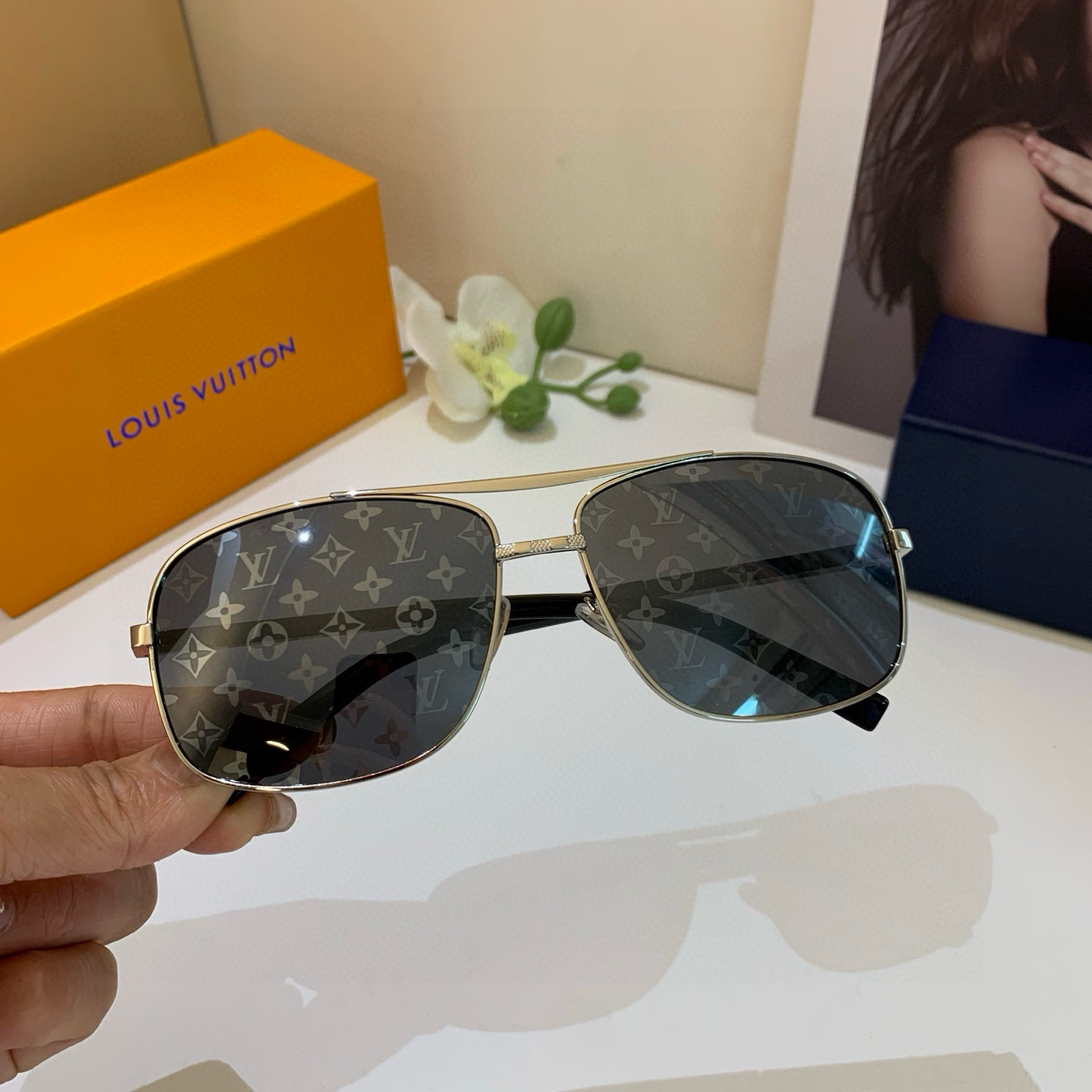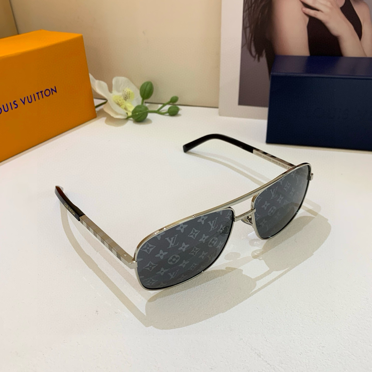 LV Louis Vuitton Fashion Trendy Men's Aviator Frame Sunglasses