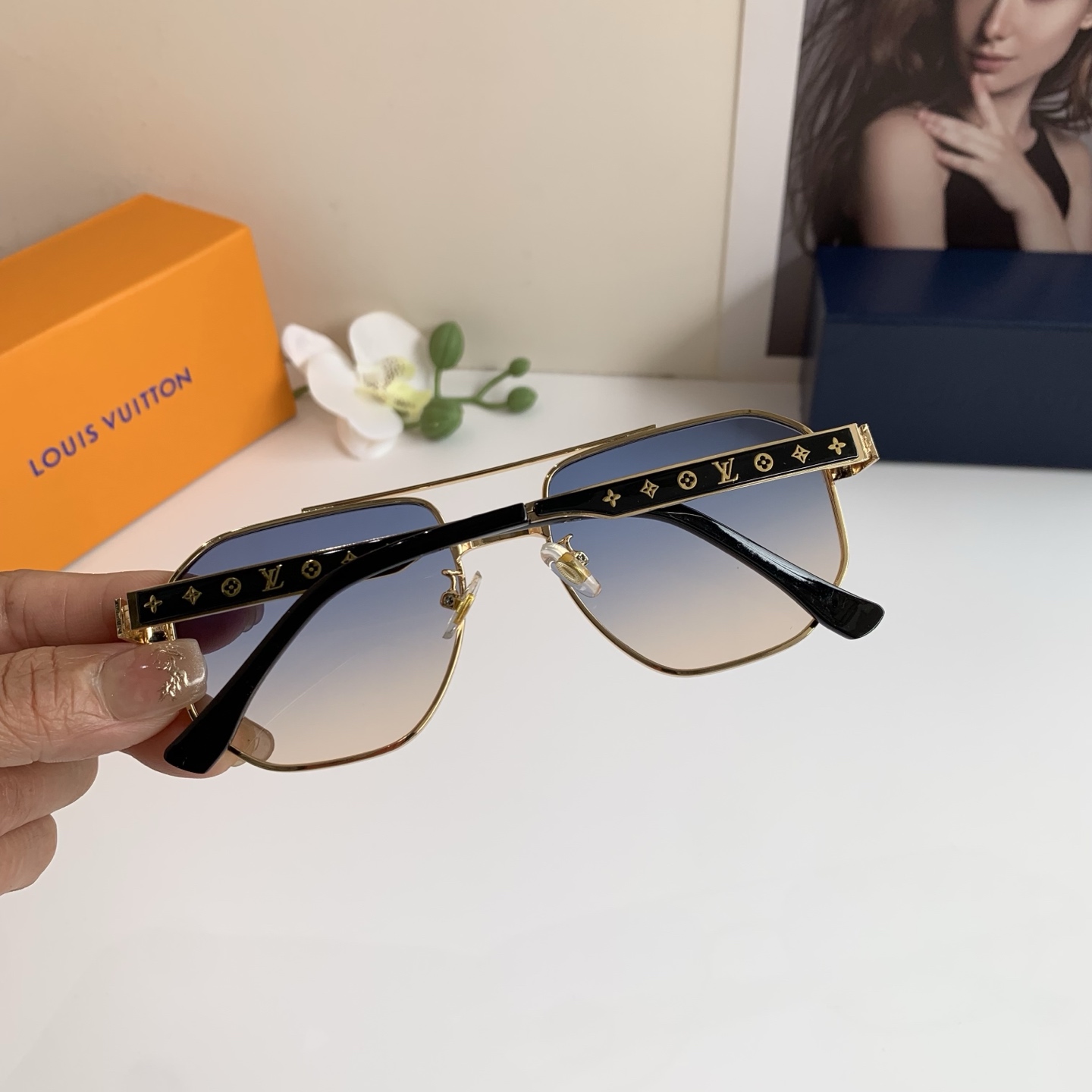 LV Louis Vuitton Classic Square Frame Unisex Sunglasses Outdoor Sunshade Sunglasses欧美 Fashion Trend Metal Frame Glasses!