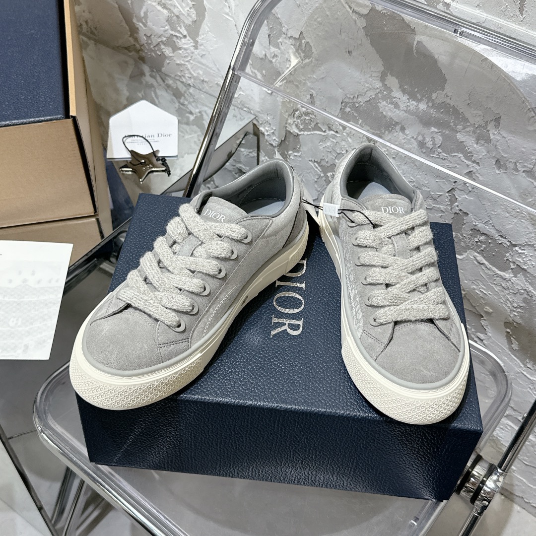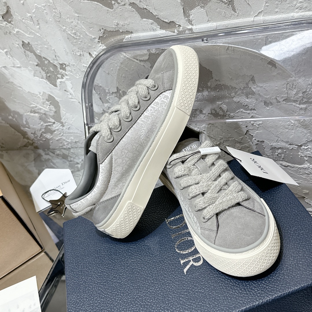 American style worn by many influencers, low saturation tones are super versatile. The minimalist style is hard not to love, a must-have for trendsetters, everyone needs a pair. Material: original custom top-grade full-grain leather, high-frequency wave/laser/jacquard embroidery/suede contrast color blocking, adorned with Oblique print, paired with suede leather panels. The unique padded tongue is adorned with the Dior embossed logo "Dior" and a vintage heel tab, instantly maximizing the stylish feel! Combines both texture and beauty! Original custom striped breathable mesh, dual-color TPU original sole, super exquisite small logo on the sole edge (detail-oriented people will love it).