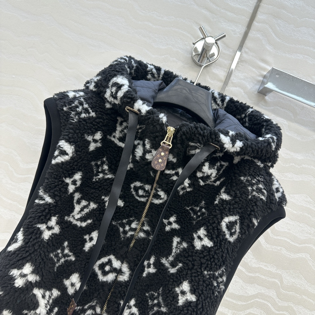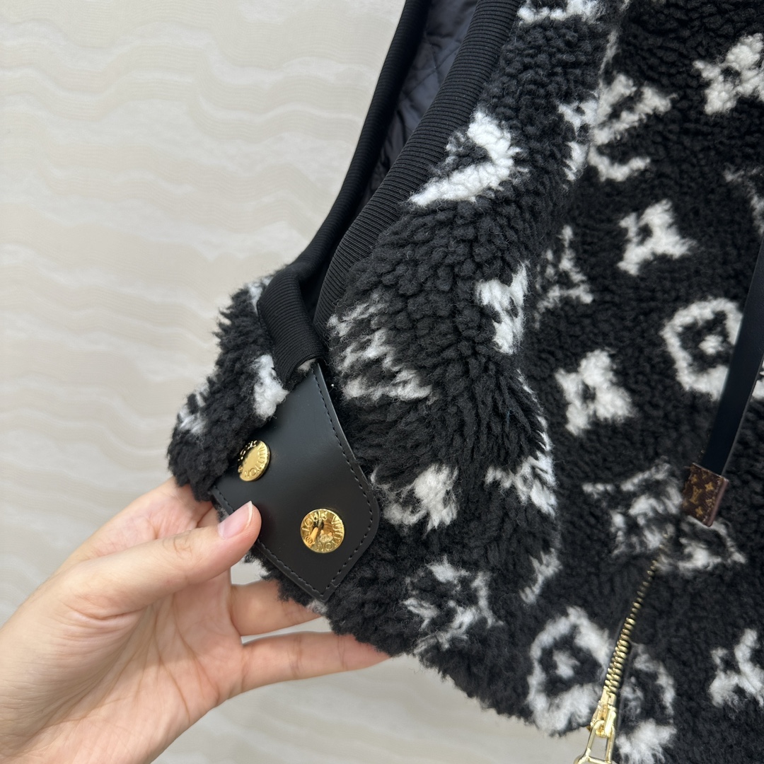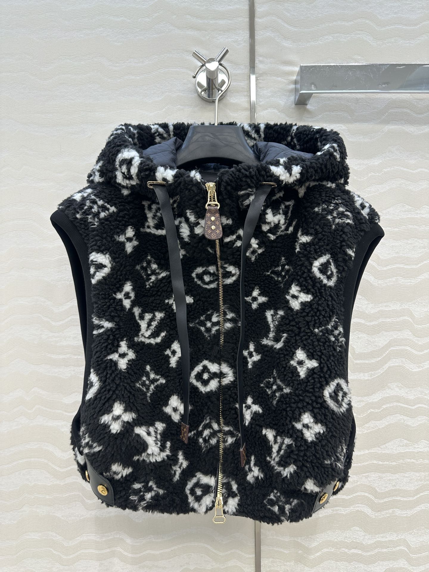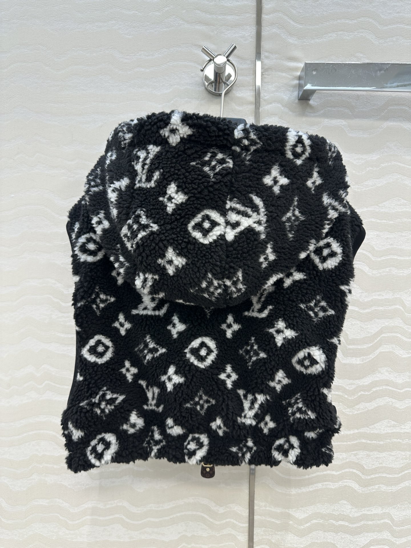 Original Title: Exclusive Launch! Highly Recommended Monogram Teddy Bear Vest Jacket! Adorable Lamb Fleece Hooded Zipper Jacket! Custom Monogram Logo! Eco-Friendly Artificial Fur with Cotton Lining for Warmth and Comfort! Youthful, Girly, Stylish, and Chic! Hooded Short Style, Classic and Versatile for Everyone. Check the Details for Craftsmanship Quality. Two Colors and Three Sizes in Stock, Size S: Size 36: Shoulder Width 47, Bust Unlimited, Length 40.