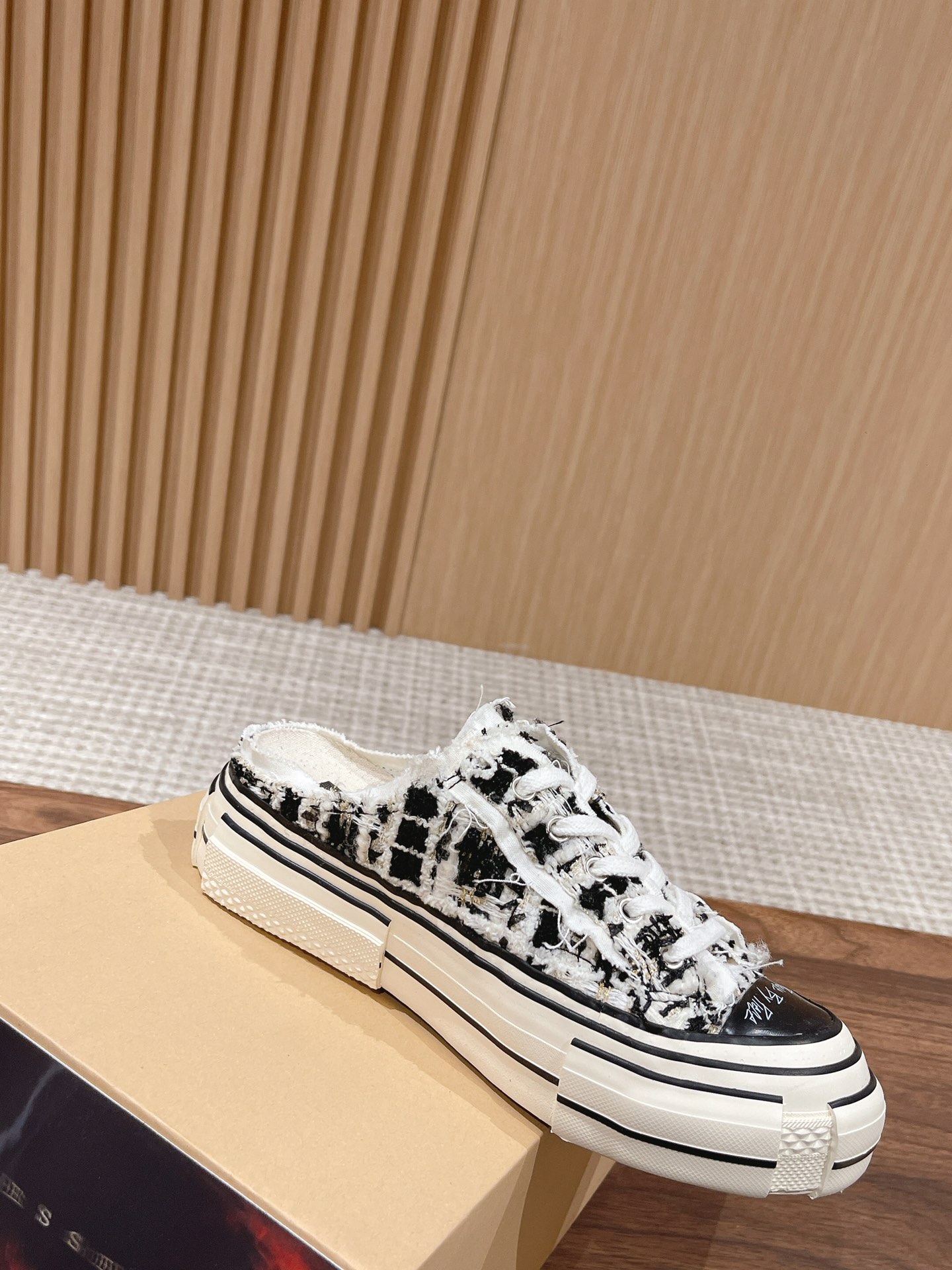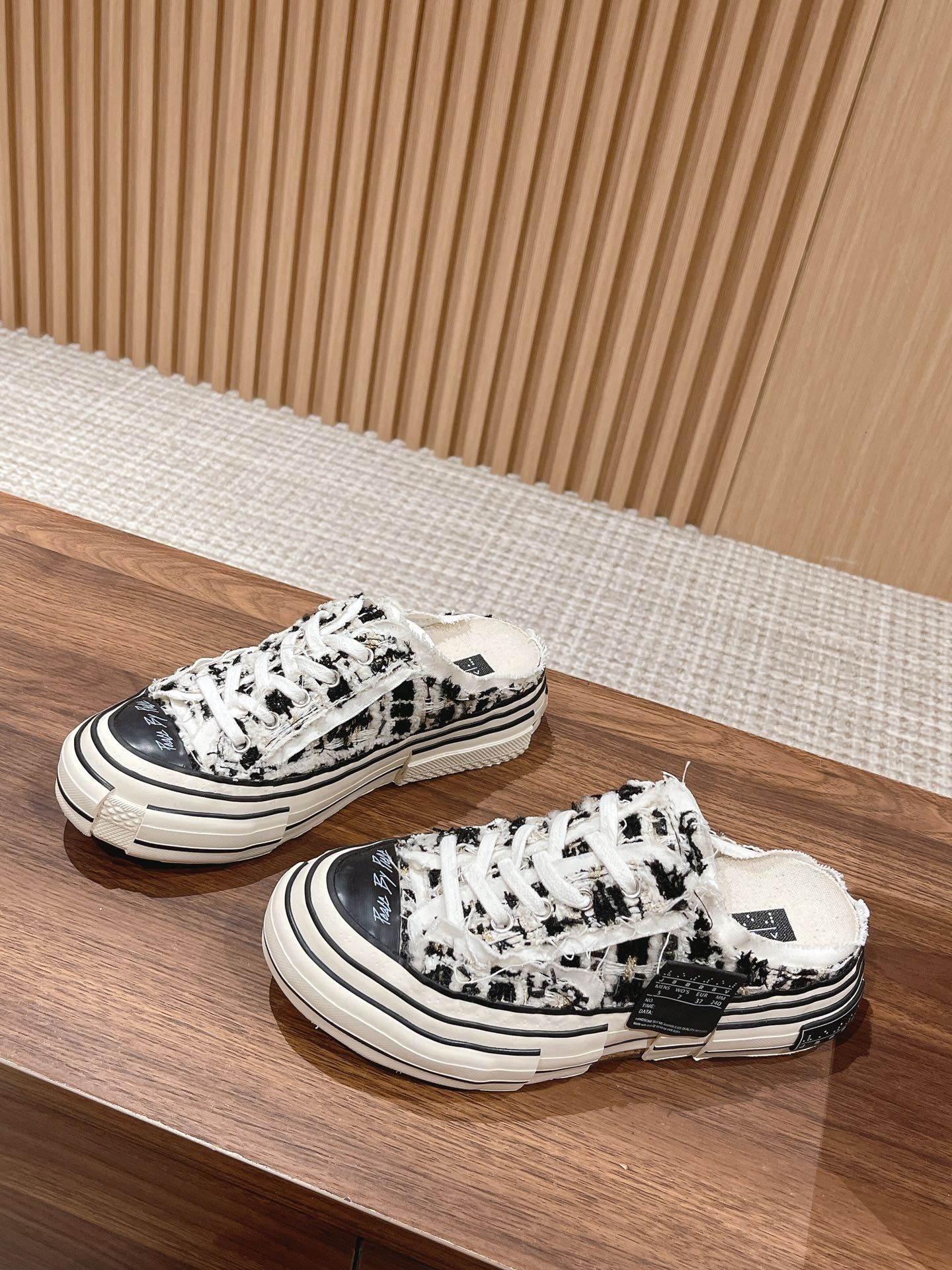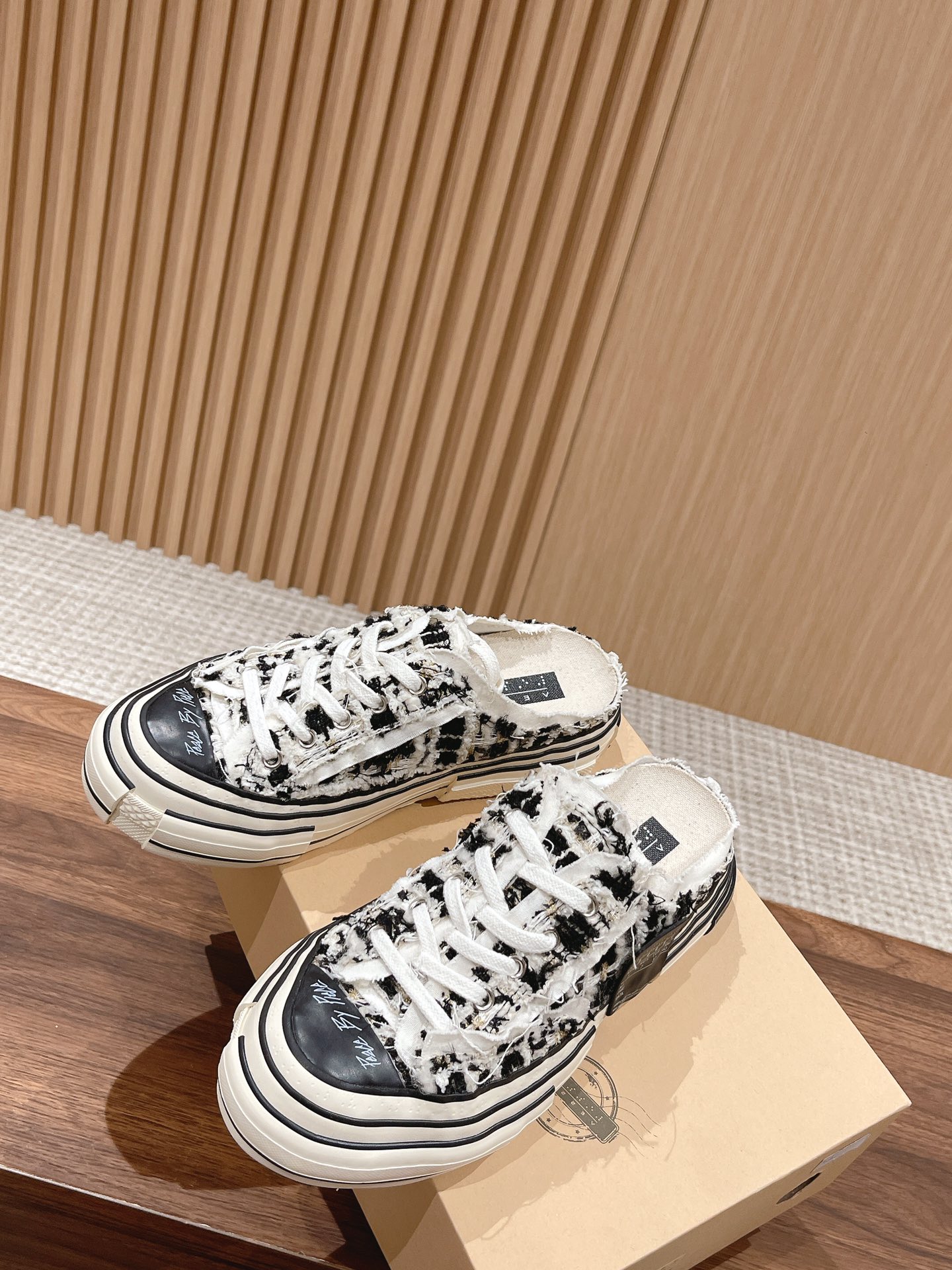 [Top Version] #Women's Only Dongguan-made | xVESSEL Certified 💯 Vanness Wu x Vessel Beggar-style Vulcanized Canvas Couple Shoes —— This canvas shoe features a cutting-edge design, combining three pairs into one, with frayed detailing on the laces and tongue. The beggar series 𝙭𝙑𝙀𝙎𝙎𝙀𝙇 claims to be the world's first soft vulcanized shoe, full of artistic and retro vibes. At the same time, the shoe's design carries a strong sense of deconstruction and reconstruction, which is why it looks like a canvas shoe yet exudes a sci-fi and spatial feel. The midsole is filled with cork, perfectly blending traditional handmade leather shoe craftsmanship with vulcanized shoe techniques. The upper design also follows the deconstruction and reconstruction style, taking coolness to the extreme.