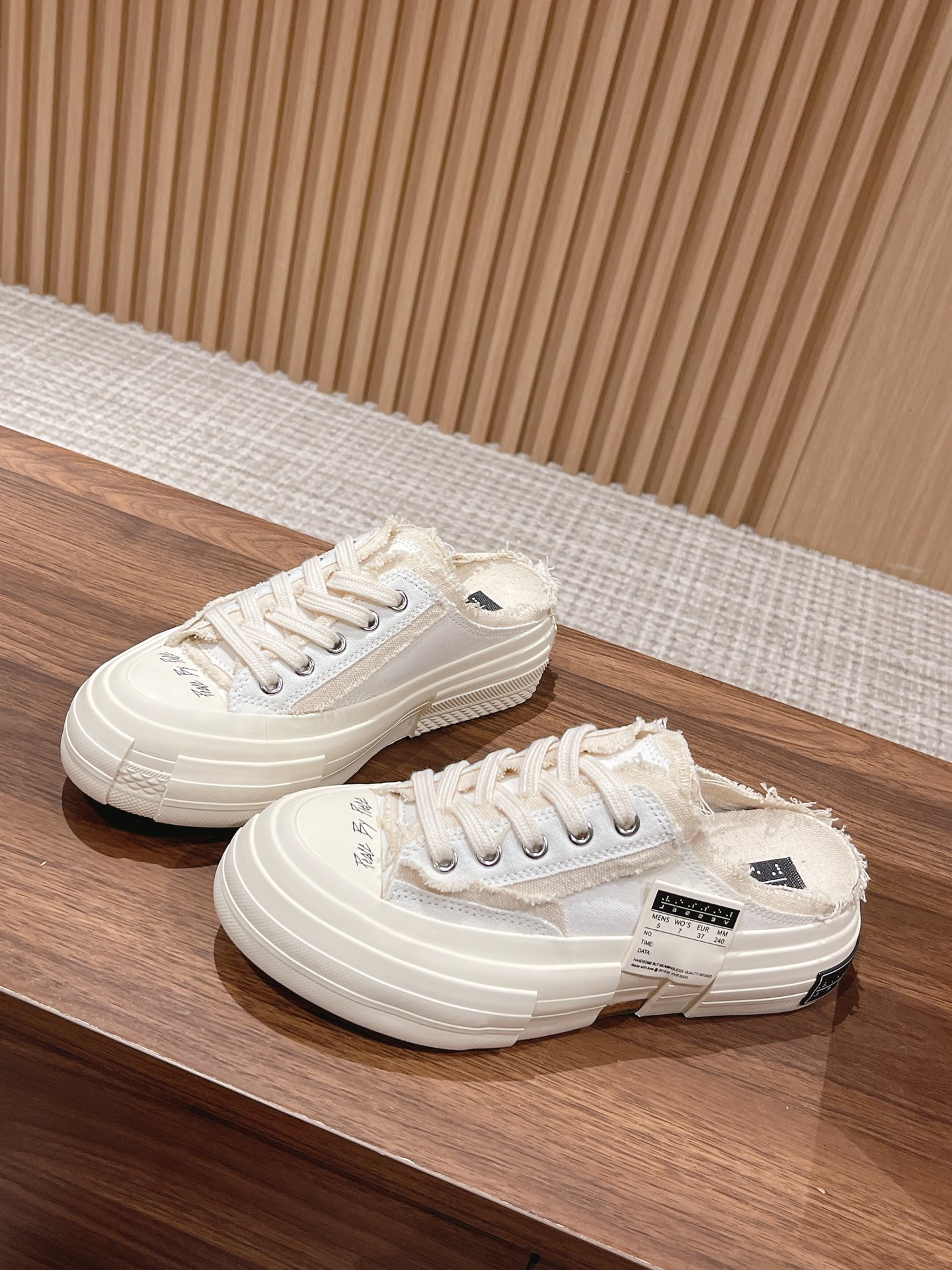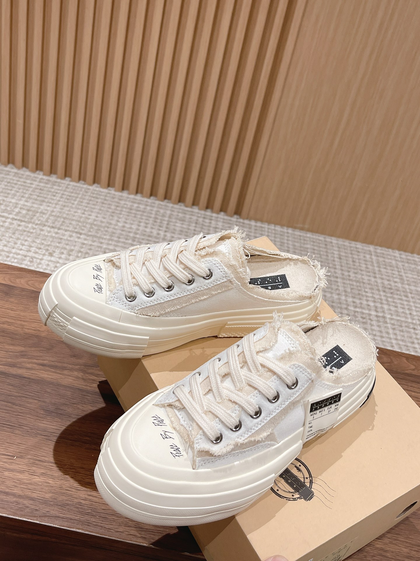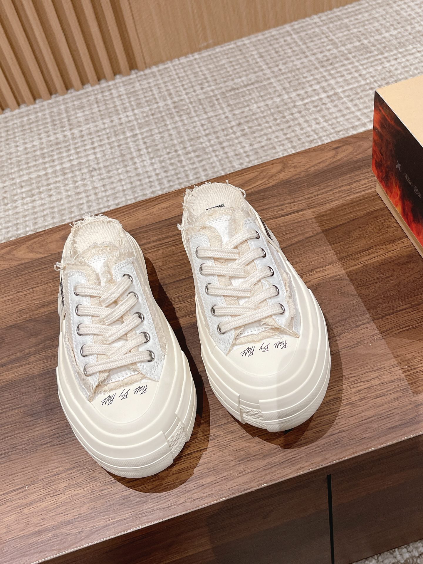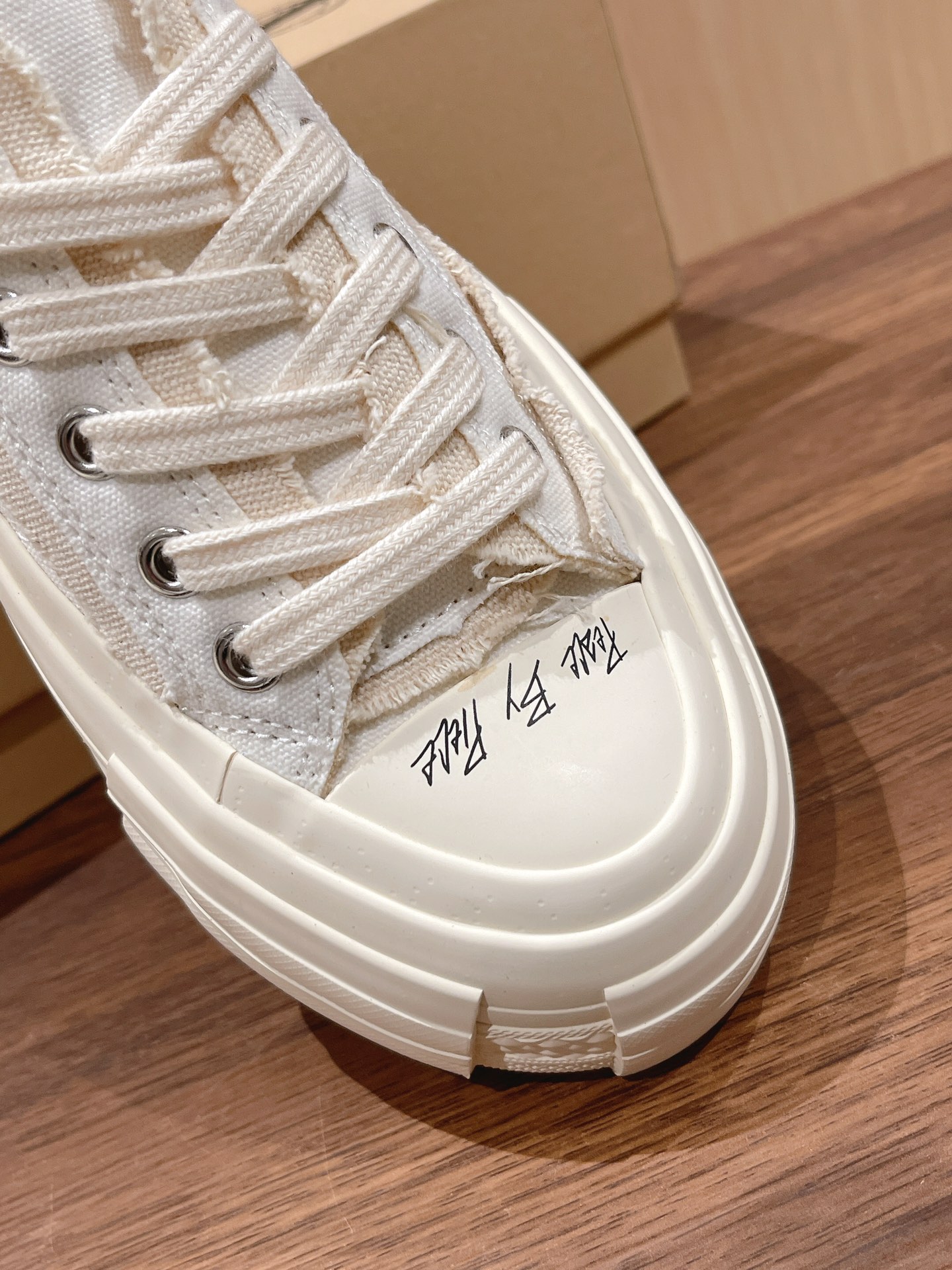 [Top Version] Guan-produced | xVESSEL Certified 💯 Vanness Wu x Vessel Beggar-style Vulcanized Canvas Shoes Couple Edition —— This canvas shoe features a cutting-edge design, combining three pairs into one, with frayed detailing on the laces and tongue. The Beggar series 𝙭𝙑𝙀𝙎𝙎𝙀𝙇 claims to be the world's first cork vulcanized shoe, full of artistic and retro vibes. At the same time, the shoe's design carries a strong sense of deconstruction and reconstruction, which is why it looks like a canvas shoe yet feels very sci-fi and spatial. The midsole is filled with cork, perfectly blending traditional handmade leather shoe craftsmanship with vulcanized shoe techniques. The upper design also follows the deconstruction and reconstruction style, taking coolness to the extreme.