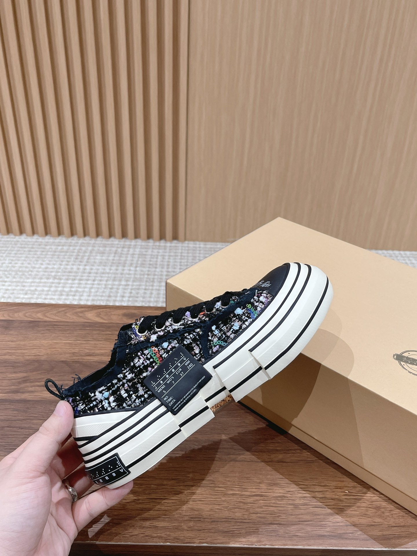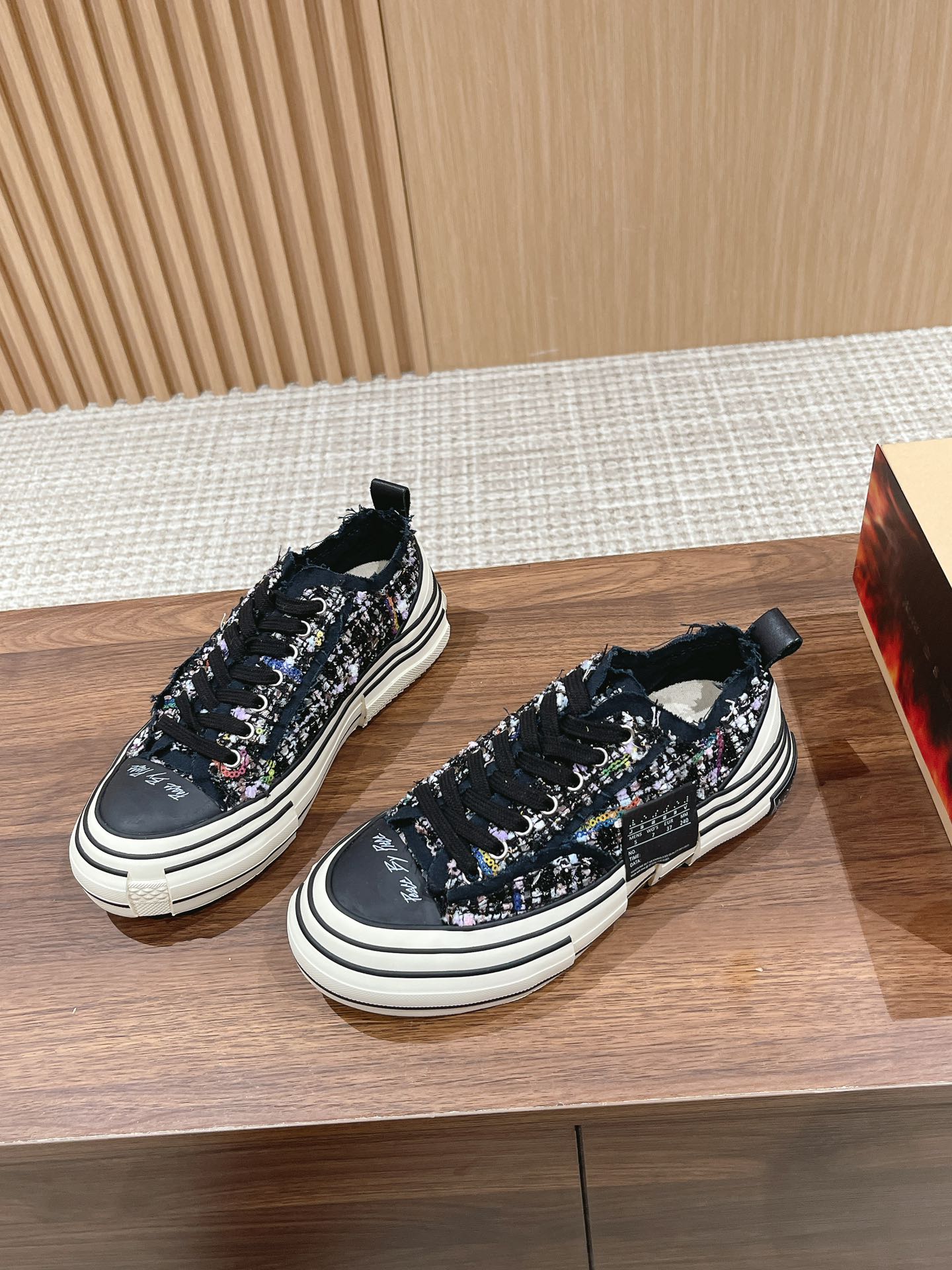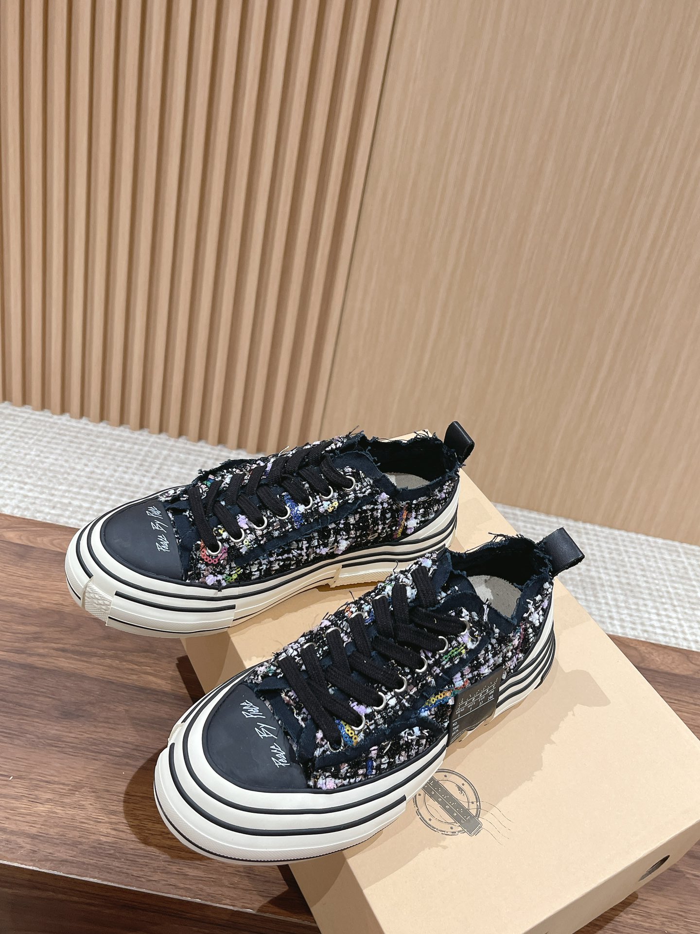 [Top Version] #Women's Only Dongguan-made | xVESSEL Certified Wu Jianhao x Vessel Hobbit Vulcanized Canvas Shoes Couple Style —— This canvas shoe features a cutting-edge design, combining three pairs into one, with frayed detailing on the laces and tongue. The Hobbit series 𝙭𝙑𝙀𝙎𝙎𝙀𝙇 claims to be the world's first cork vulcanized shoe, full of artistic and retro vibes. At the same time, the shoe's design carries a strong sense of deconstruction and reconstruction, which is why it looks like a canvas shoe yet feels very sci-fi and spatial. The midsole is filled with cork, perfectly blending traditional handmade leather shoe craftsmanship with vulcanized shoe techniques. The upper design also follows the deconstructed and reassembled style, taking coolness to the extreme.