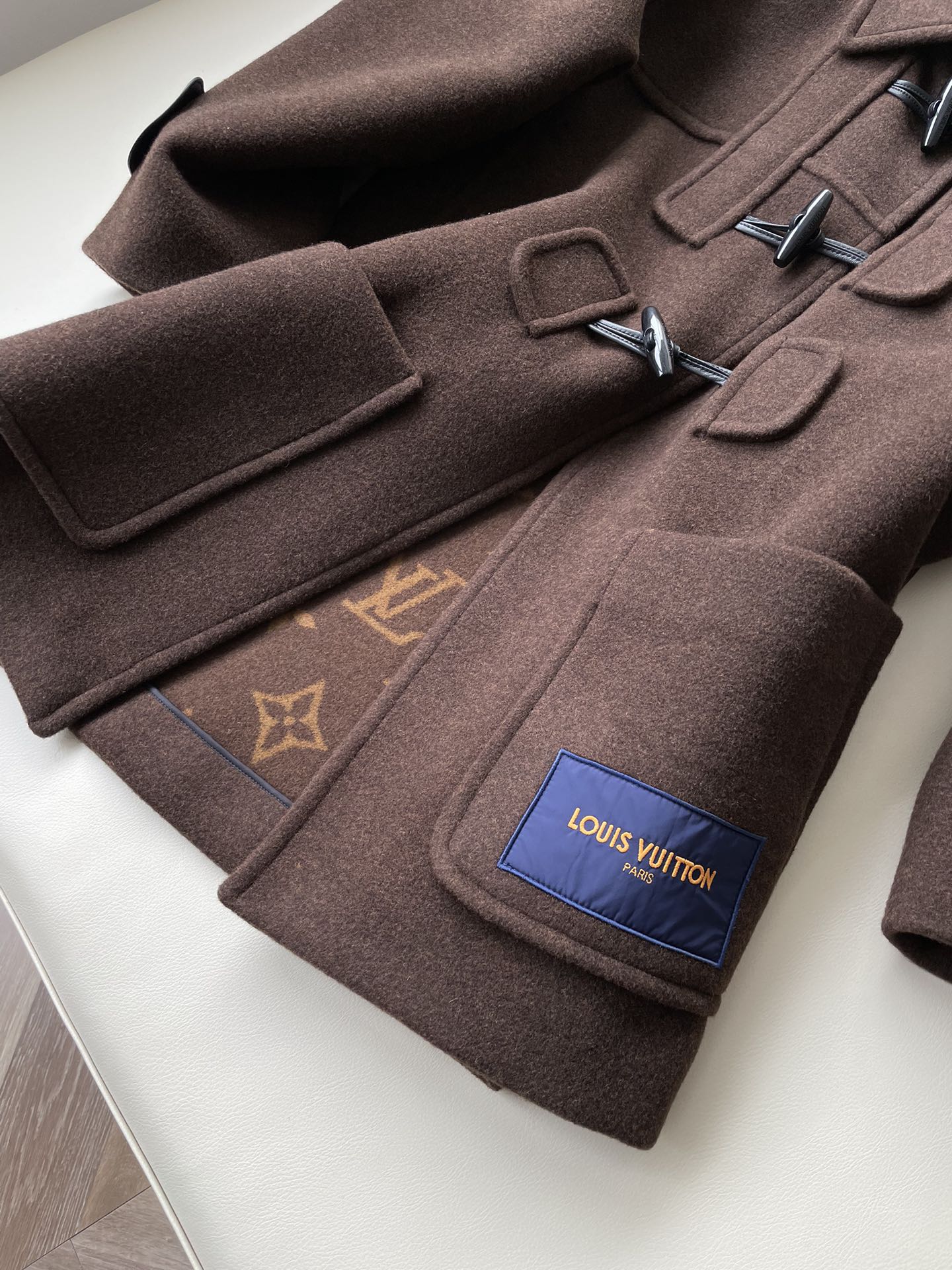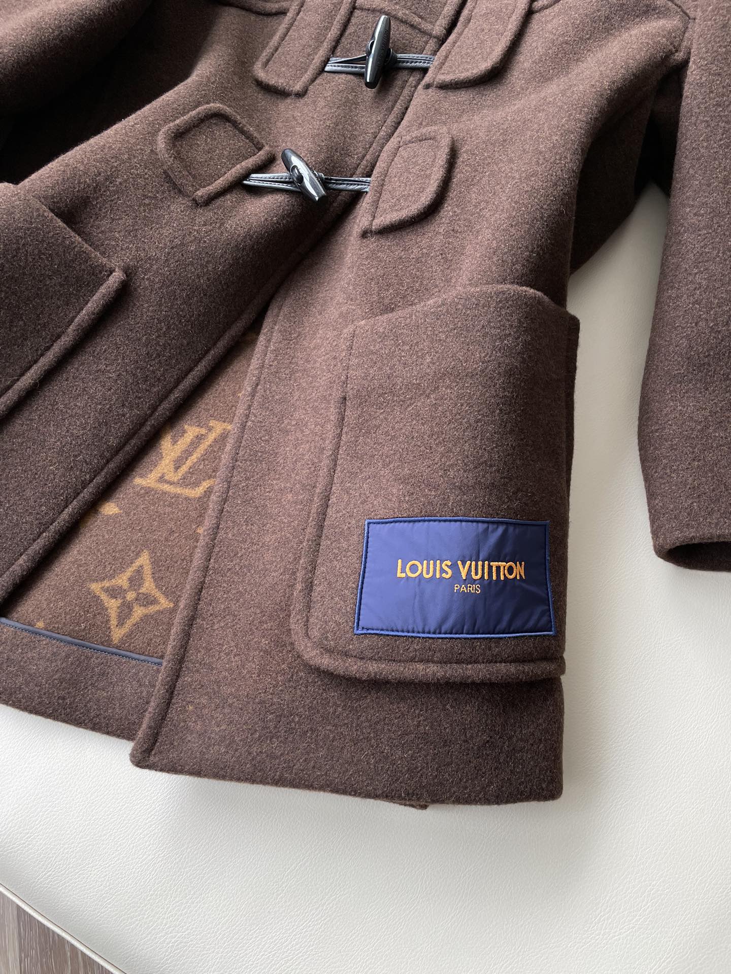 LV's popular horn-button coat across the internet