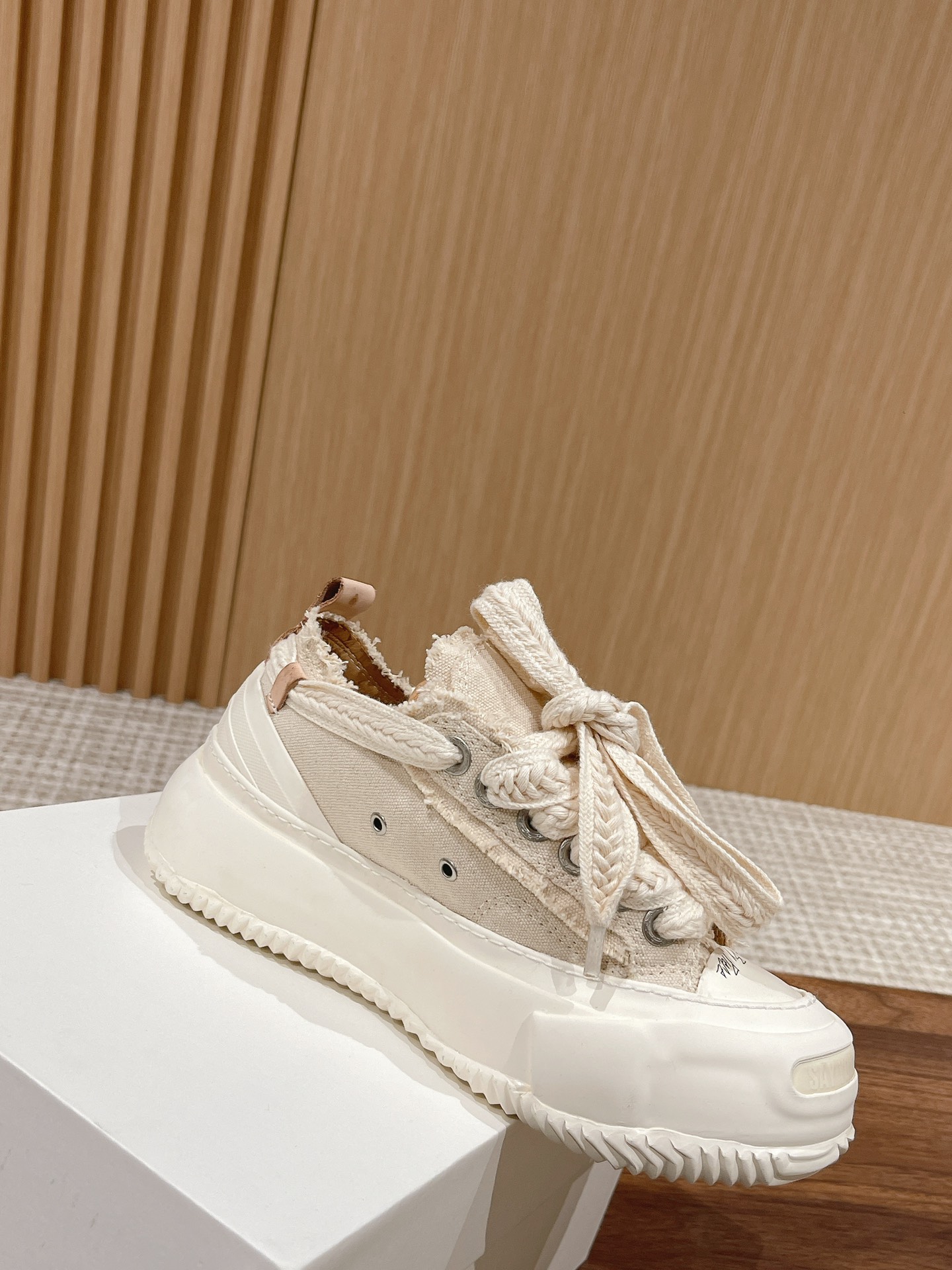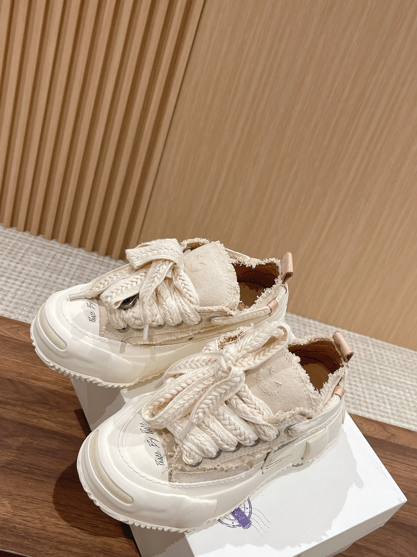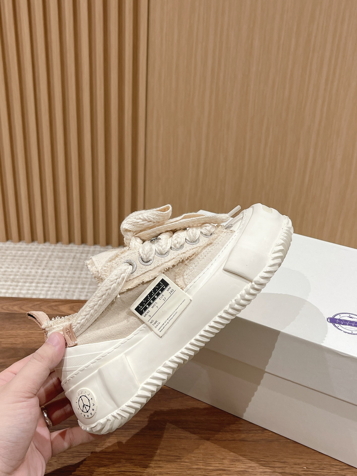 [Top Tier Version] Guan-produced | Reseller-level Vanness Wu xVESSEL SMILENCE Marshmallow #Hidden Style Low-Top Replaceable Smiley Face Thick Sole Casual Canvas Shoes. Upper is washed canvas, lining is cowhide. Custom molded combination sole. Deconstructed style, smiley face embroidery, large pin accessory, photosensitive letters on toe cap. Full of details, looks incredibly good on feet, increases height and makes legs look slimmer.