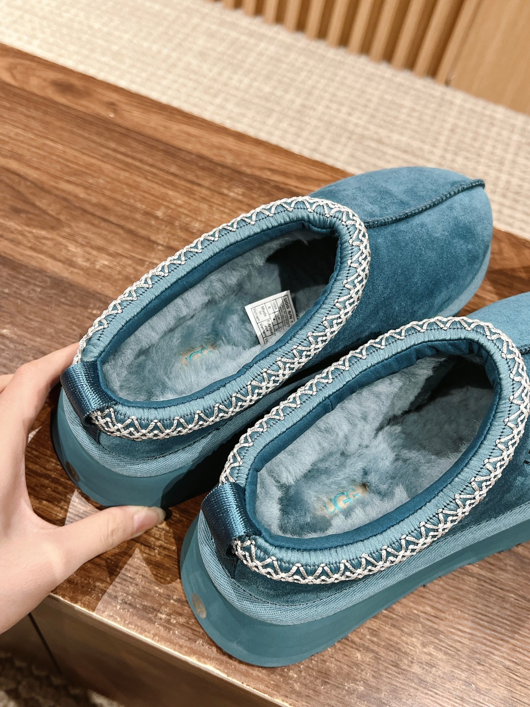 [Top Version] UGG Tazz #Autumn Winter New Product Tazz Platform Slippers. New furry slippers feature ethnic style woven embroidery, retro and fashionable. Super comfortable slip-on design. Worn by many celebrities. No need to say more about how popular it is on Instagram and Xiaohongshu. Always out of stock when the season comes! Luxuriously thick and plush integrated fur. PVC foam ultra-light sole, sole thickness about 4cm. Size: 35-39 (40 custom-made, no returns or exchanges).