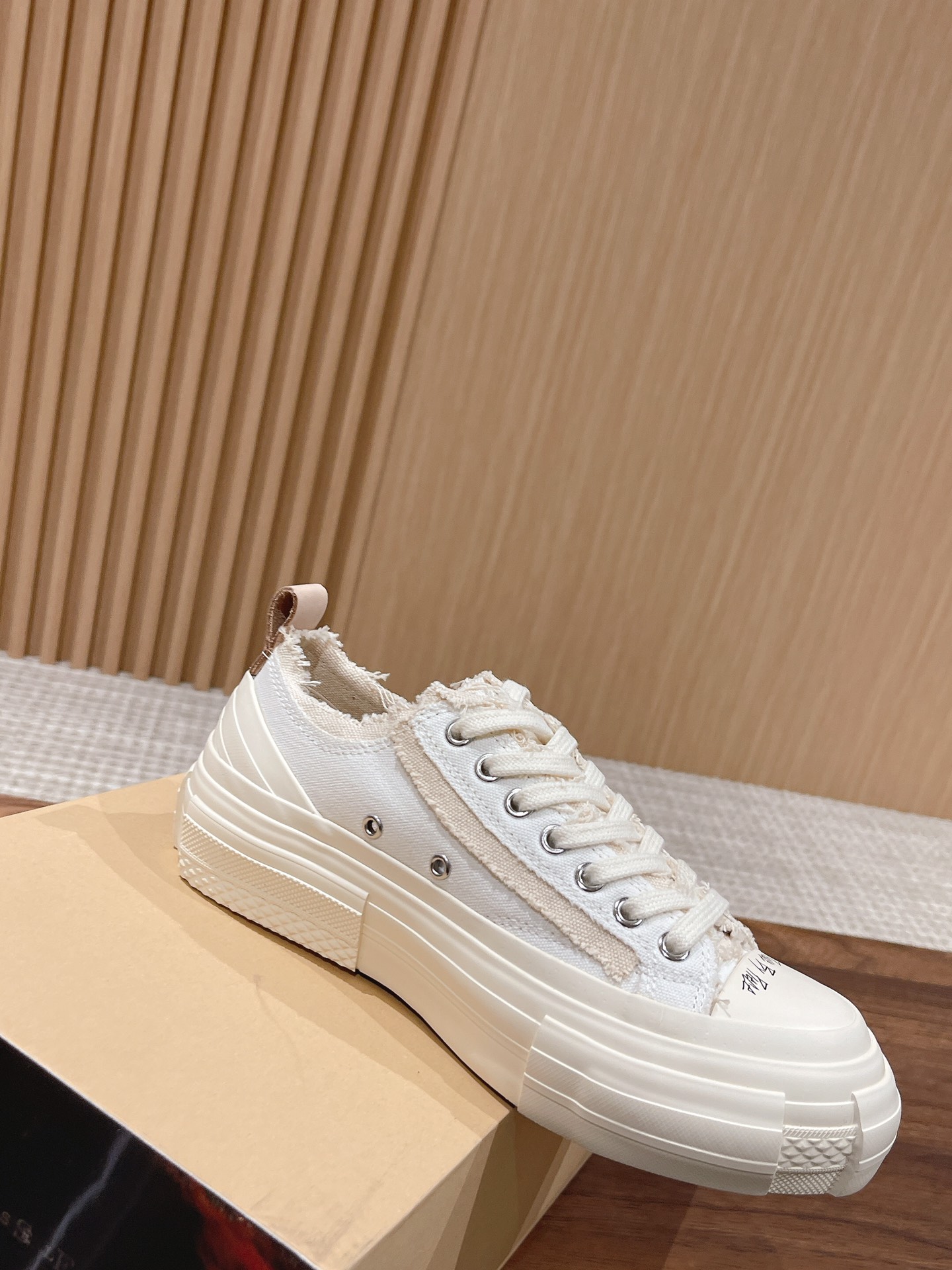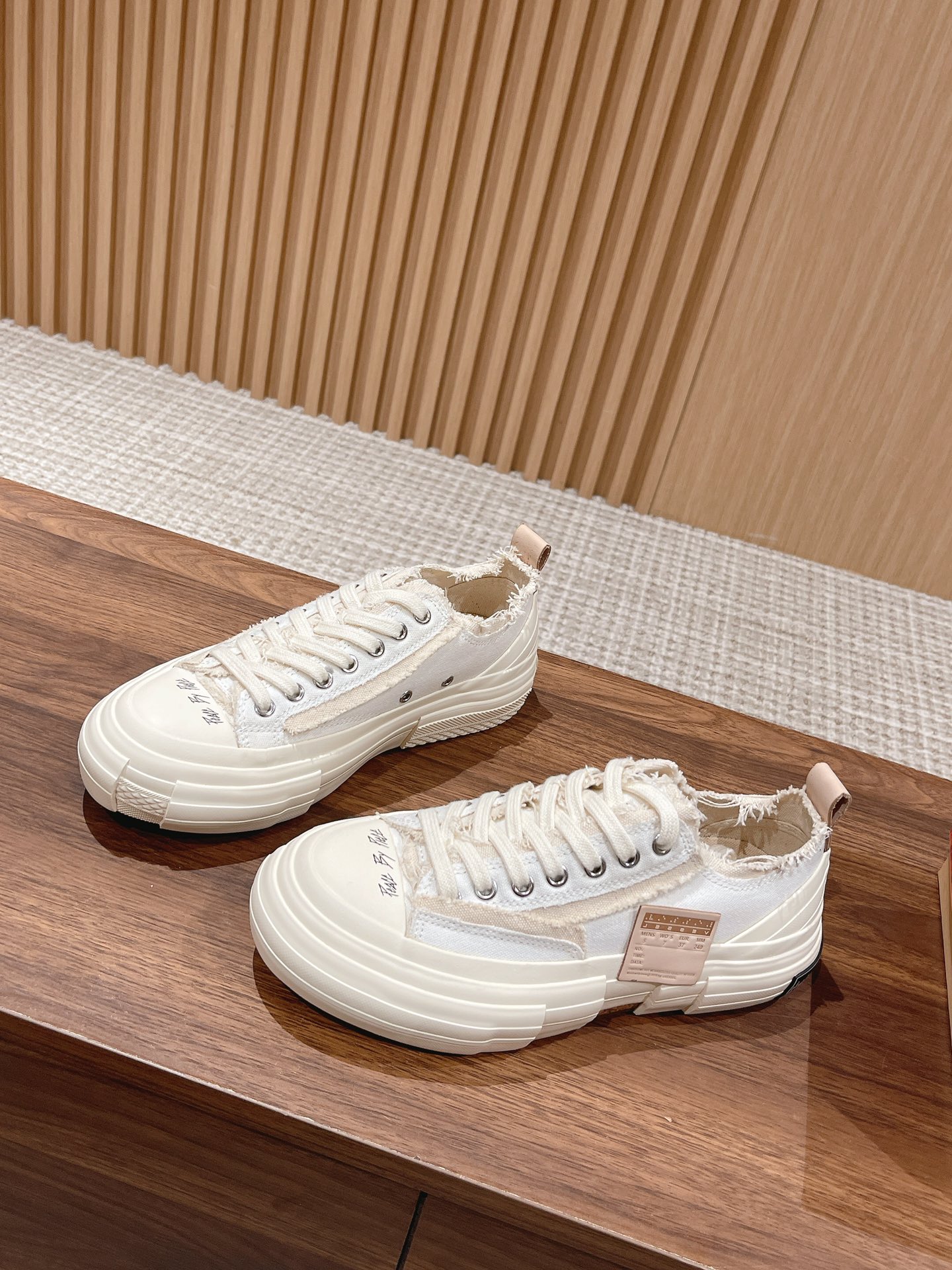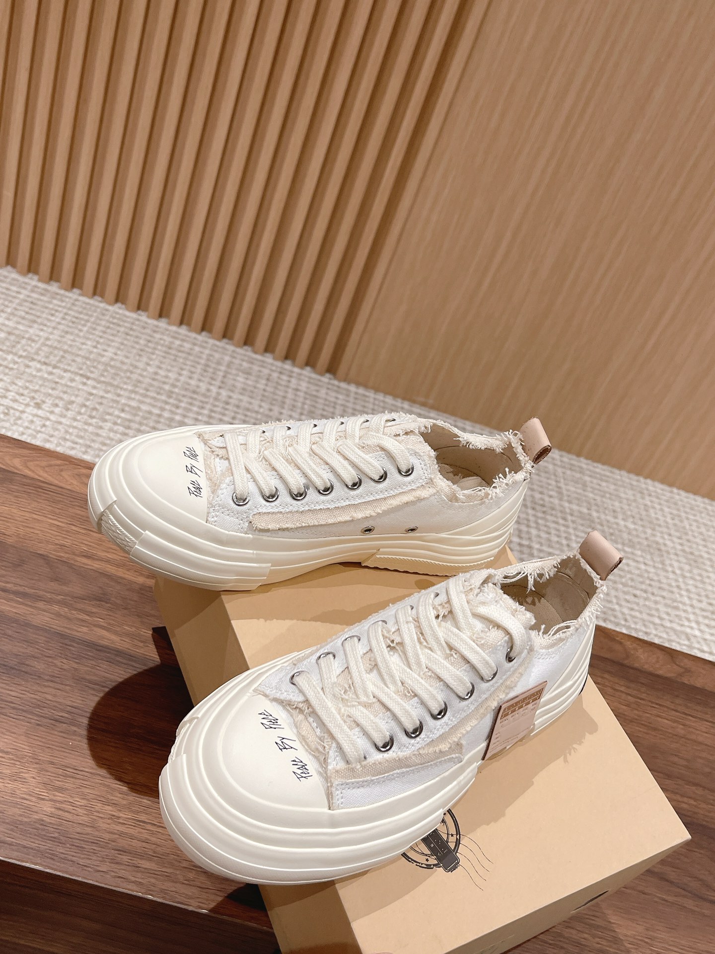 [Top Version] Guan-produced | xVESSEL Certified 💯 Vanness Wu x Vessel Beggar-style Vulcanized Canvas Couple Shoes —— This canvas shoe features a cutting-edge design, combining three pairs into one, with frayed detailing on the laces and tongue. The Beggar series 𝙭𝙑𝙀𝙎𝙎𝙀𝙇 claims to be the world's first cork vulcanized shoe, full of artistic and retro vibes. At the same time, the shoe's design carries a strong sense of deconstruction and reconstruction, which is why it looks like a canvas shoe yet feels very sci-fi and spatial. The midsole is filled with cork, perfectly blending traditional handmade leather shoe craftsmanship with vulcanized shoe techniques. The upper design also follows the deconstruction and reconstruction style, taking coolness to the extreme.