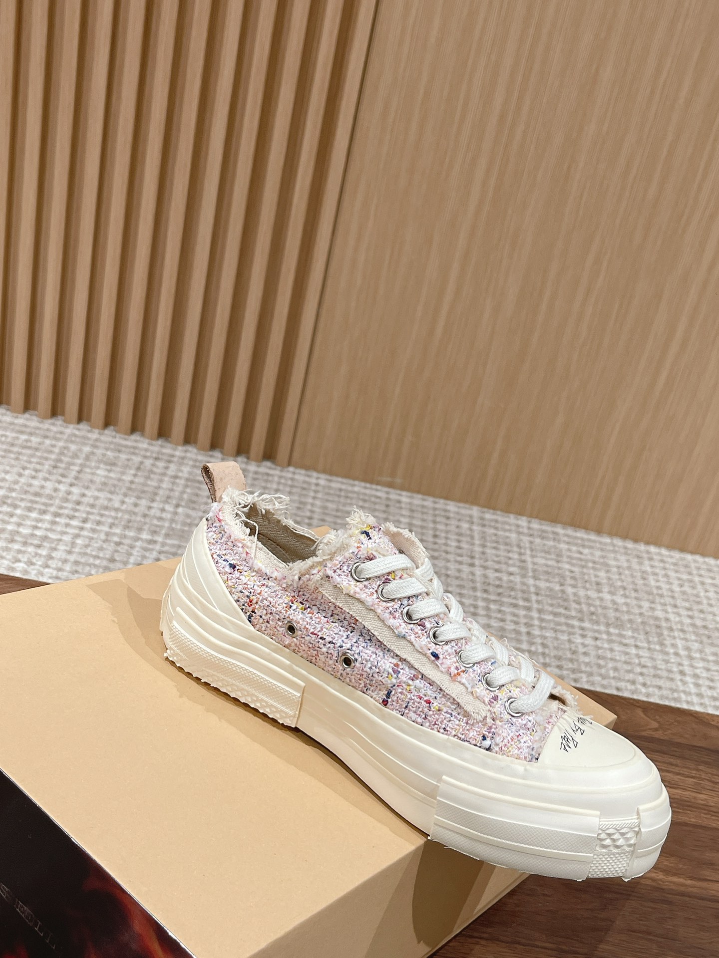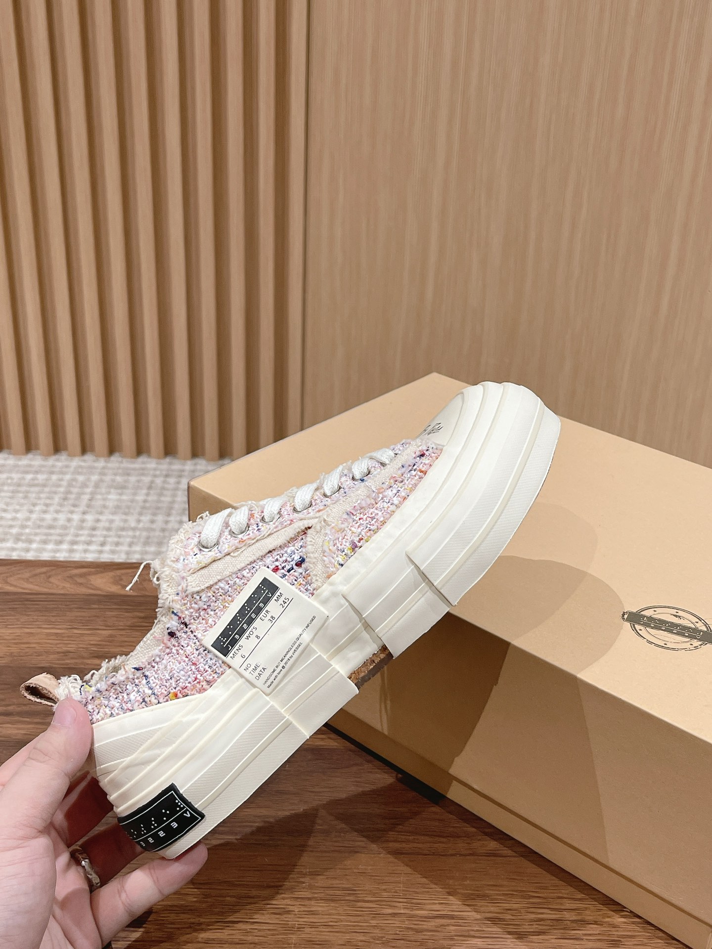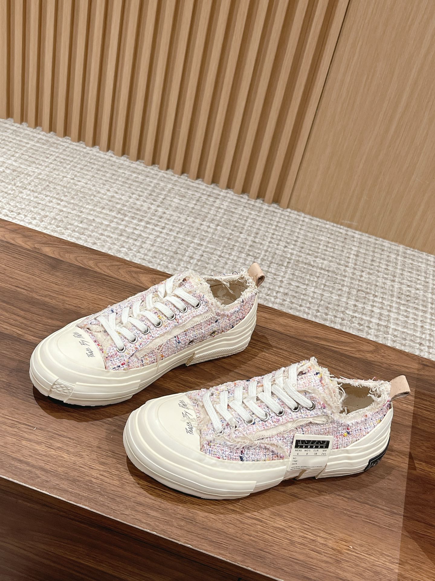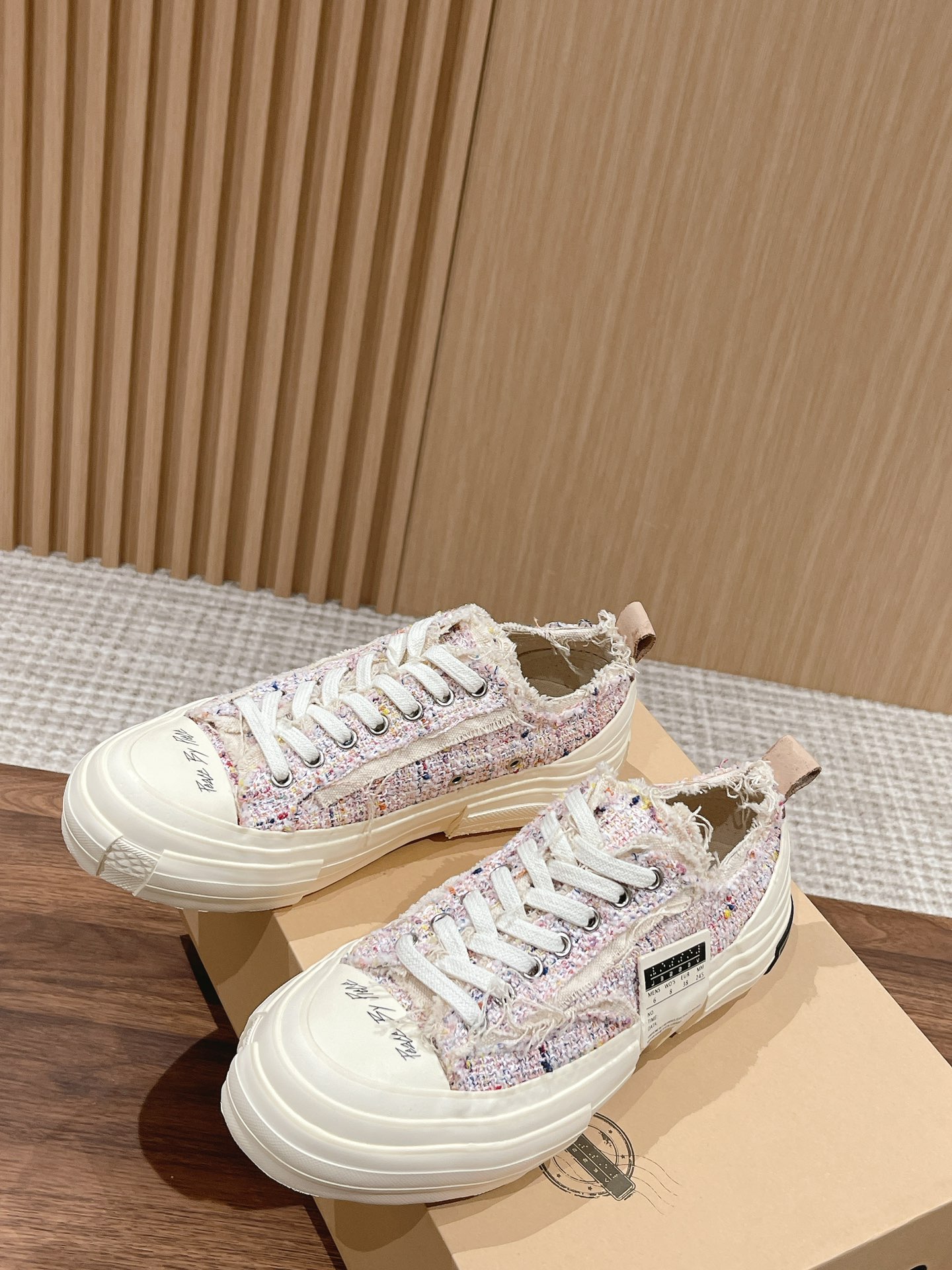 [Top Version] #Women's Only Dongguan-made | xVESSEL Certified Wu Jianhao x Vessel Hobbit Vulcanized Canvas Shoes Couple Style —— This canvas shoe features a cutting-edge design, combining three pairs into one, with raw-edge detailing on the laces and tongue. The Hobbit series 𝙭𝙑𝙀𝙎𝙎𝙀𝙇 claims to be the world's first cork vulcanized shoe, full of artistic and retro vibes. At the same time, the shoe's design carries a sense of deconstruction and reconstruction, which is why it looks like a canvas shoe yet feels very sci-fi and spatial. The midsole is filled with cork, perfectly blending traditional handmade leather shoe craftsmanship with vulcanized shoes. The upper design also follows the deconstructed and重组 style, taking coolness to the extreme.