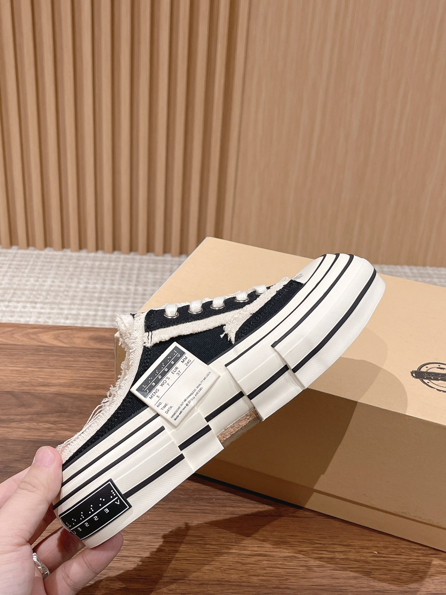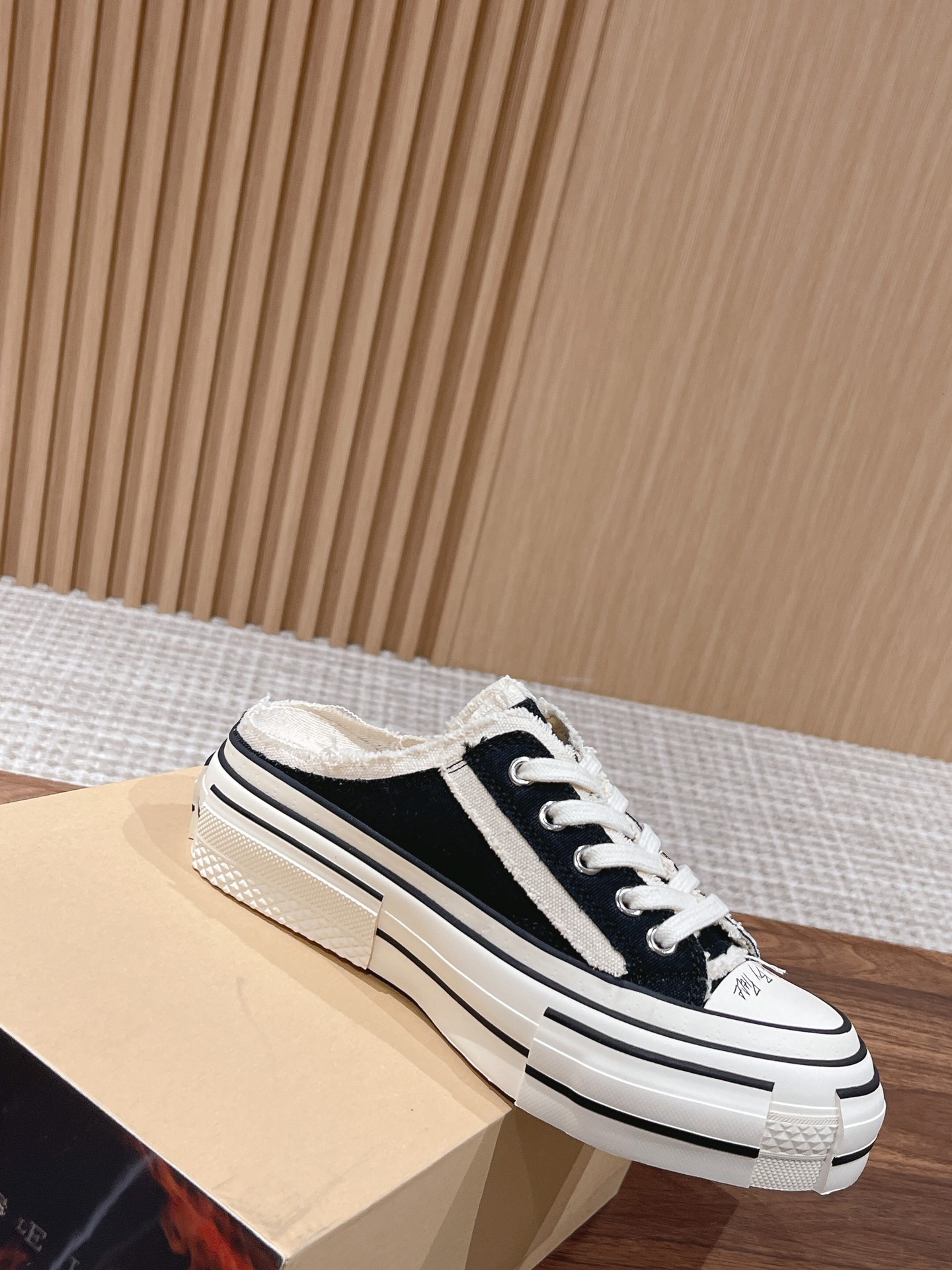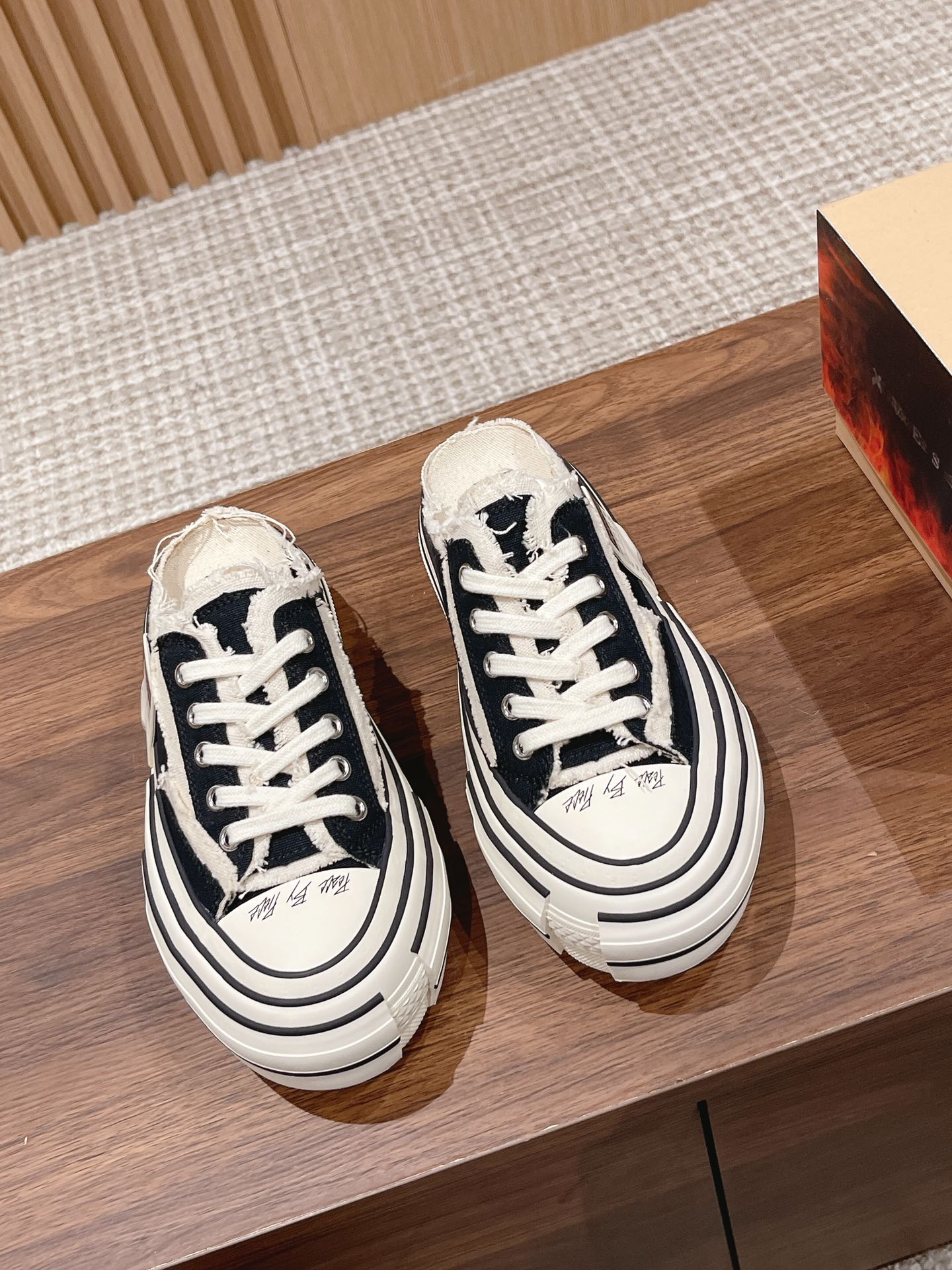 [Top Version] Guan-produced | xVESSEL Certified. Wu Jianhao x Vessel Hobbit Vulcanized Canvas Couple Shoes —— This canvas shoe features a cutting-edge design, combining three pairs into one, with frayed detailing on the laces and tongue. The Hobbit series 𝙭𝙑𝙀𝙎𝙎𝙀𝙇 claims to be the world's first cork vulcanized shoe, full of artistic and retro vibes. At the same time, the shoe's design carries a strong sense of deconstruction and reassembly, which is why it looks like a canvas shoe yet feels very sci-fi and spatial. The midsole is filled with cork, perfectly blending traditional handmade leather shoe craftsmanship with vulcanized shoe techniques. The upper design also follows the deconstruction and reassembly style, taking coolness to the extreme.