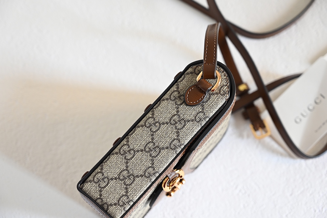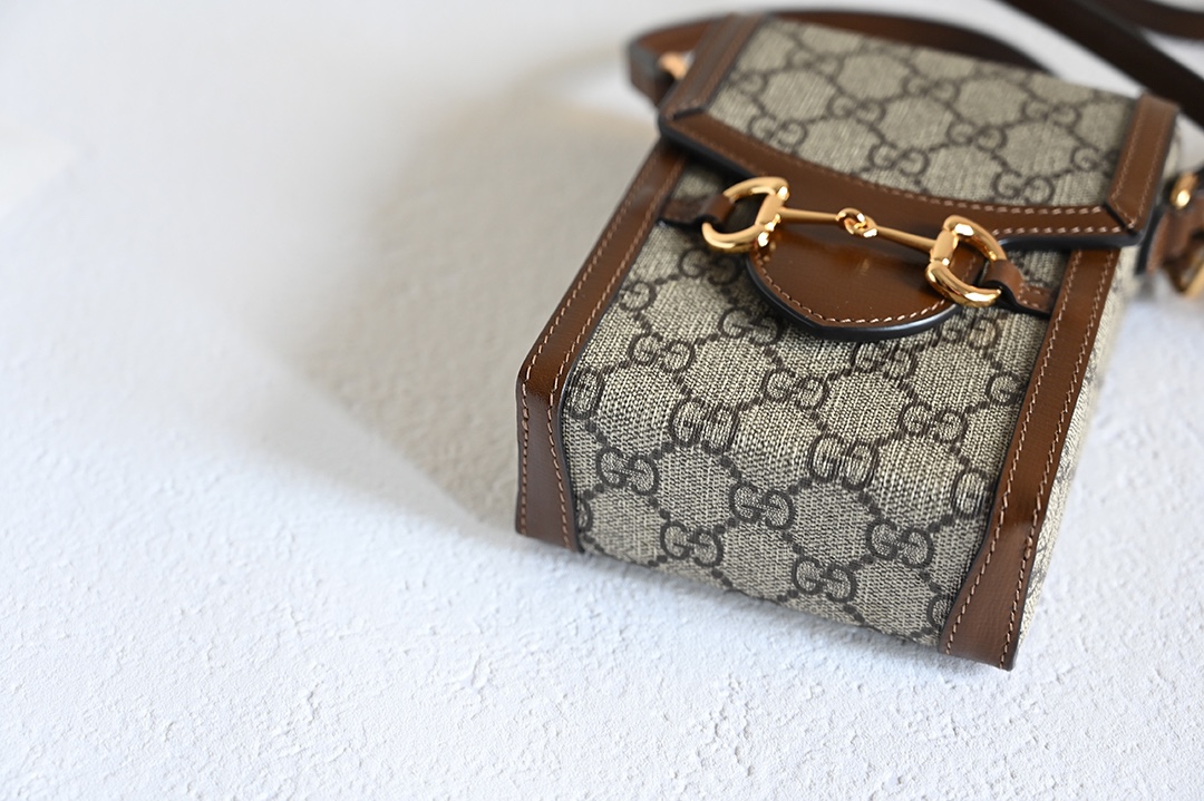 The Italian creation 625615 Gucci 1995 horsebit buckle handbag made a stunning debut in the 2020 early spring collection. It reinterprets the classic design from a fresh perspective, using imported PVC leather that draws inspiration from the double-ring elongated pattern of equestrian sports. Dimensions: 11.5/17/4cm