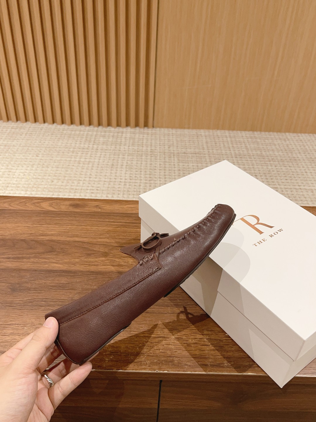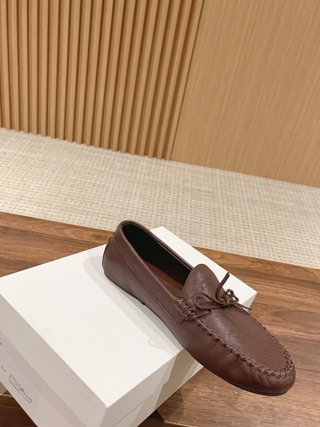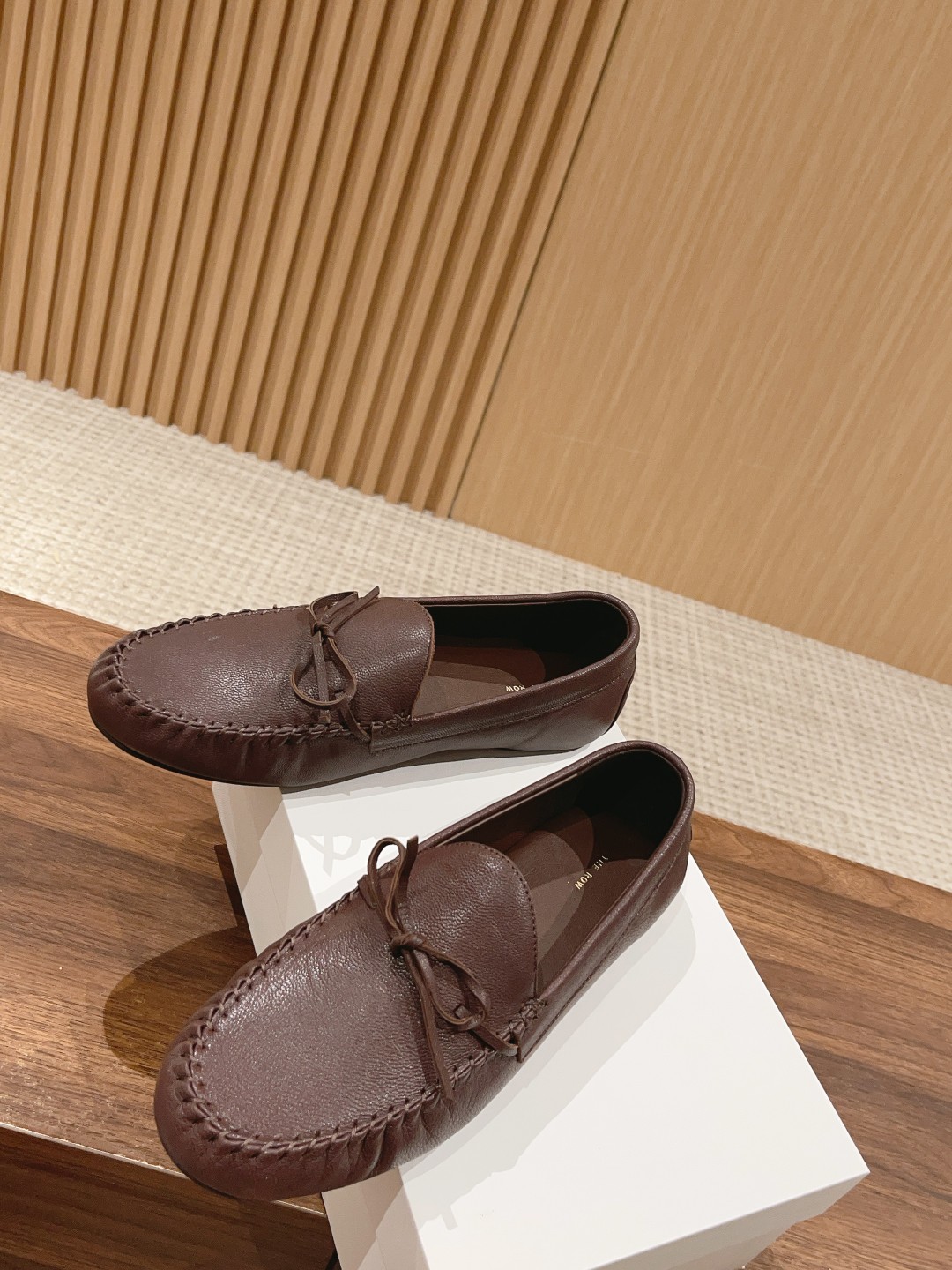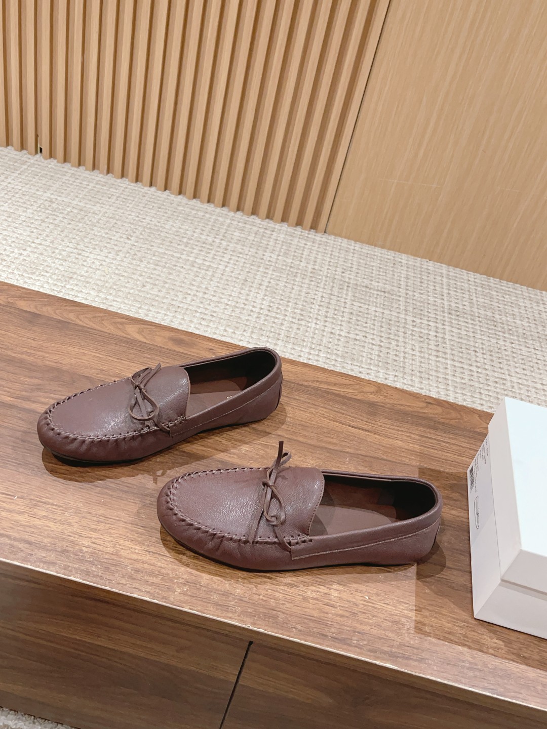 [Top Version] [Dongguan Production] The Row Flat Bow Ballet Flats. Simple and elegant design. Upon wearing, you can immediately feel the soft and delicate touch of the inner lambskin. The shoes are lightweight and flexible, breathable and moisture-absorbing, suitable even for high-temperature summer weather without any issues. The bow design allows for easy wearing and removal. The instep elasticity is moderate and does not feel tight. The rounded toe and relaxed last shape are not picky about foot type, providing an exceptionally comfortable wearing experience.