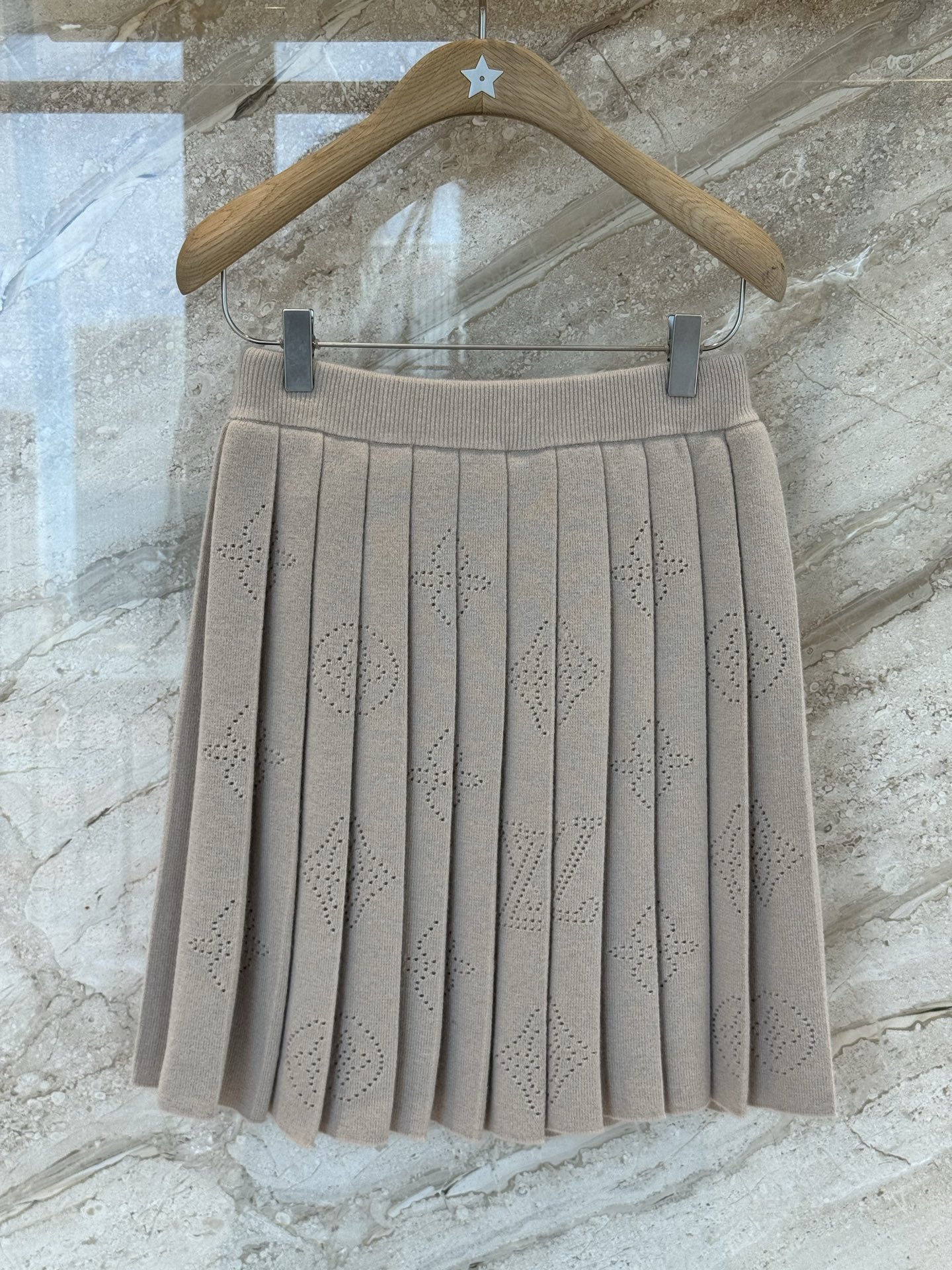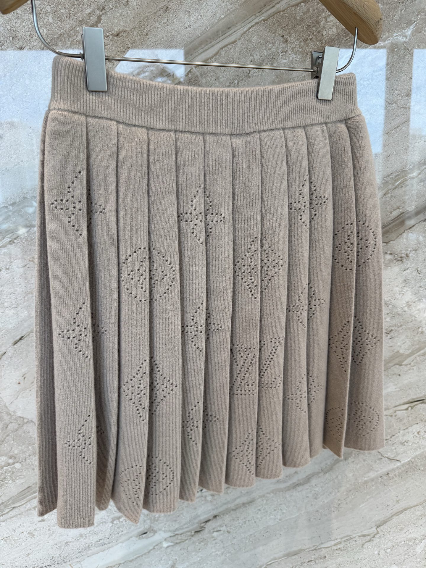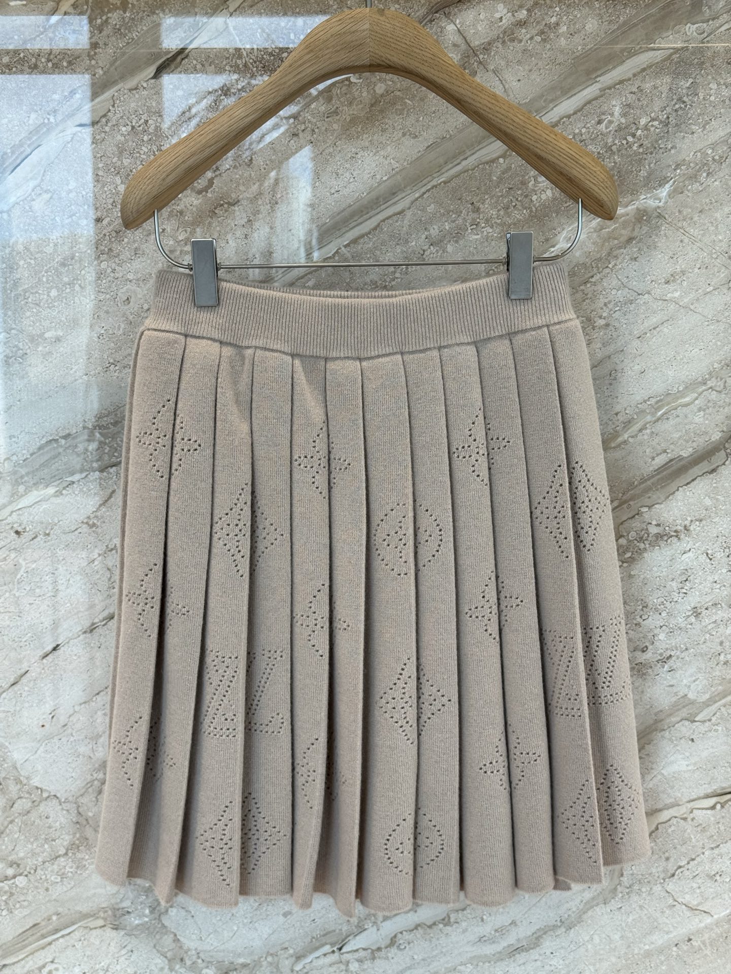 L家25秋冬奶咖色老花羊绒针织百褶半身裙