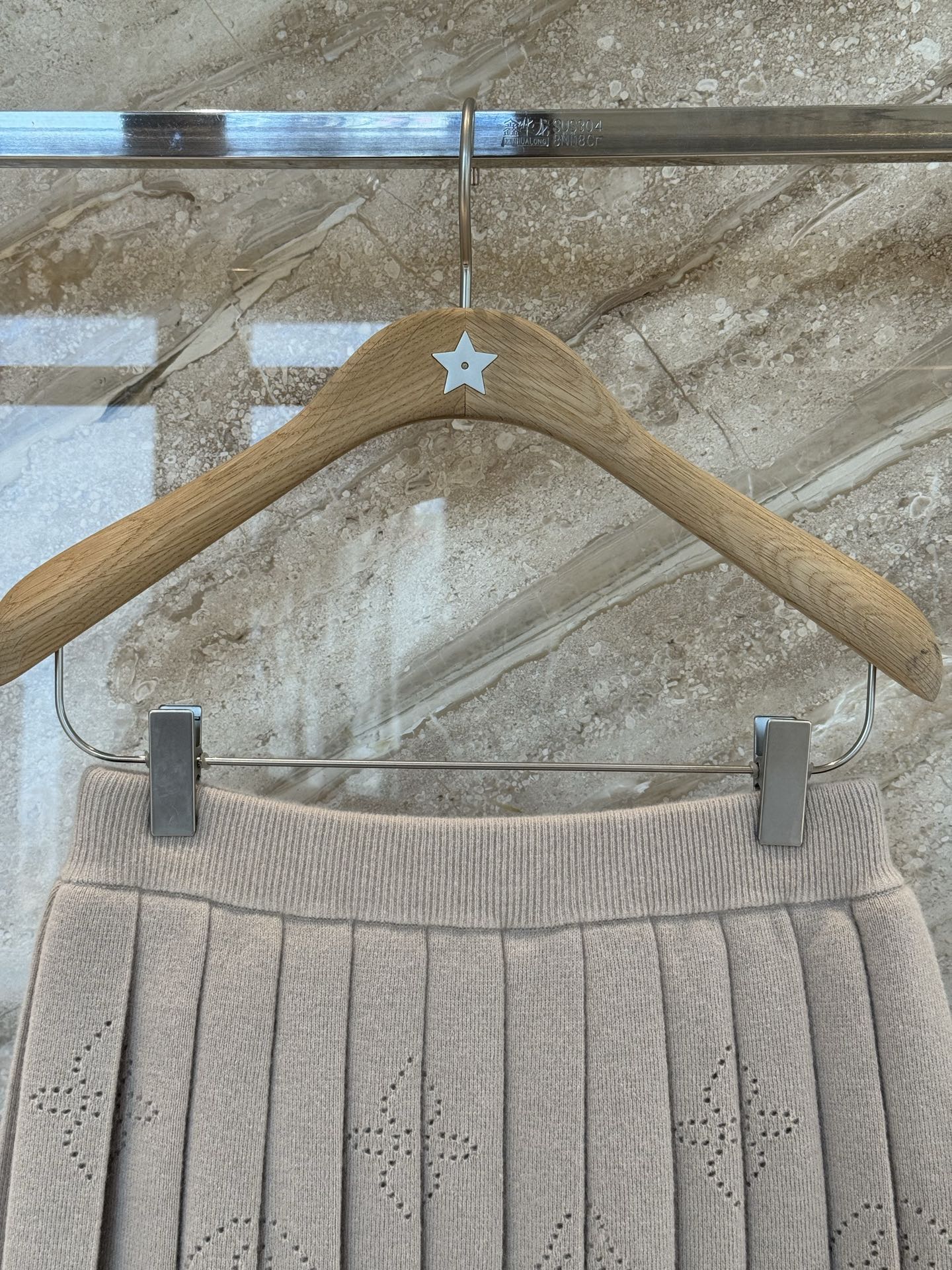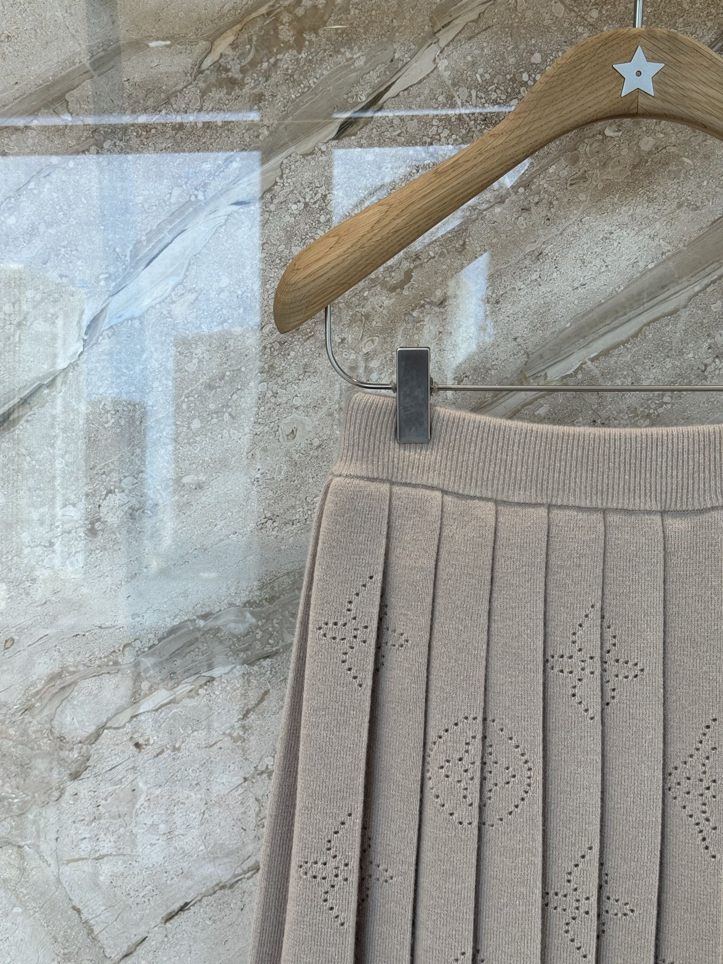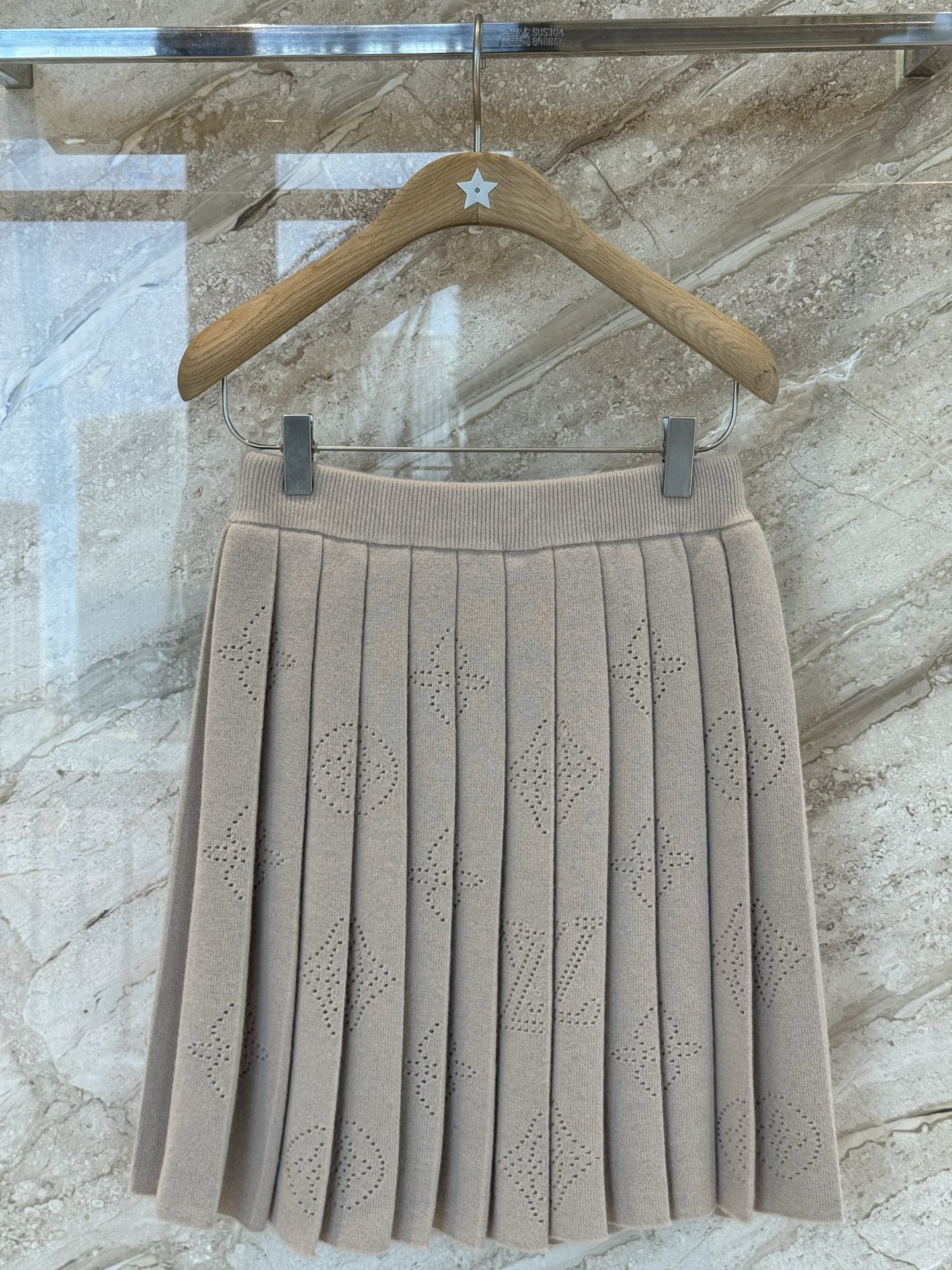 L家25秋冬奶咖色老花羊绒针织百褶半身裙