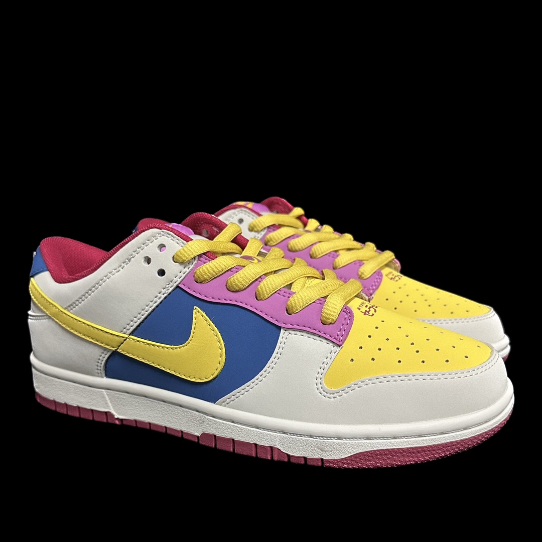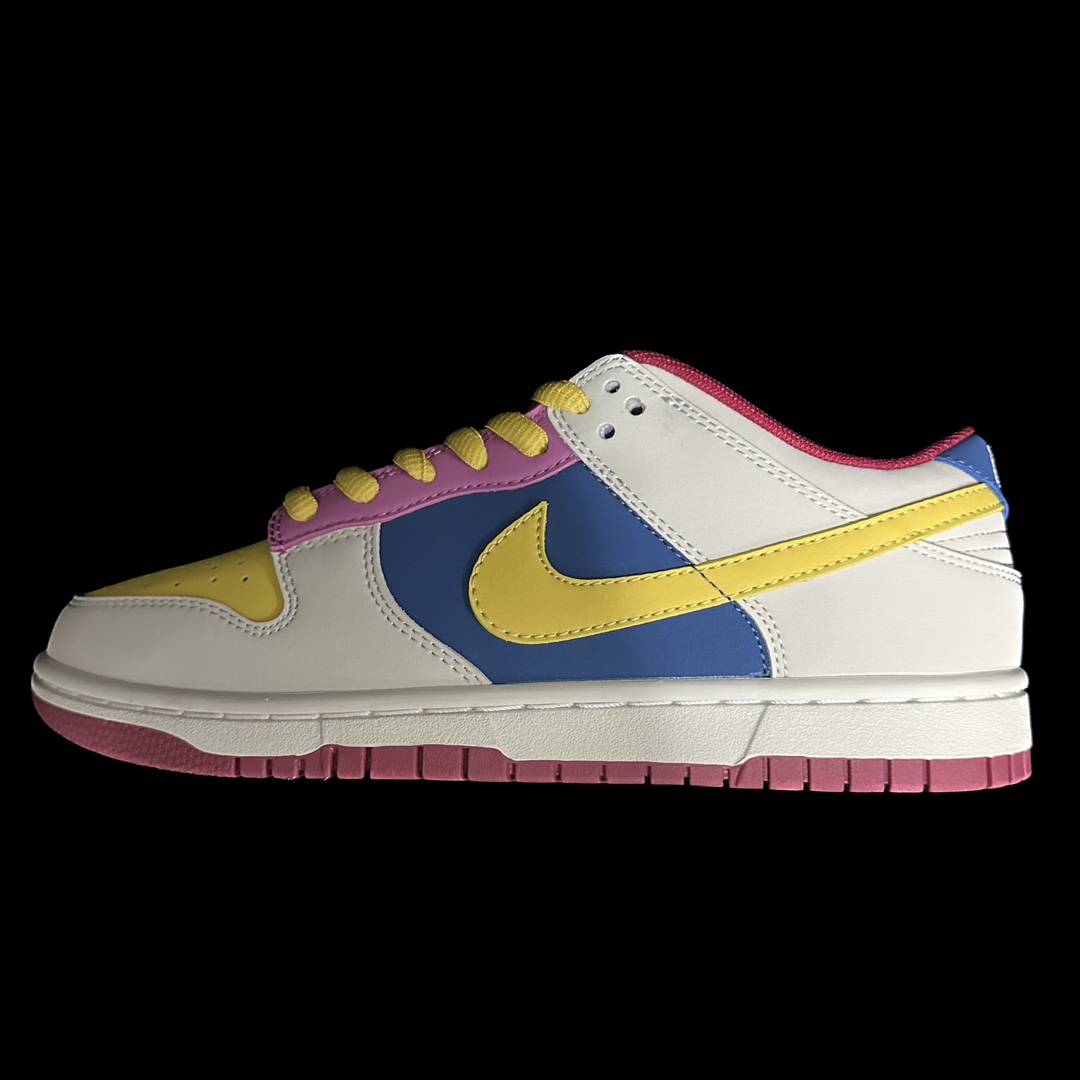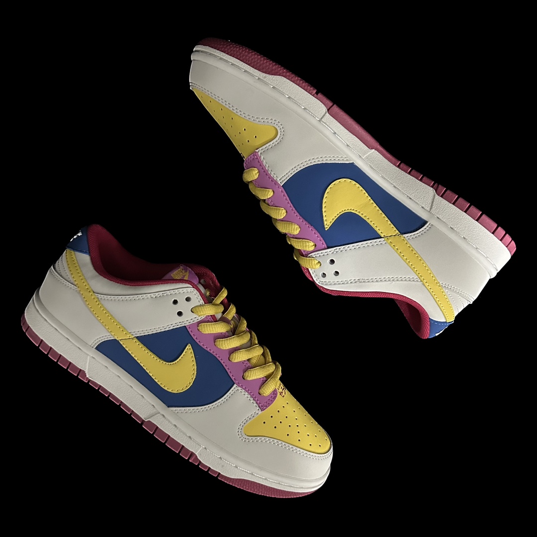 This shoe is entirely crafted from suede, featuring yellow and light gray as the main color scheme. The Swoosh and heel are accented with yellow, while the tongue and heel are combined with blue, creating a very eye-catching overall visual effect.