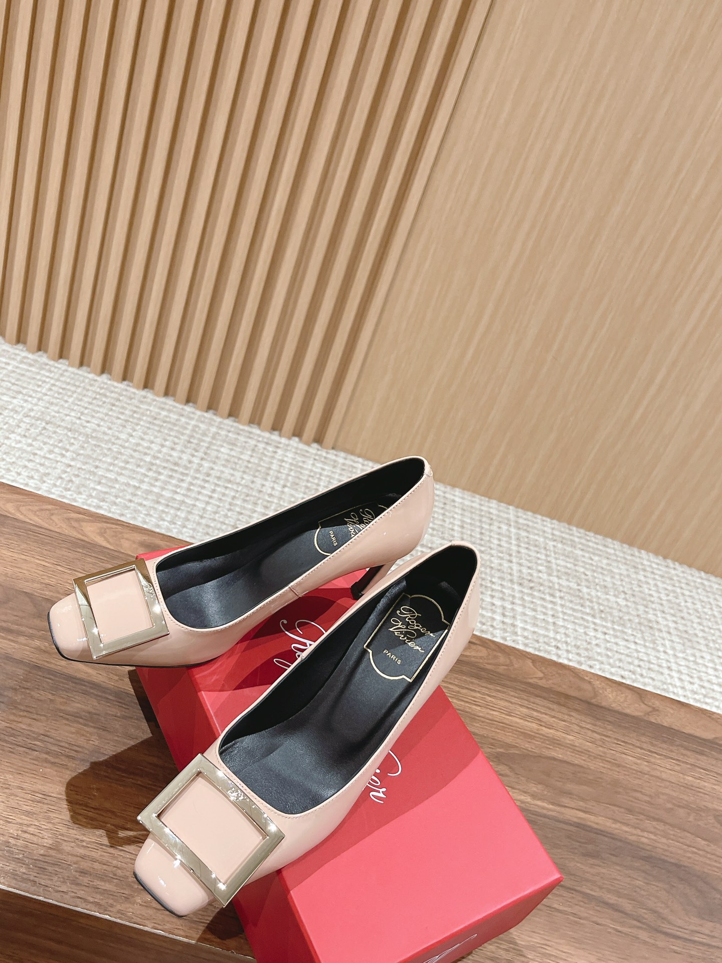 Unlike the kind of sexy beauty displayed by many major brand footwear, it uniquely embodies generosity, elegance, and intellectual beauty to the fullest. This intellectual beauty can often quickly enhance a person's temperament at many appropriate moments... This is why RV shoes are cherished by many, many celebrities and fashion-conscious people as a beloved favorite. RV's evergreen style, the classic buckle high heels, with a round toe design and a 7cm golden heel height, make it comfortable and more versatile. It pairs excellently with dresses, jeans, wide-leg pants, etc.
