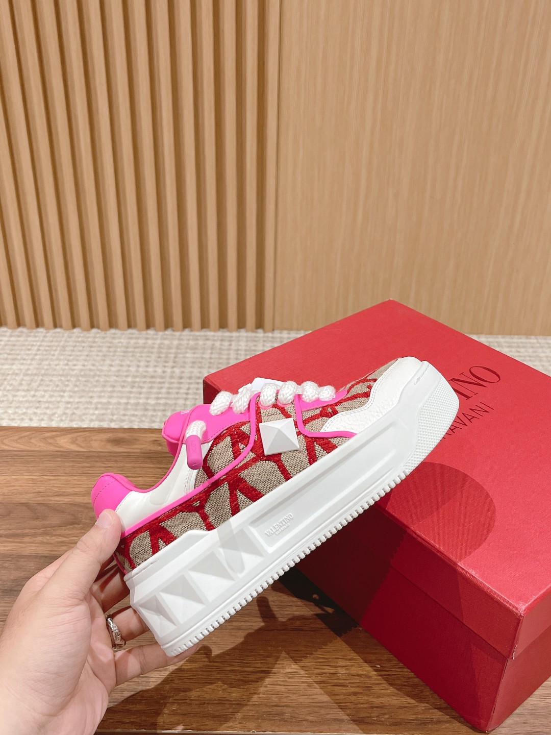 [Top Version] Couple's Valentino Out Stud Valentino sports casual shoes 2023 latest style thick laces couple's bulky sneakers casual shoes 💗EIsa Hosk, Zhang Yixing, Guan Xiaotong, and many other celebrity same style🔥 Pink PP series Barbie pink worn by Elsa Hosk with a different casual and fashionable vibe. The Anaya show can be said to have exploded in the fashion circle! Top-grade cowhide combination, lining: lambskin lining, exclusive open-mold sole, 6cm height increase.