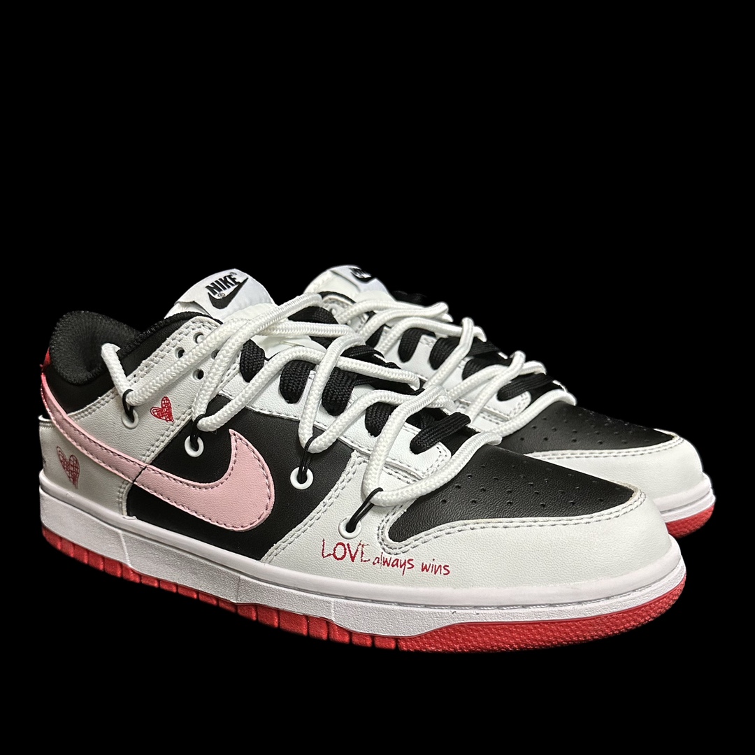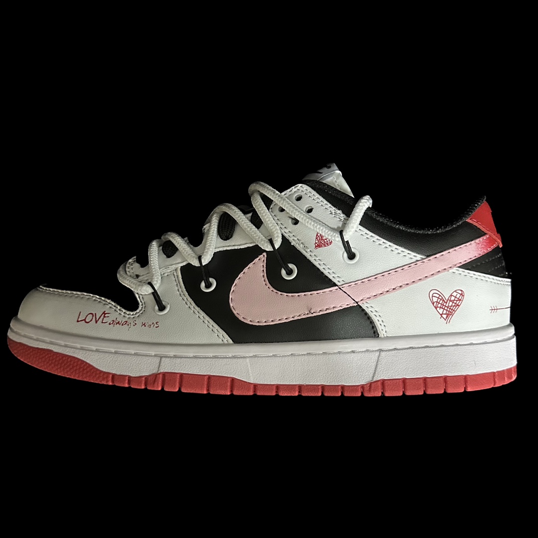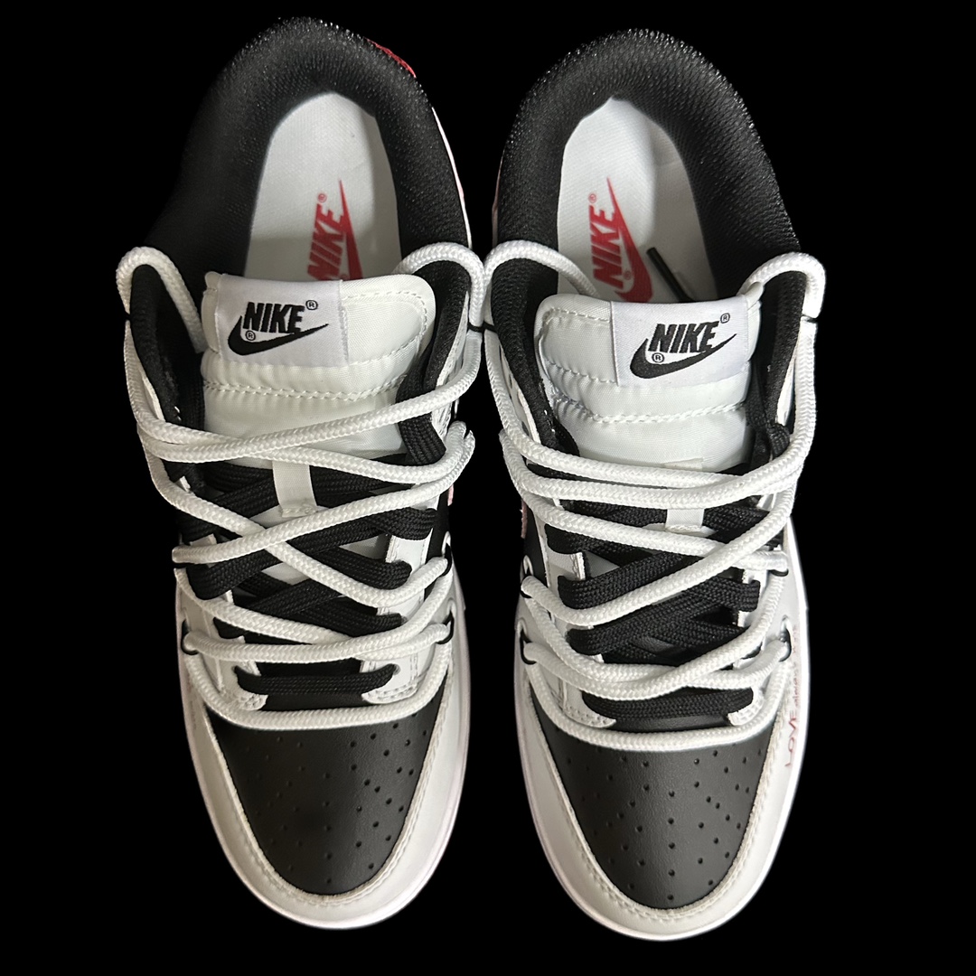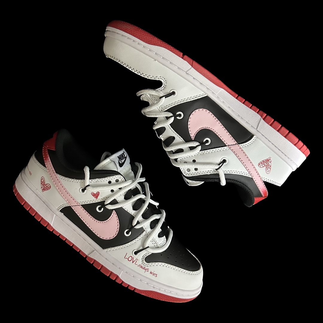 This design is inspired by the eternal romantic love story across the Milky Way—the Qixi Festival meeting of the Cowherd and Weaver Girl on the Magpie Bridge. With this inspiration, we present the "Sweet Qixi" themed sneakers. The shoe primarily features black and white colors, with a pink gradient Swoosh, heart patterns, and rose-pink English print fonts as the highlights, adding a strong romantic atmosphere to the shoe. The overall design provides a fresh and vibrant visual effect. It can be worn in all four seasons and is very versatile.