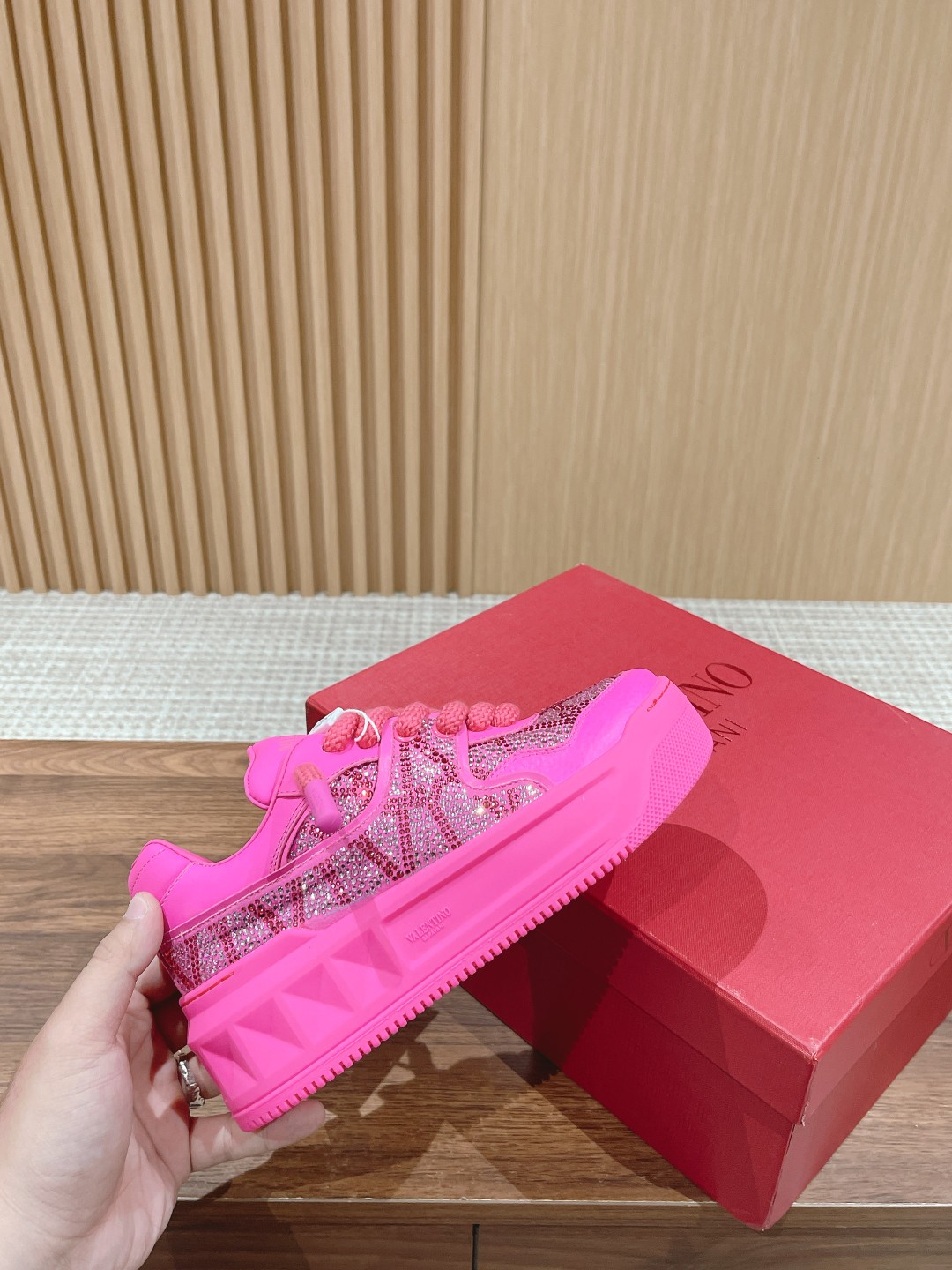 [Top Version] Women's Only Valentino Out Stud Valentino Sports Casual Shoes 2023 Latest Style Thick Laces Couple Loafers Casual Shoes 💗EIsa Hosk, Zhang Yixing, Guan Xiaotong, and many other celebrity same style🔥 Pink PP series Barbie pink worn by Elsa Hosk with a different casual and fashionable vibe. The Anaya show has exploded in the fashion circle! Top cowhide combination, Lining: Lambskin lining, Exclusive molded sole, 6cm height increase.