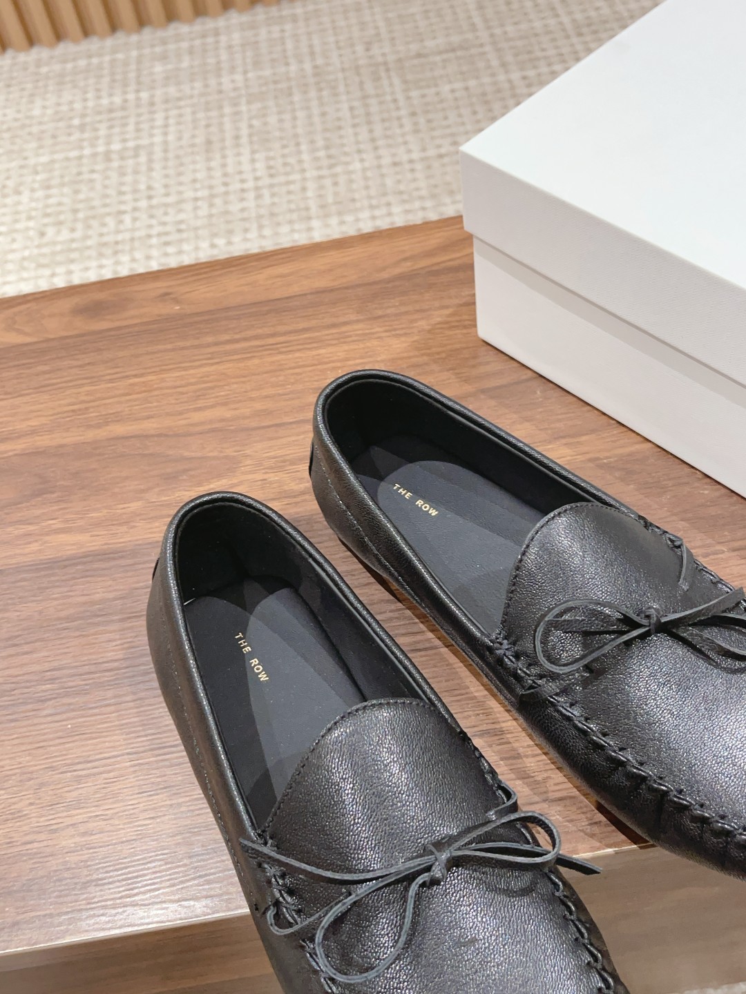 [Top Version] [Dongguan Production] The Row Flat Bow Ballet Flats. The design is simple and elegant. Once you put them on, you can immediately feel the soft and delicate touch of the lambskin lining. The shoes are lightweight and flexible, breathable and moisture-wicking, making them perfectly fine to wear even in high summer temperatures. The bow design makes them easy to put on and take off. The instep elasticity is moderate and does not feel tight. The round toe and roomy last are not picky about foot shape, providing an exceptionally comfortable feel.